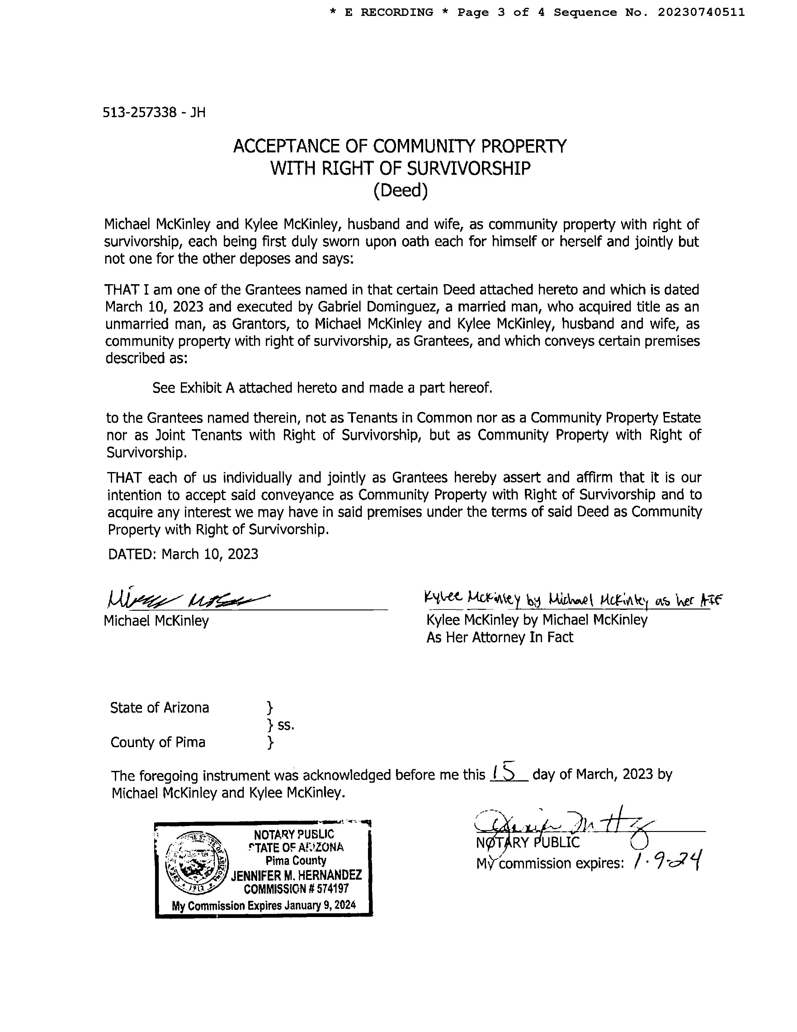 OWNER: MCKINLEY MICHAEL & KYLEE AFFIDAVIT 2023 740511 03/15/2023
