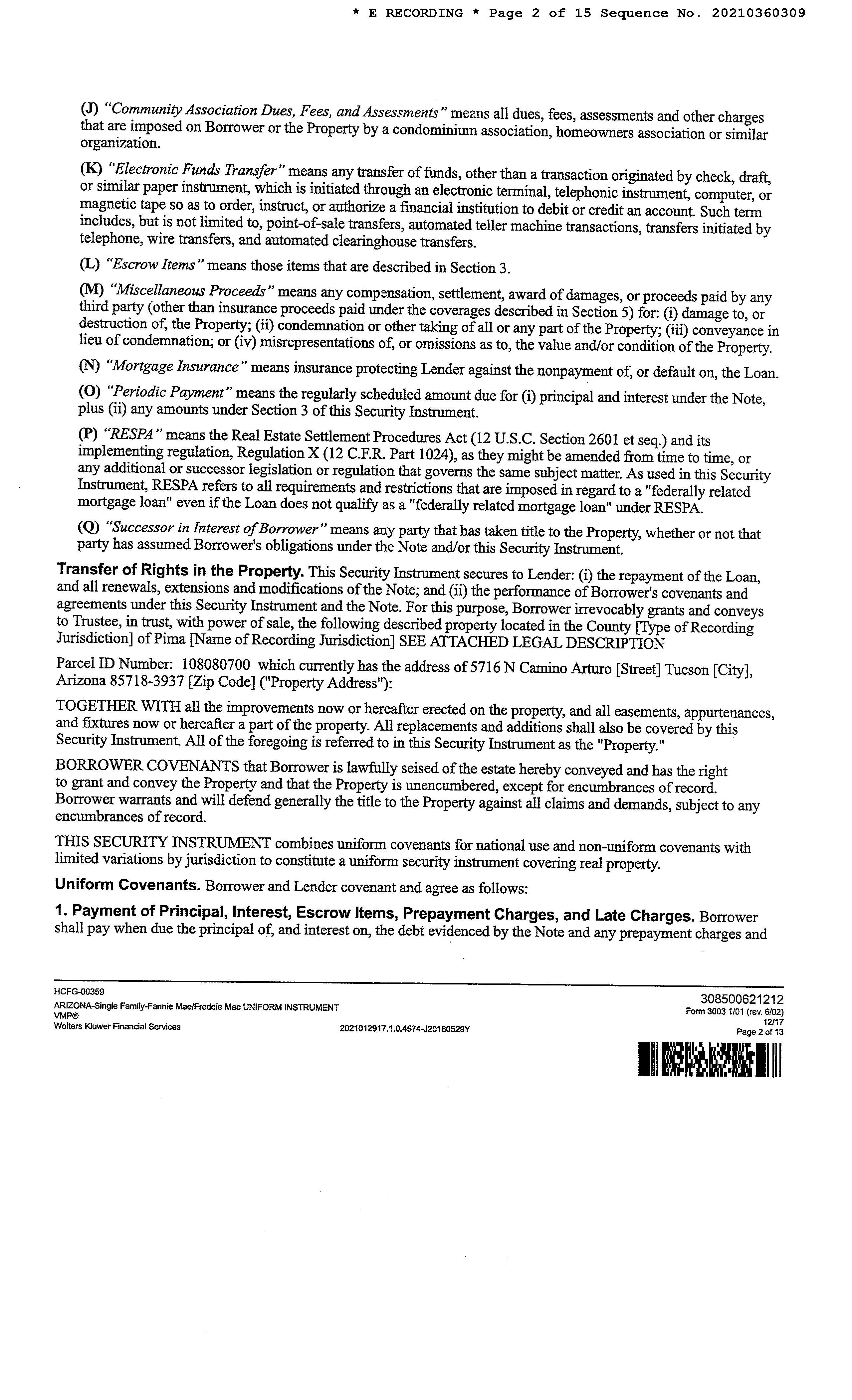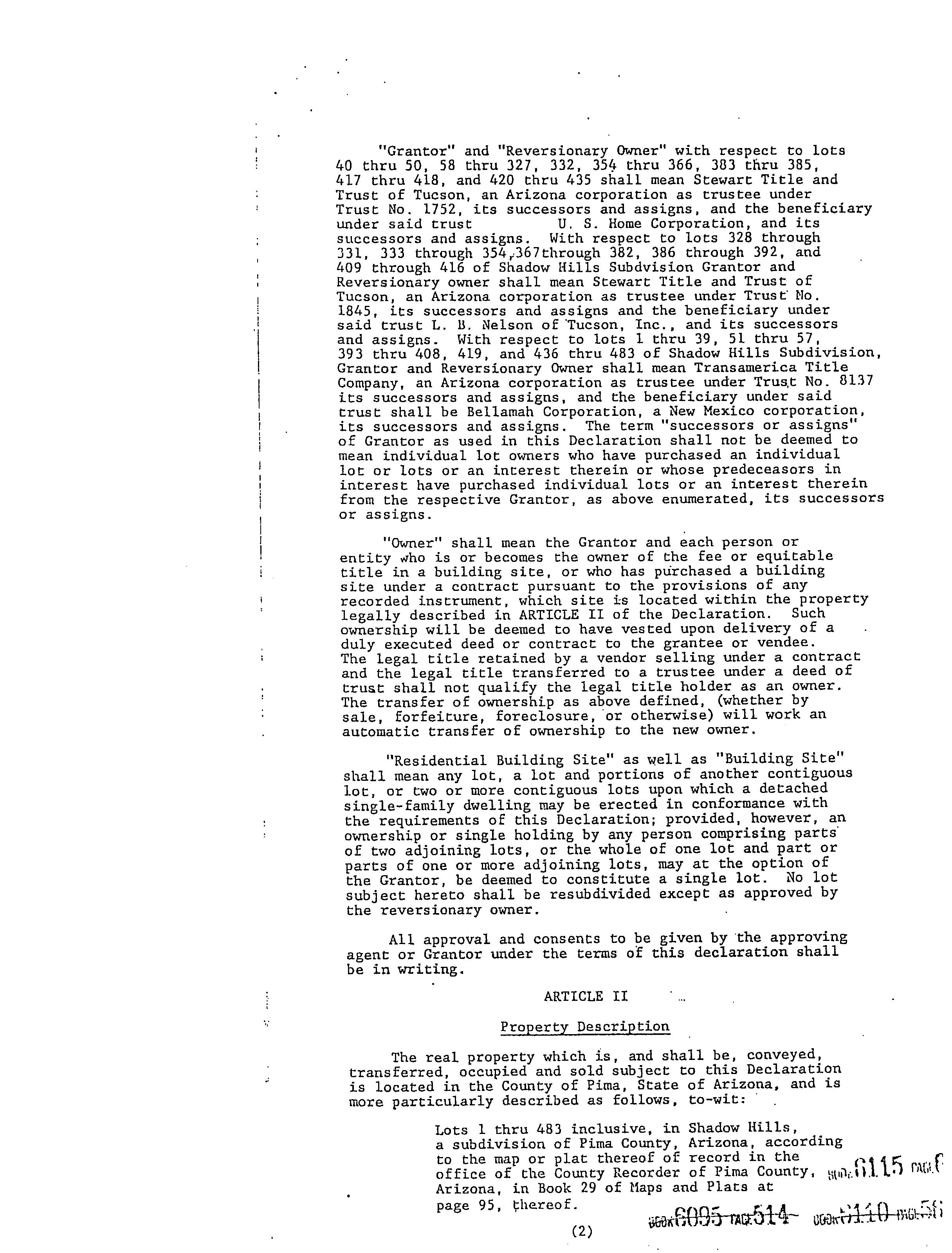 9355 1684 WD KOSSAR JESSE A 08/23/1991 215,000 9109 143 WD STRINGHAM DAN L/SHARON L 08/27/1987 1,200,000 8108 646 JD PREFERRED HOMES OF TUCSON ADDITIONAL PROPERTY INFORMATION