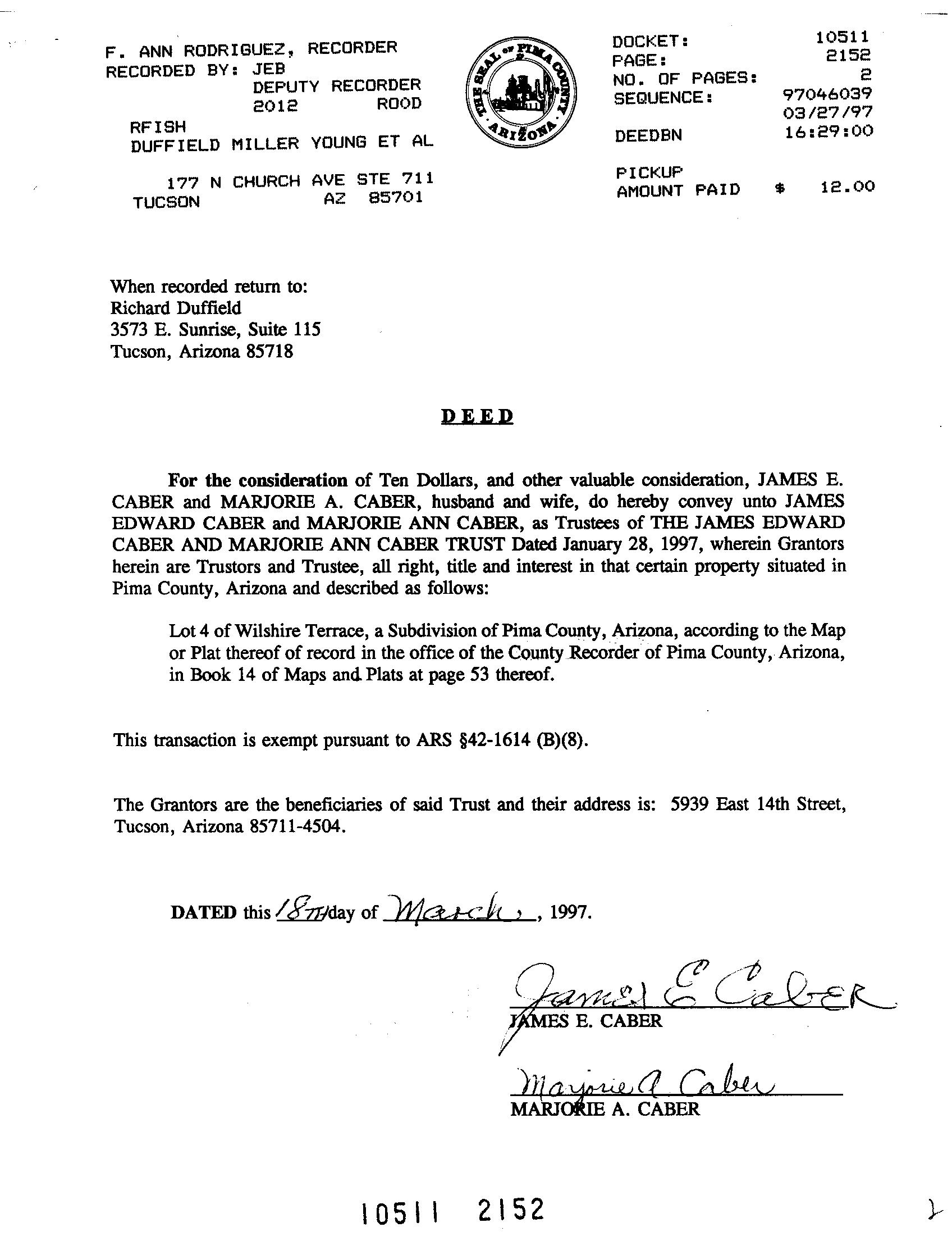Owner Name: Caber J E & M A Trust / APN / Alternate APN: 128-04-0040 / Deed Type: Deed (reg)
