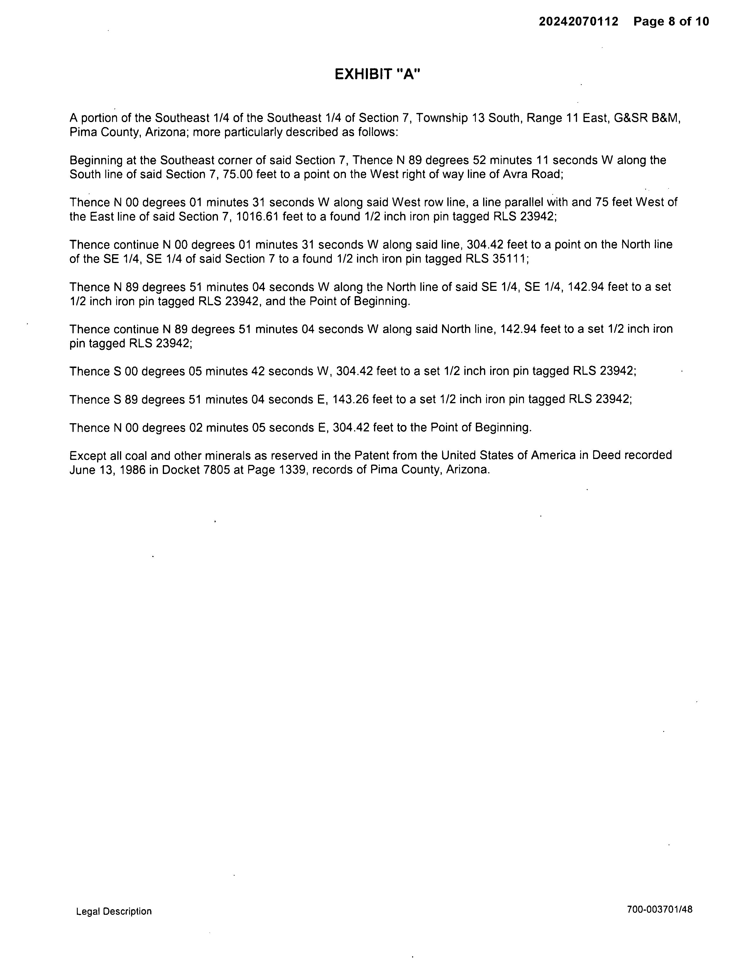 Mailing Address : 5757 N Avra Rd, Tucson AZ 85743-9710 R065