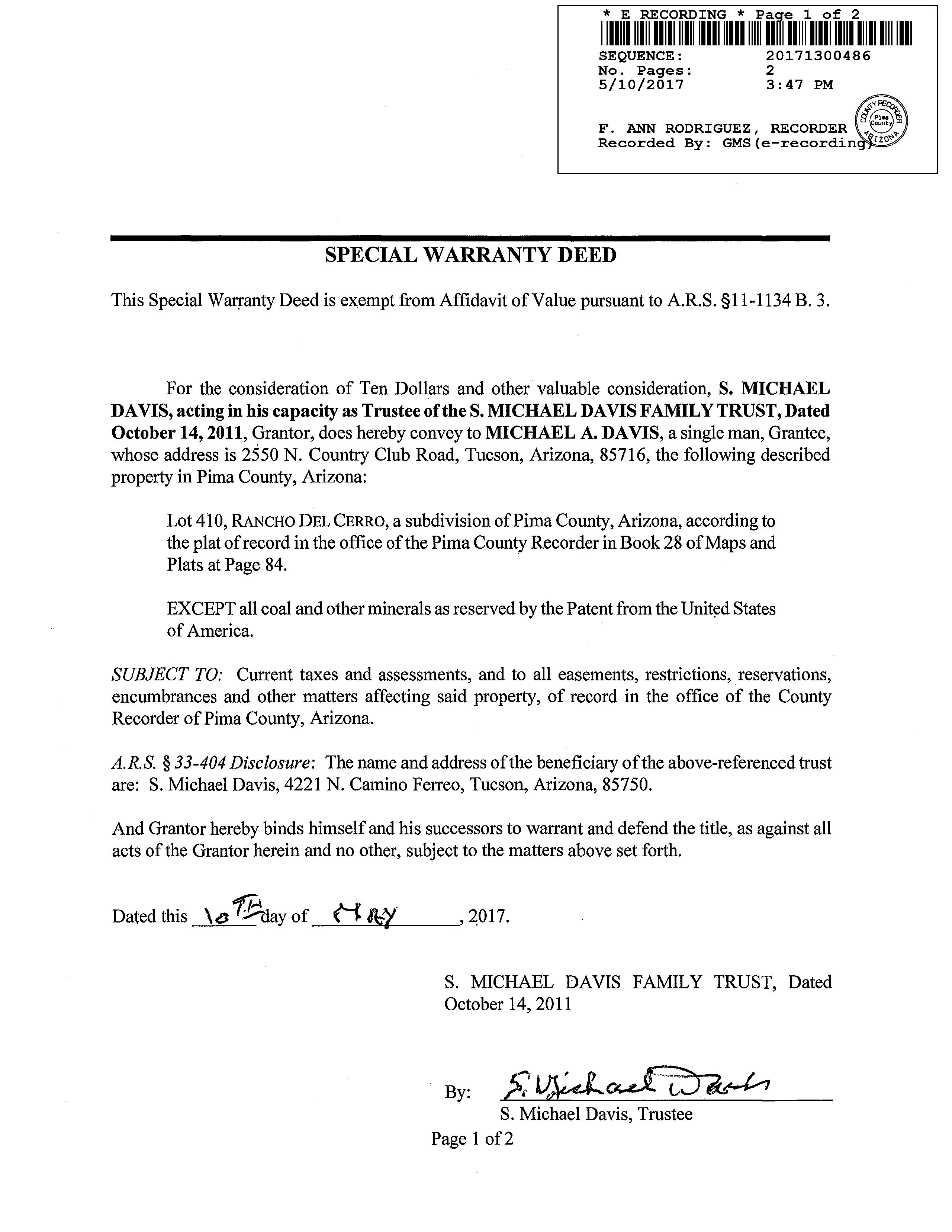 Deed Type : Special Warranty Deed