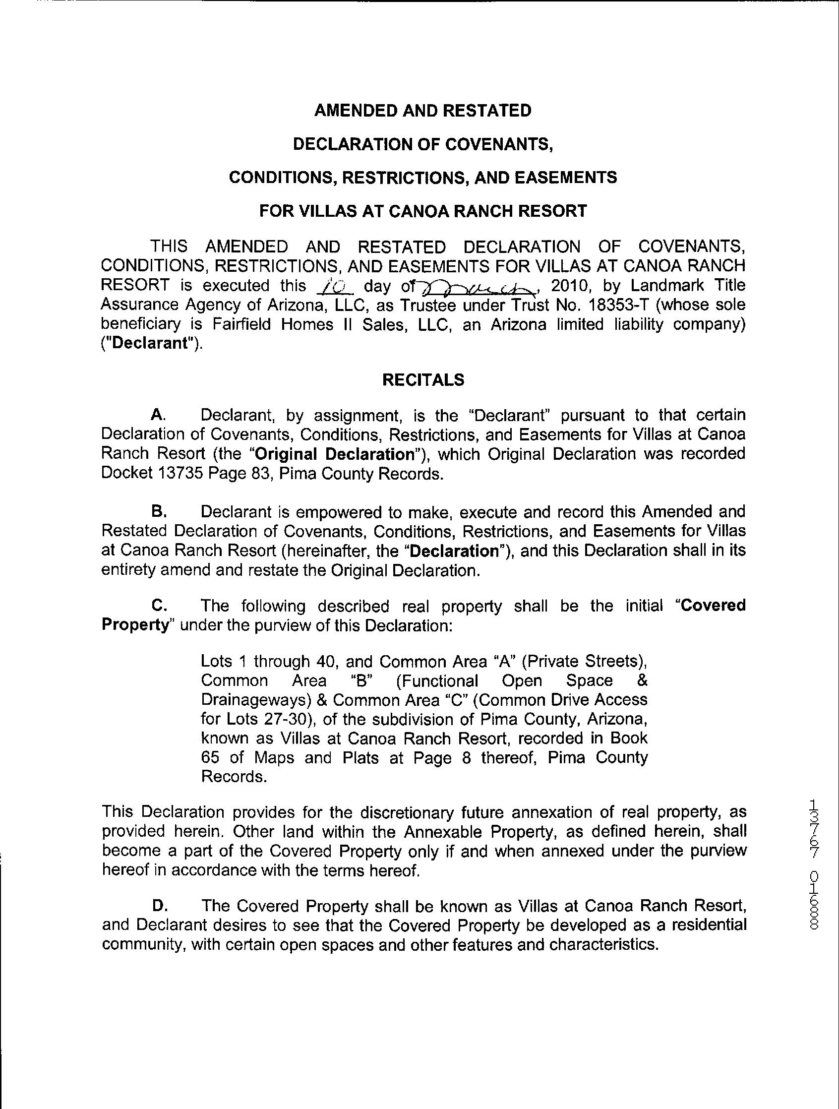 Covenants, Conditions & Restrictions