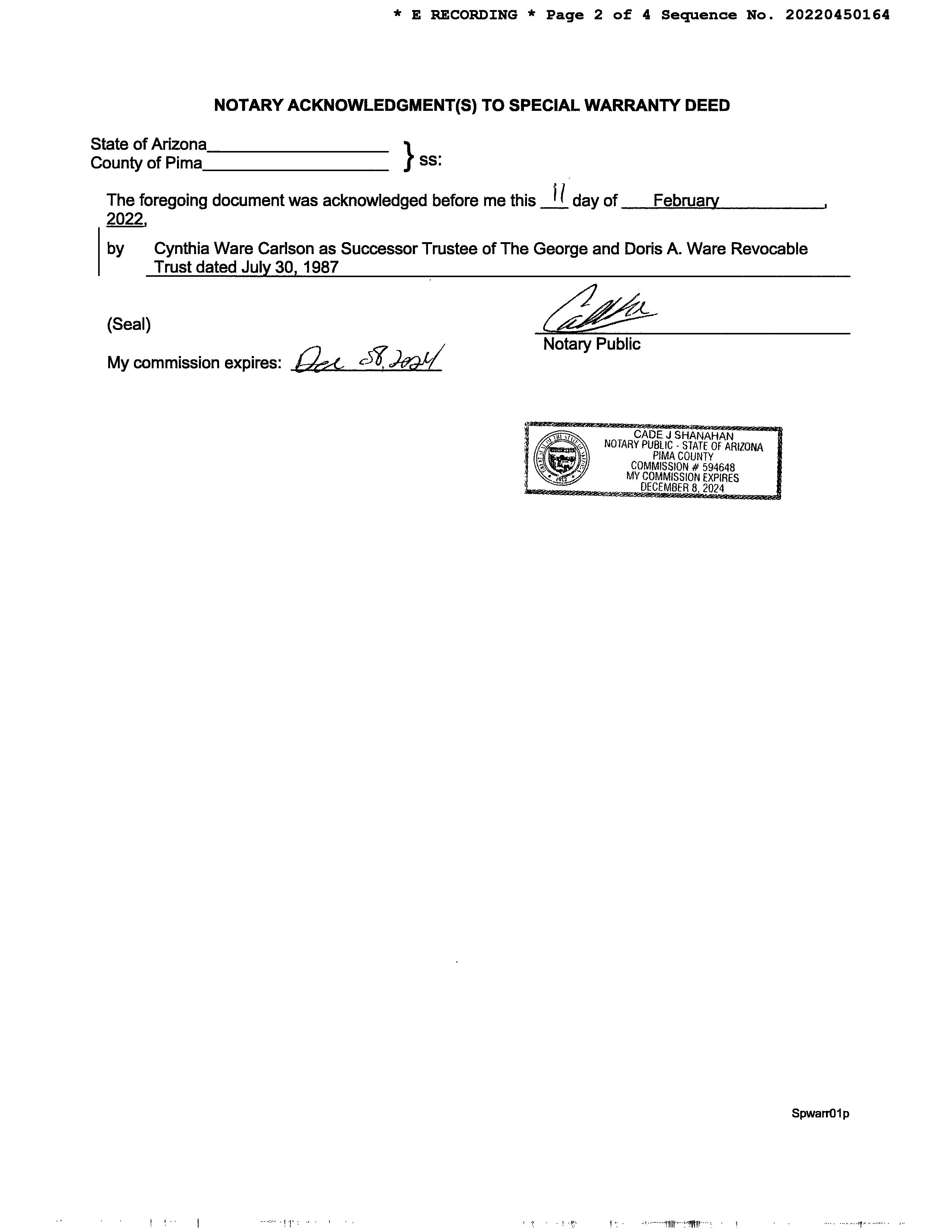 Seller Name : George & Doris A Ware Re