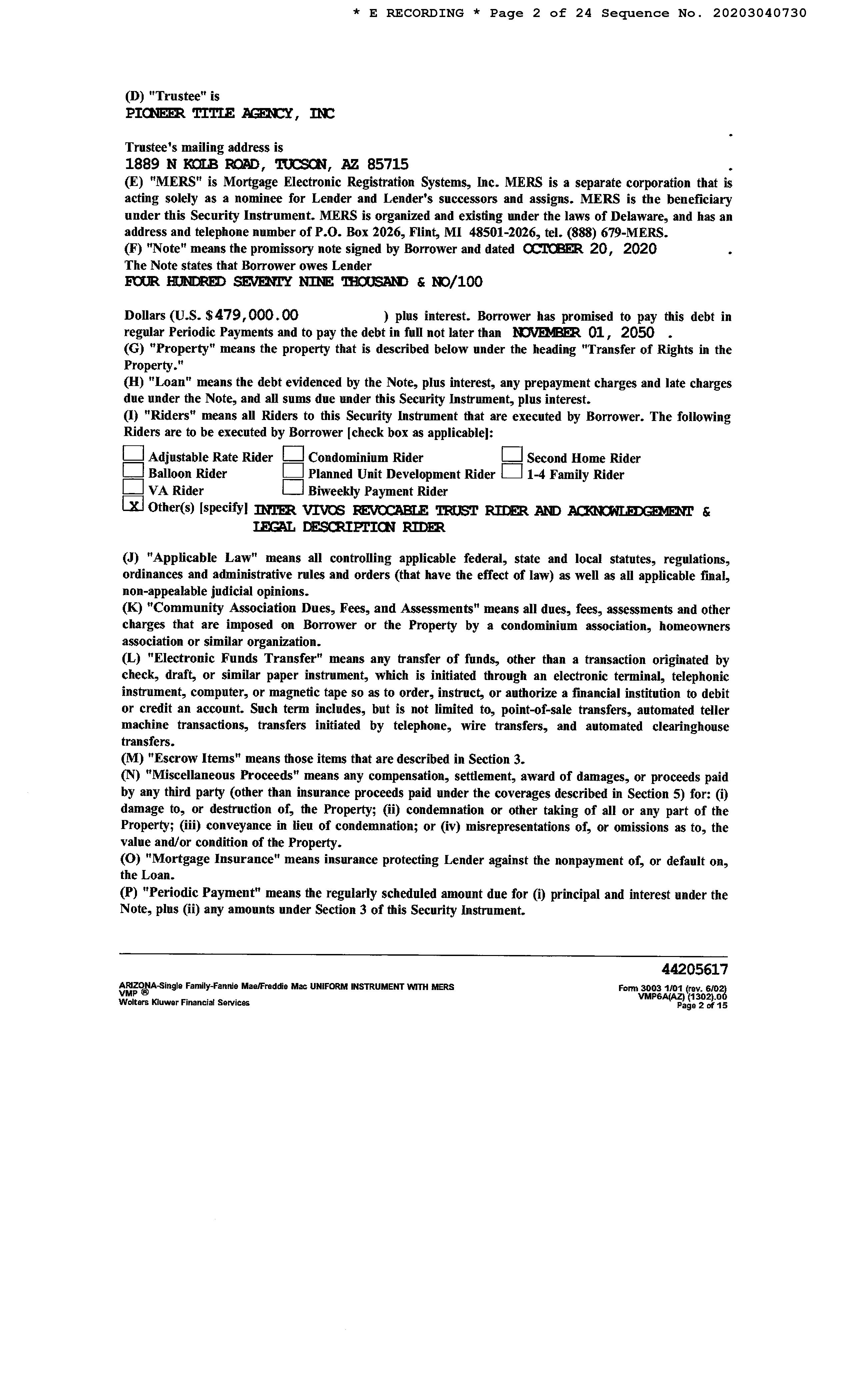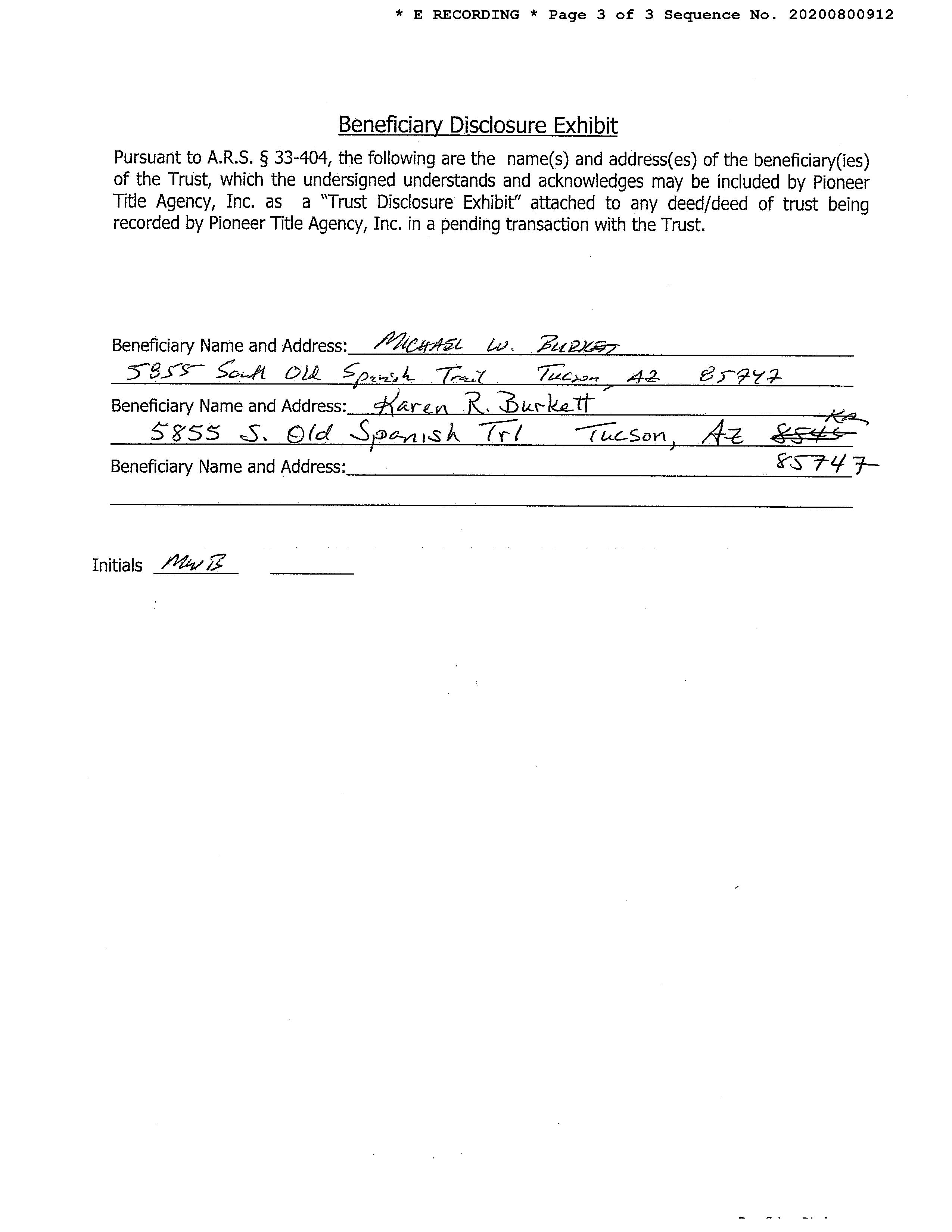 Mailing Address : 5855 S Old Spanish Trl, Tucson AZ 85747-9487 R007