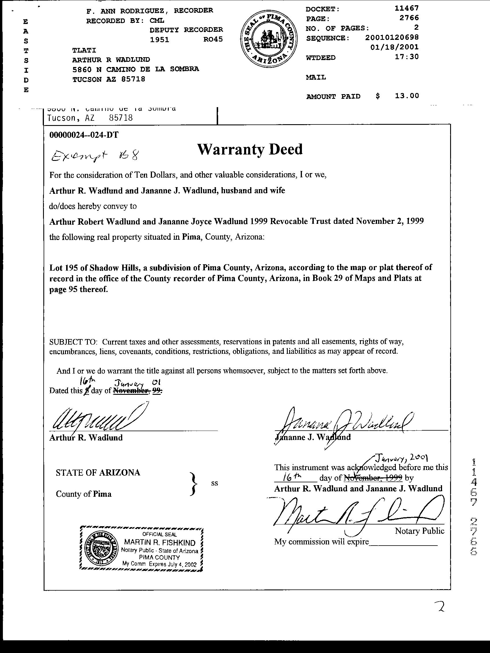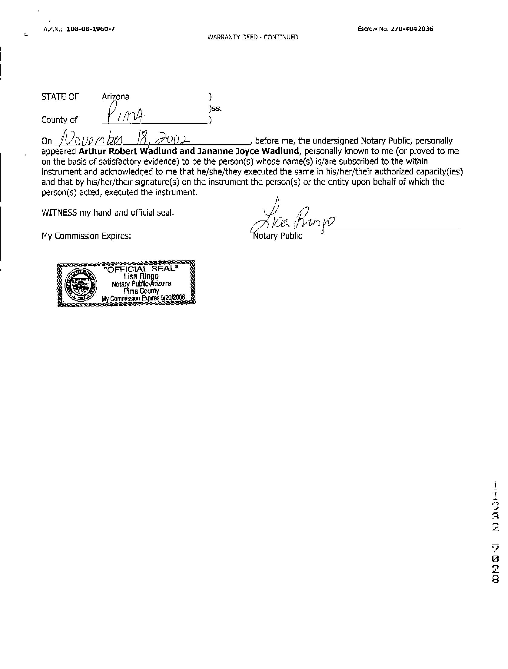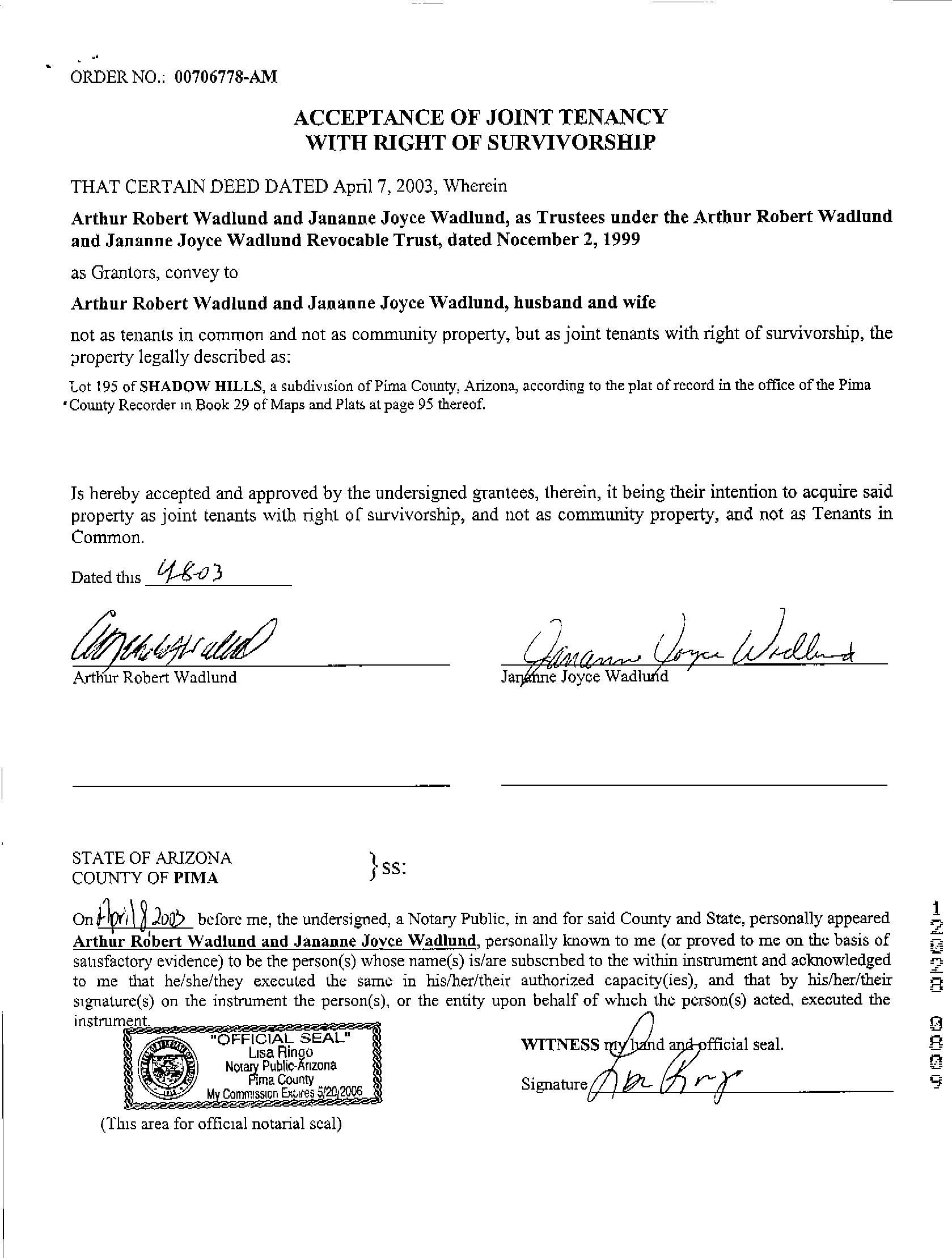 OWNER: WADLUND ARTHUR ROBERT & JANANNE