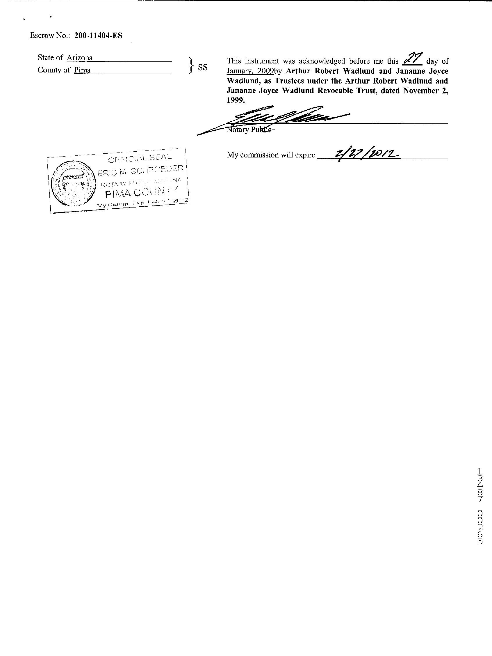 Owner Name : Wadlund Arthur Robert & Janann / Joyce