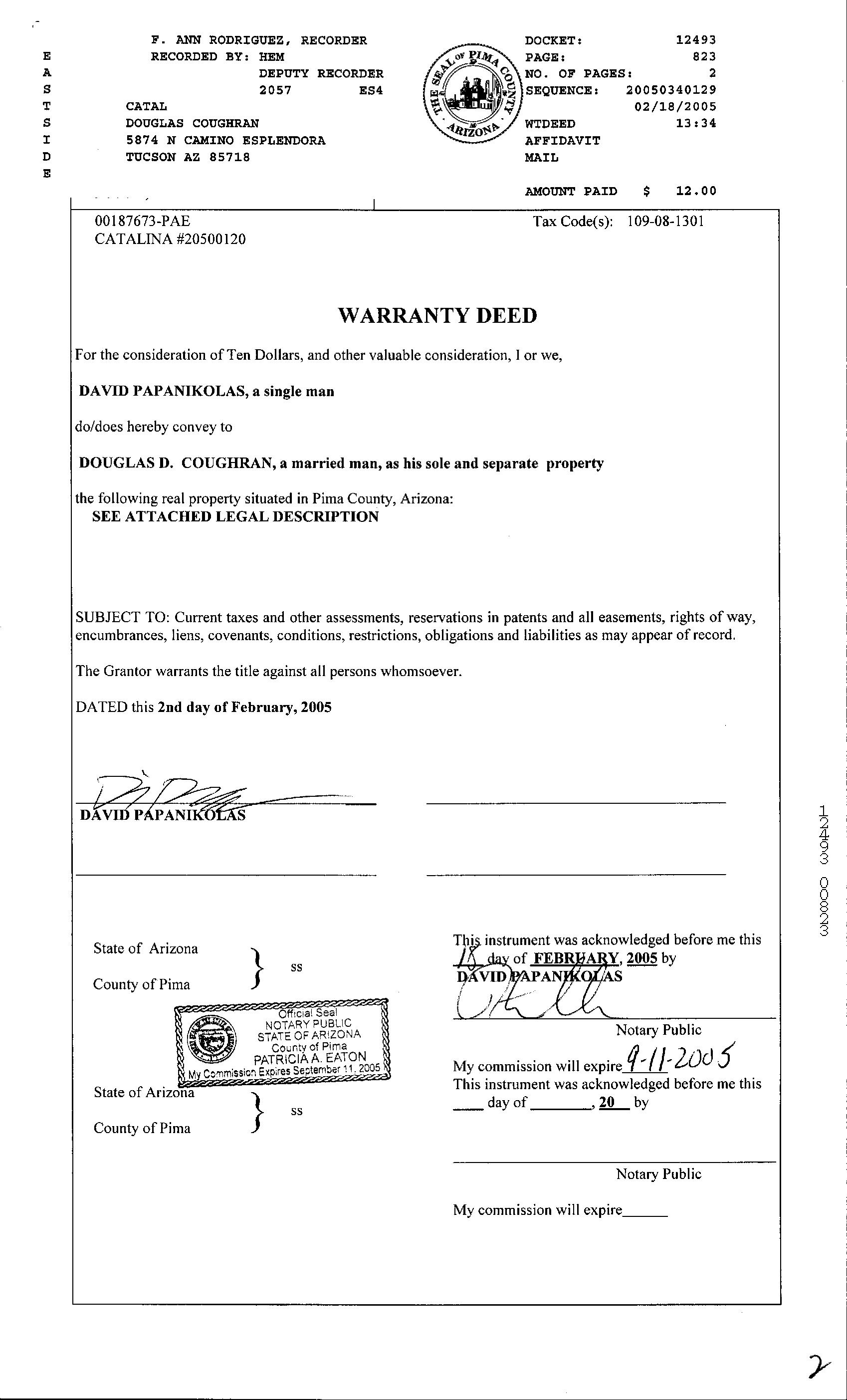 Owner Name: Cooper David A / APN / Alternate APN: 109-06-3530 / Deed Type: Warranty Deed