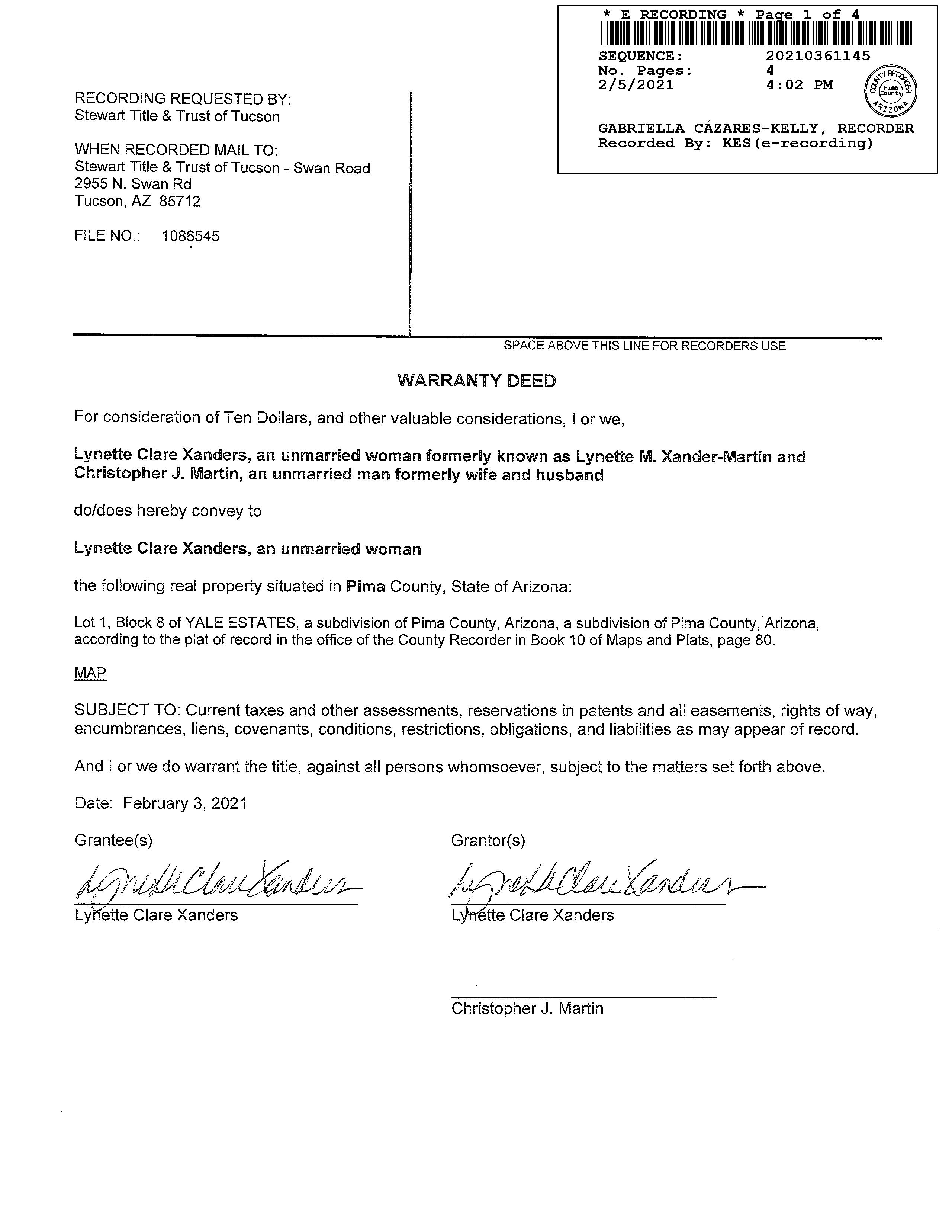 Owner Name: Xanders Lynette Clare / APN / Alternate APN: 134-24-1570 / Deed Type: Warranty Deed