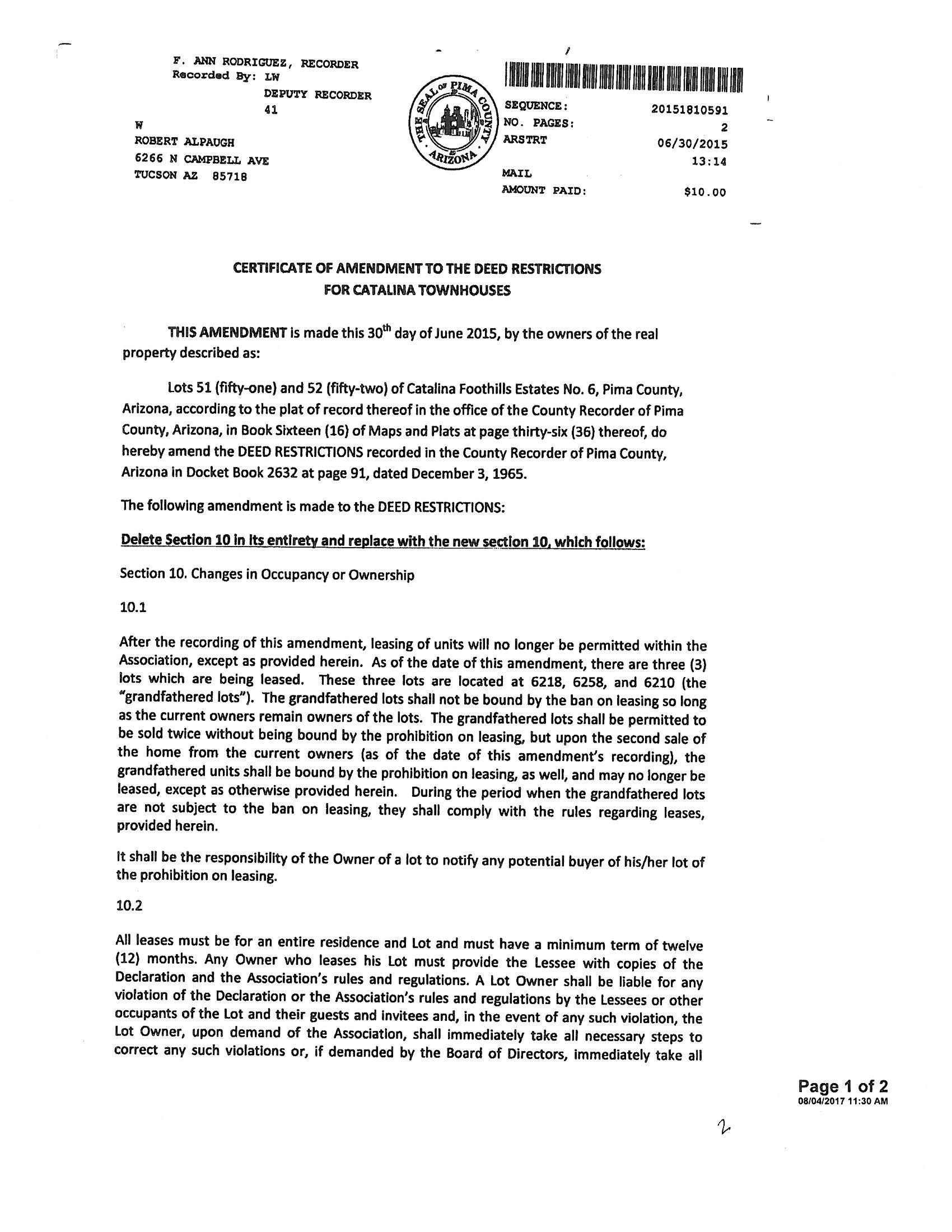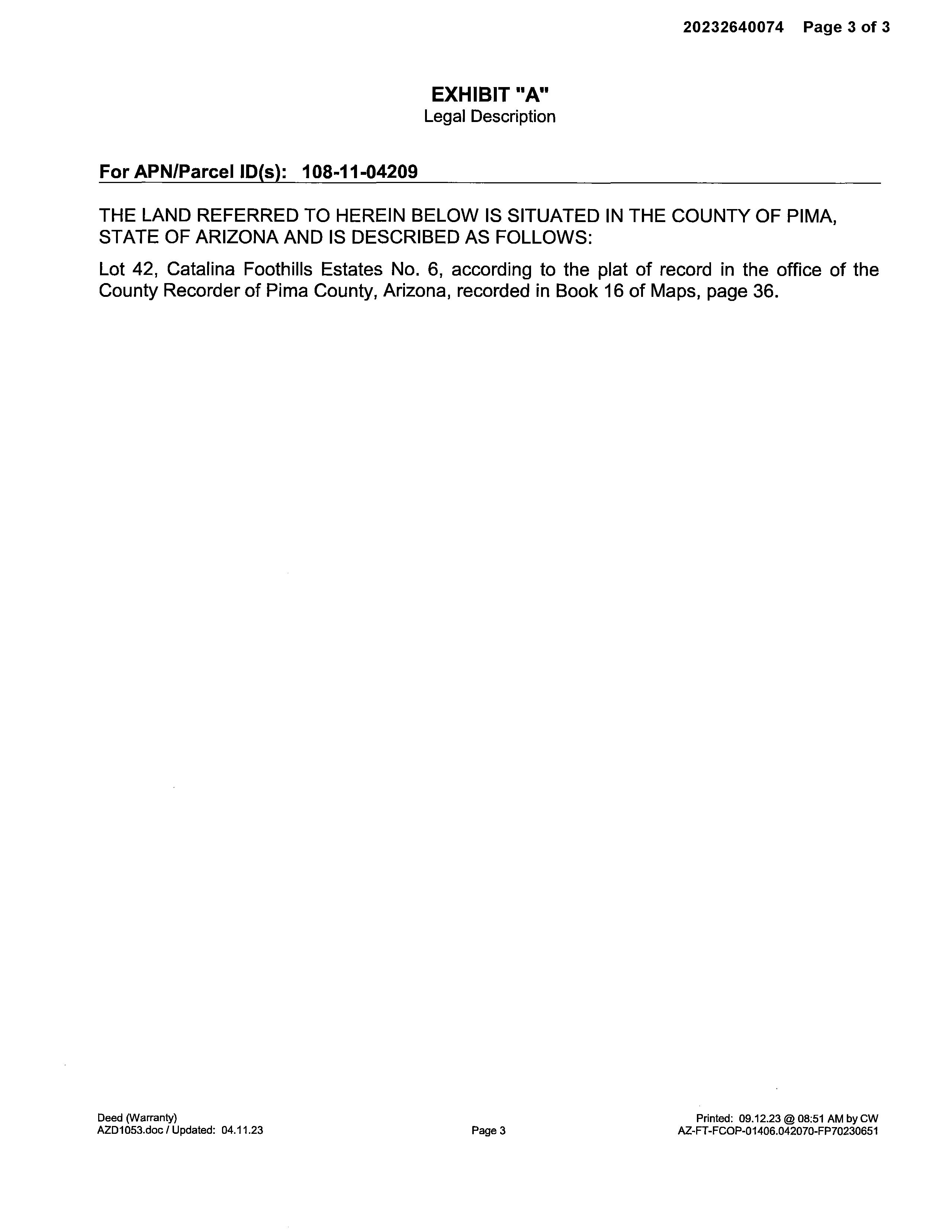 LEGAL: CATALINA FOOTHILLS ESTATES NO 6 LOT 42