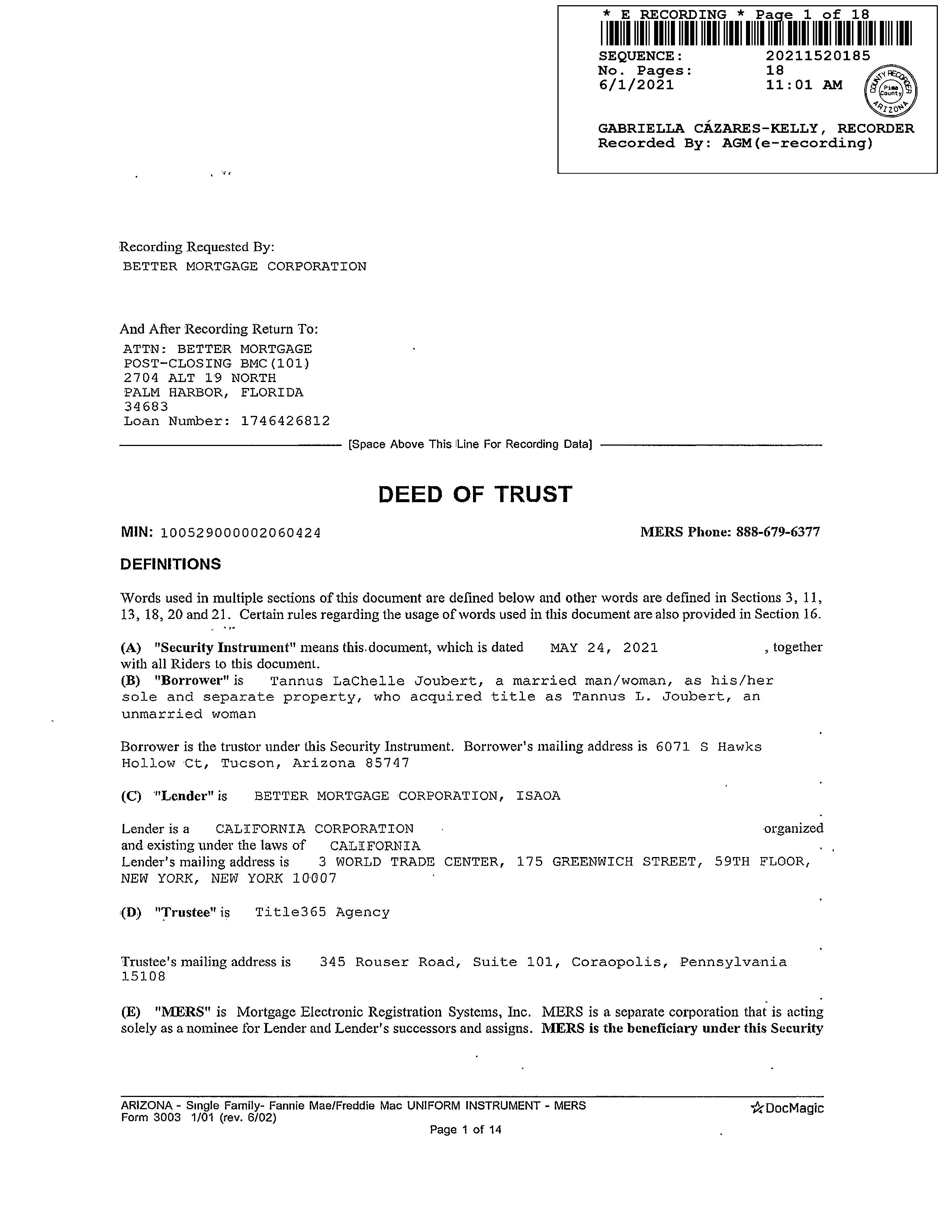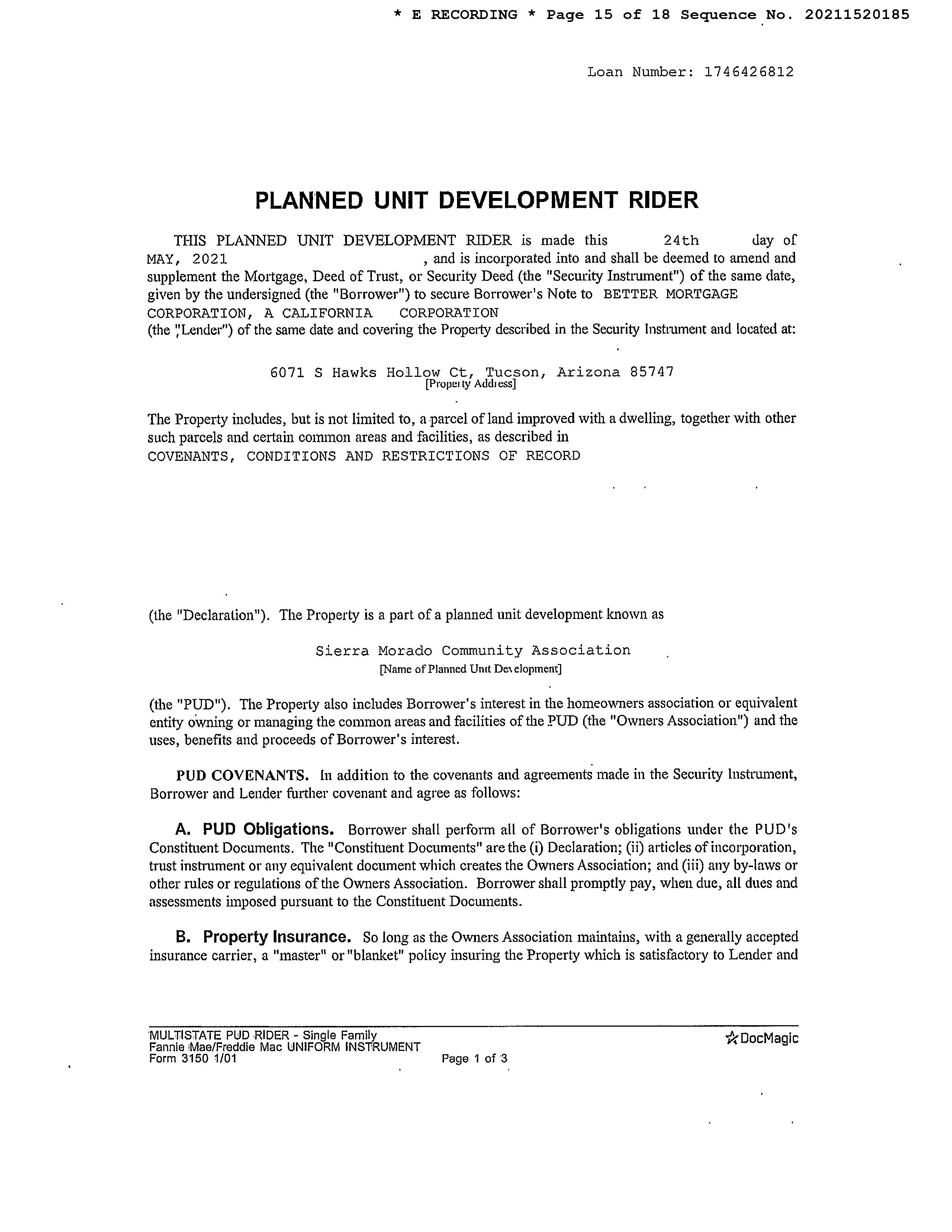 Mailing Address : 6071 S Hawks Hollow Ct, Tucson AZ 85747-6081 R167