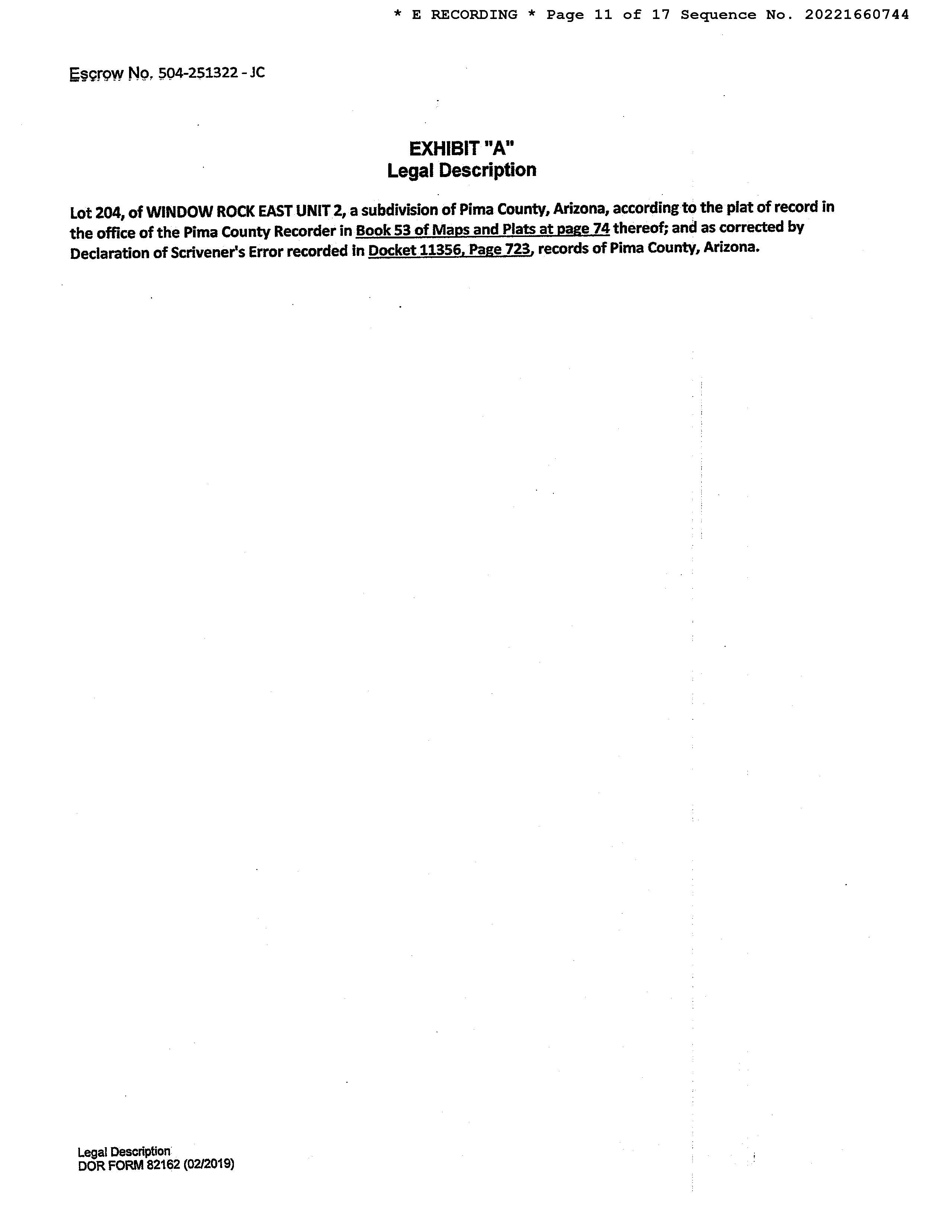 Subject Property : 6109 E Rough Rock Dr Tucson AZ 85756
