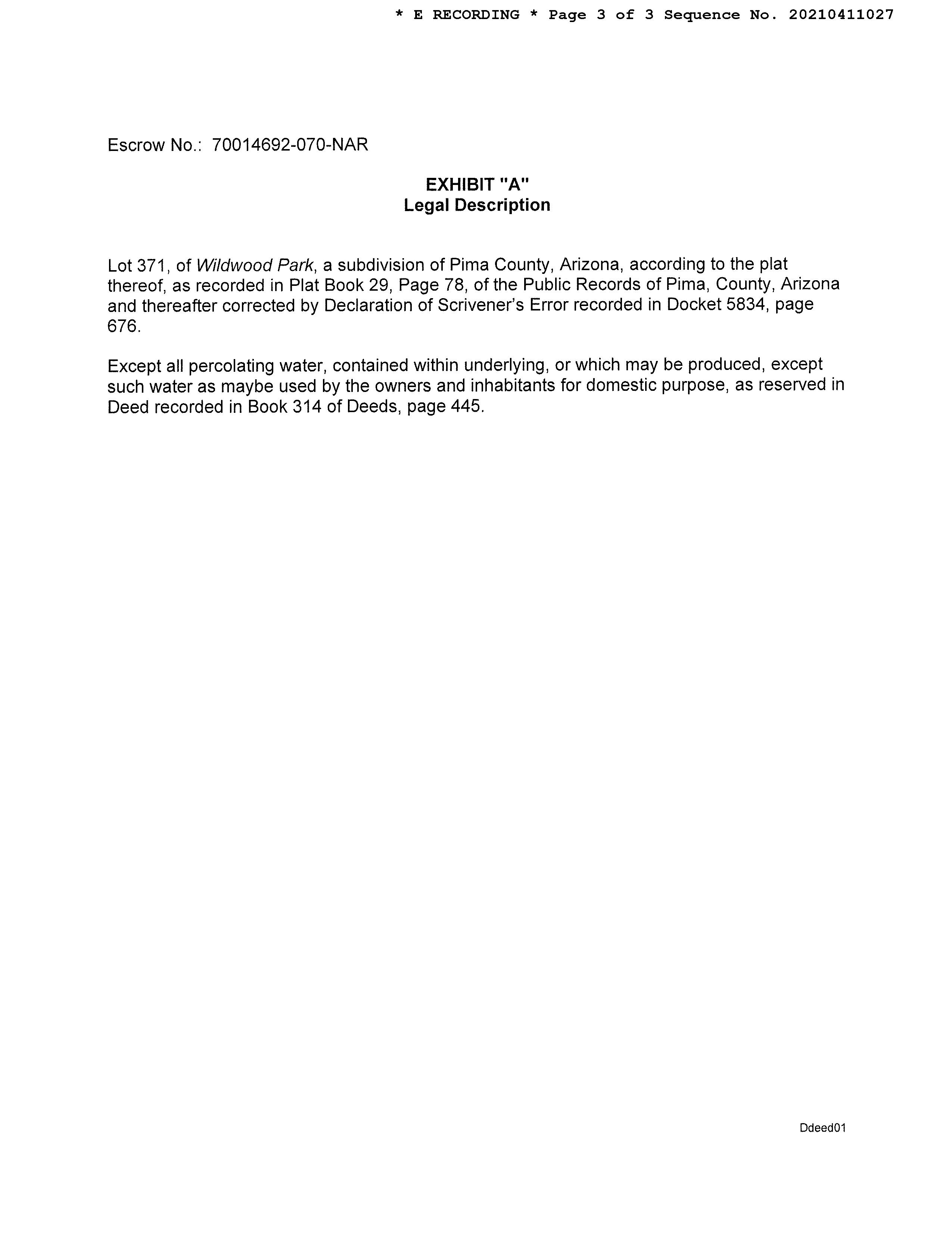 Legal Description : Wildwood Park Lot 371