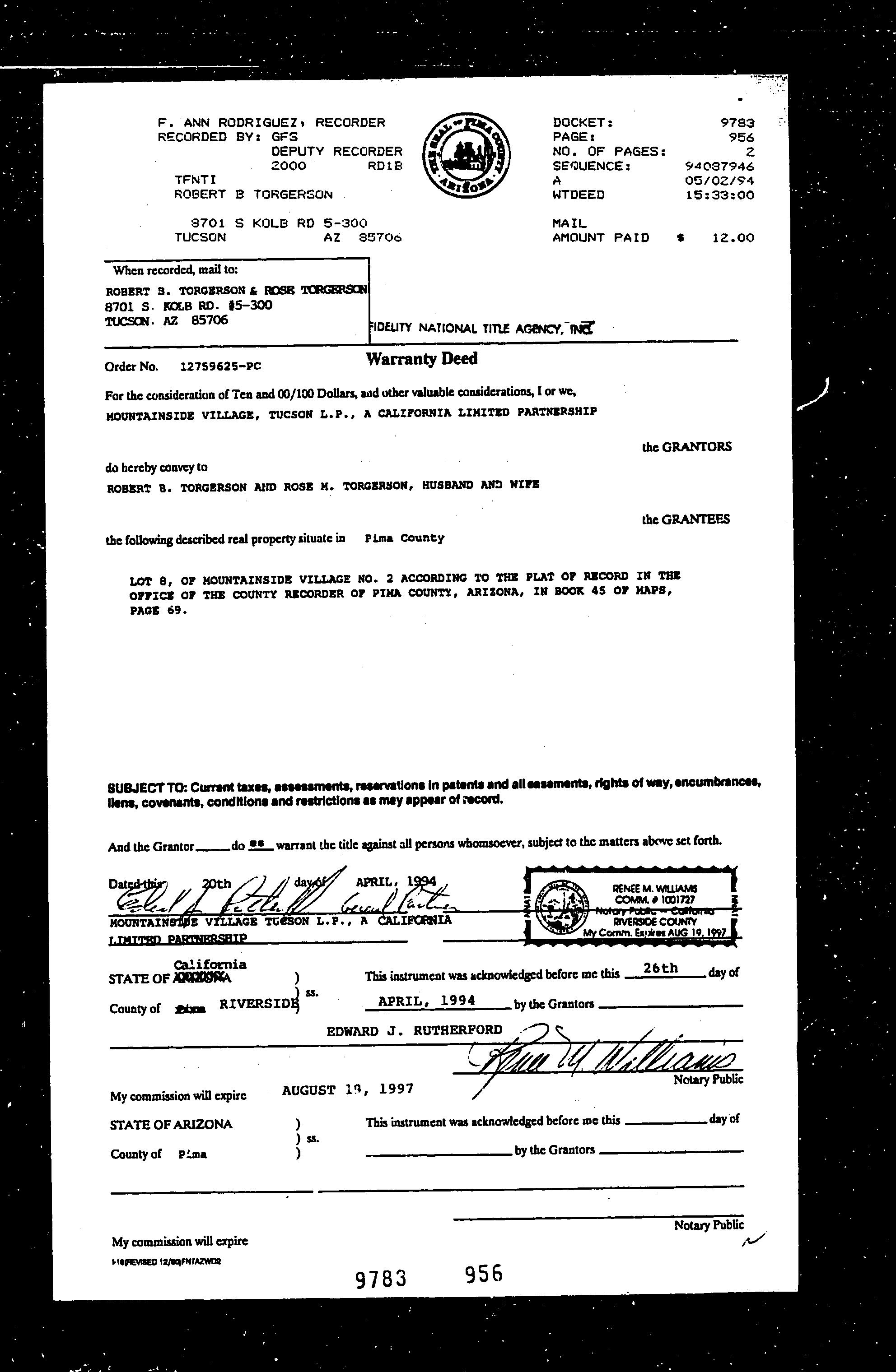 RecorderDoc# 94087946 Book/Page 9783/0956