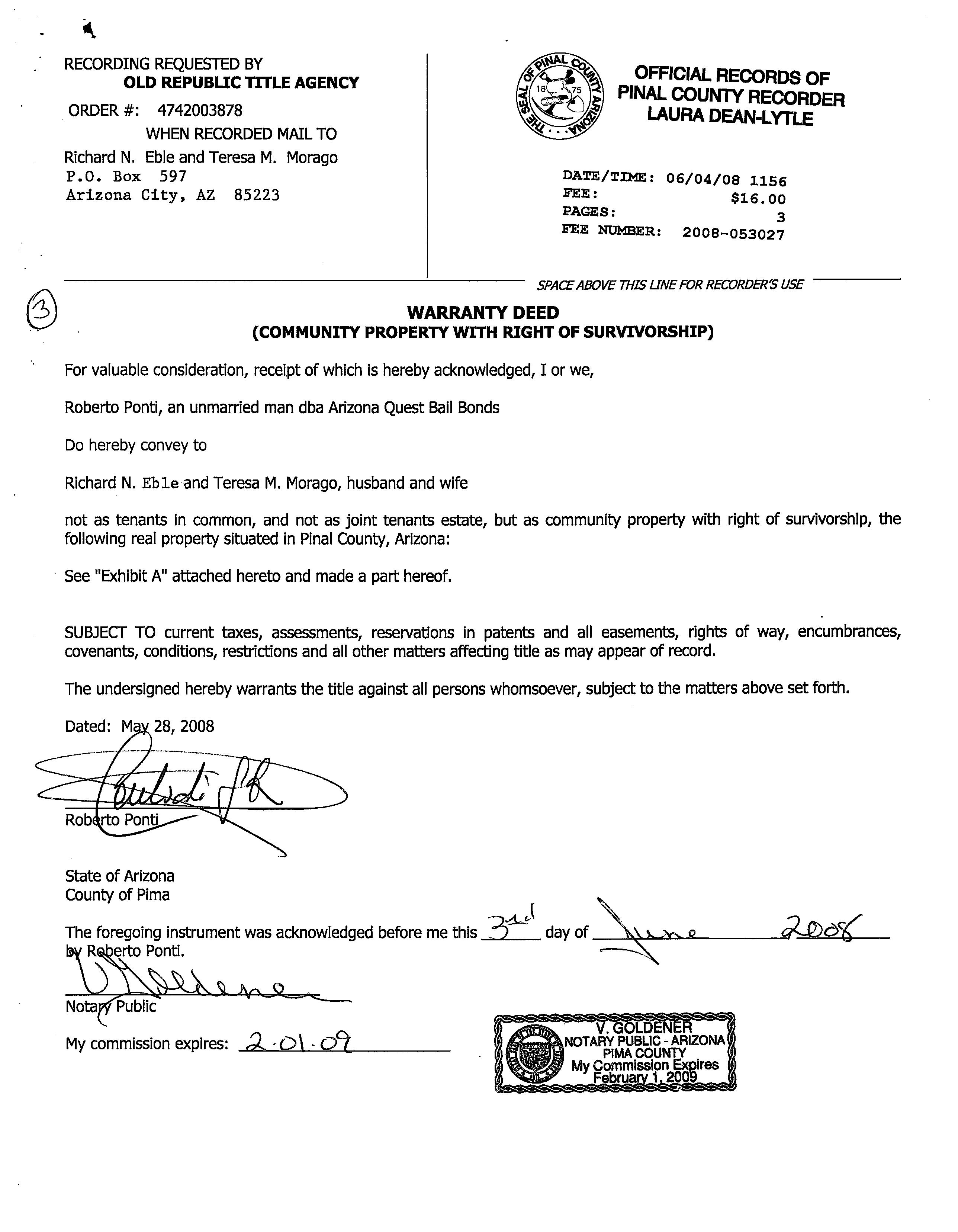 OWNER: EBLE RICHARD N 2008 53027 06/04/2008
