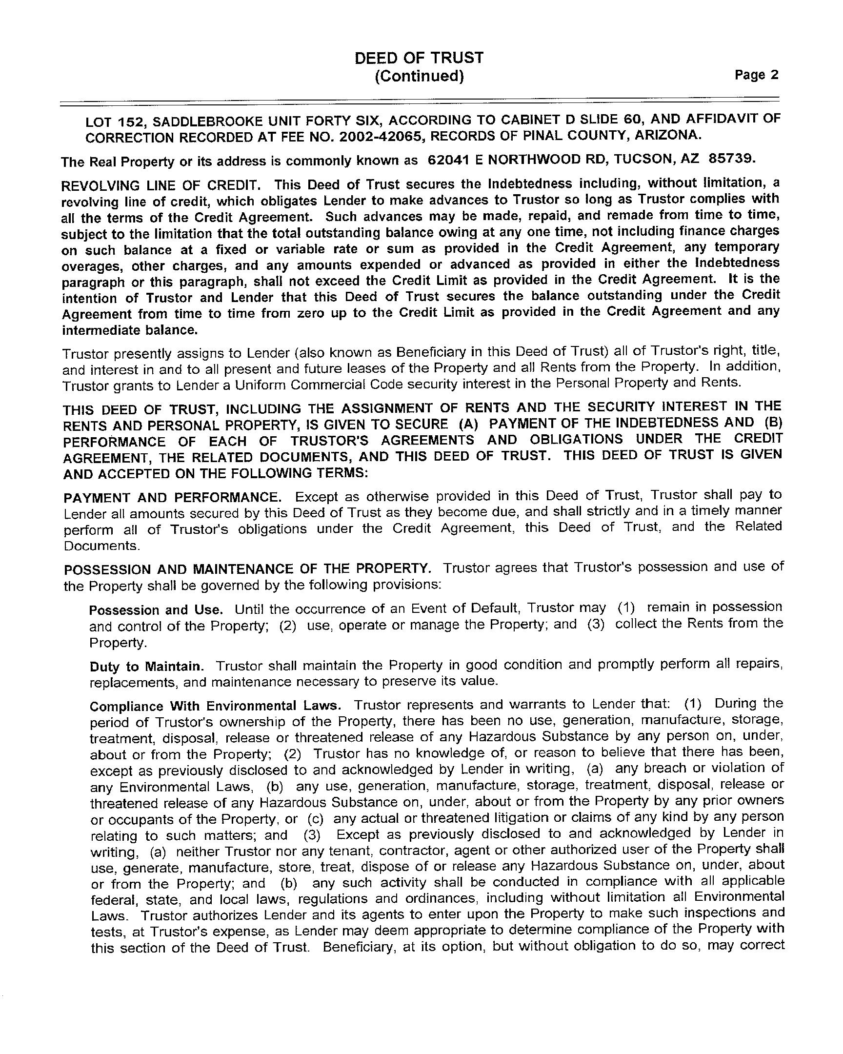 Legal Description : Saddlebrooke Unit 46 Lot 152 Sec 33-10s-14e 8714 Sq Ft 0.20 Ac
