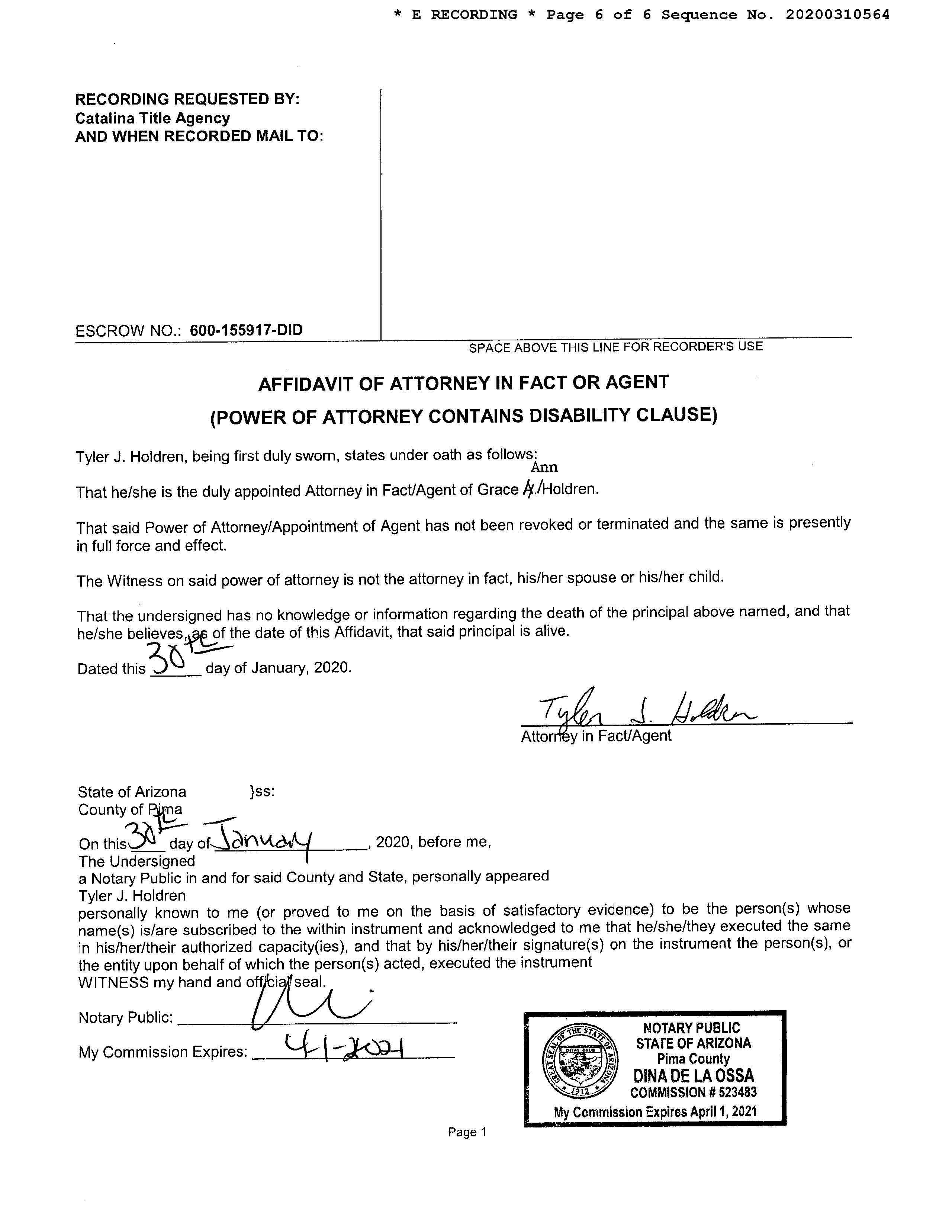 OWNER: HOLDREN TYLER J & GRACE ANN AFFIDAVIT