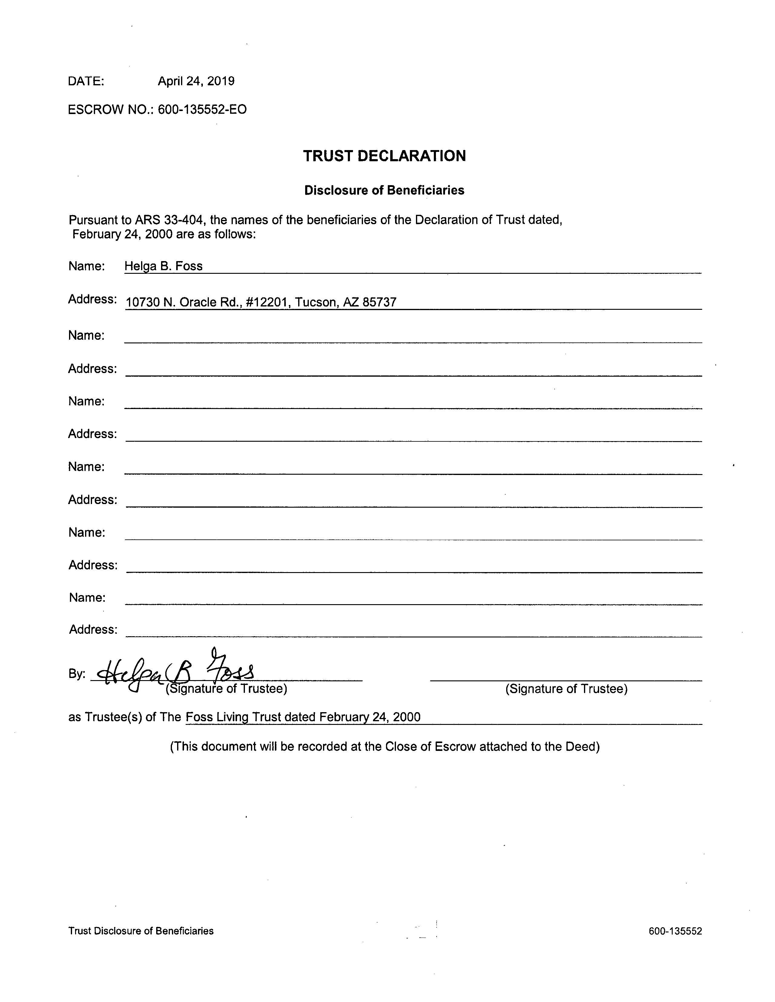 OWNER: FOSS LIVING TRUST & FOSS AFFIDAVIT 2019 32895 04/30/2019