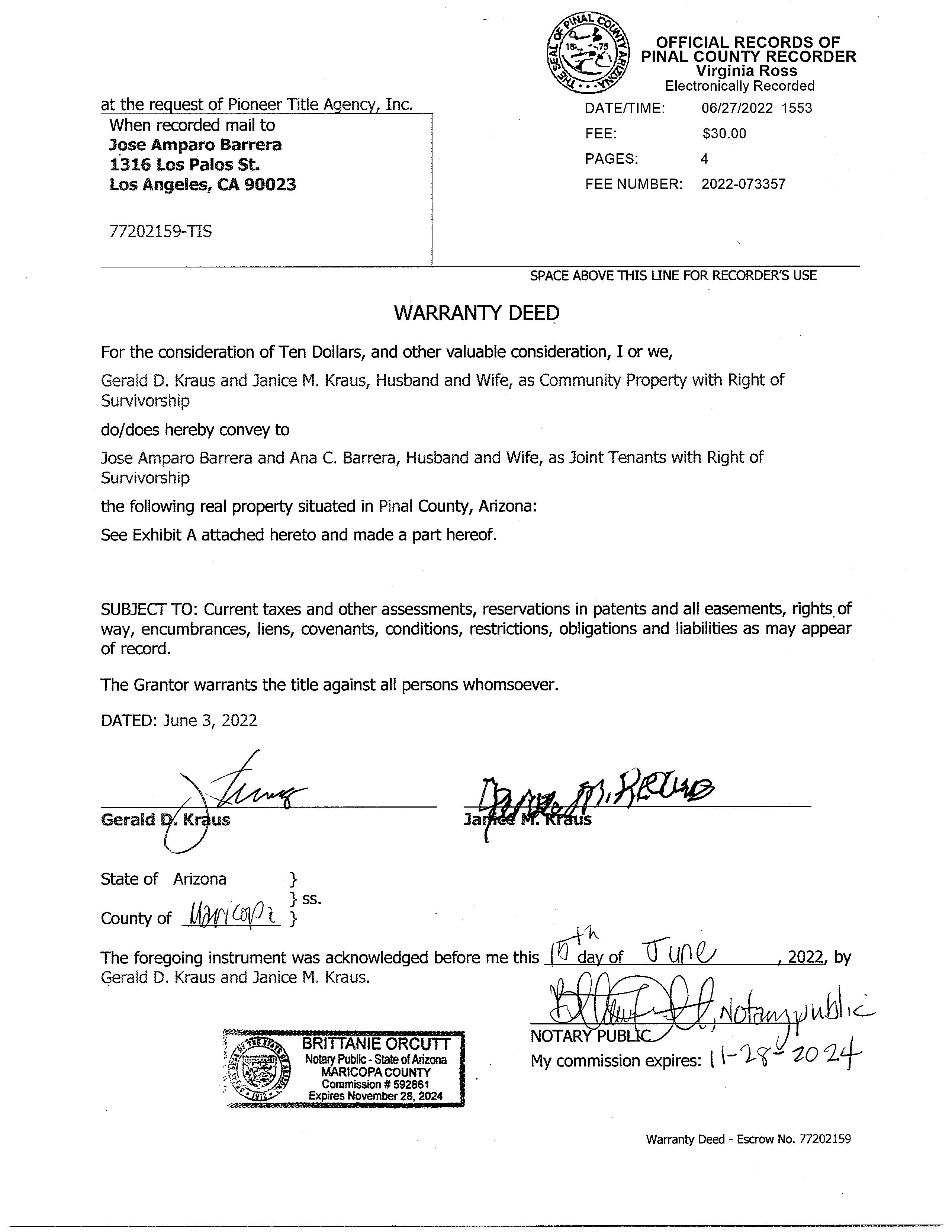 OWNER: BARRERA JOSE & ANA AFFIDAVIT 2022 73357 06/27/2022