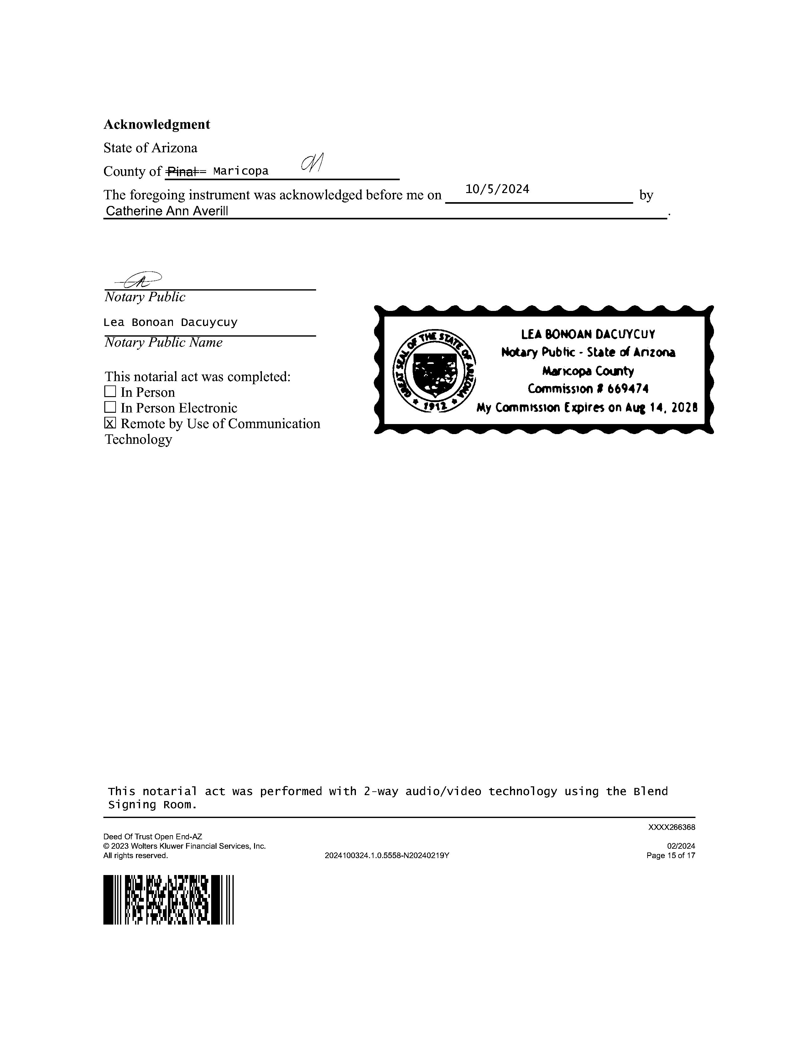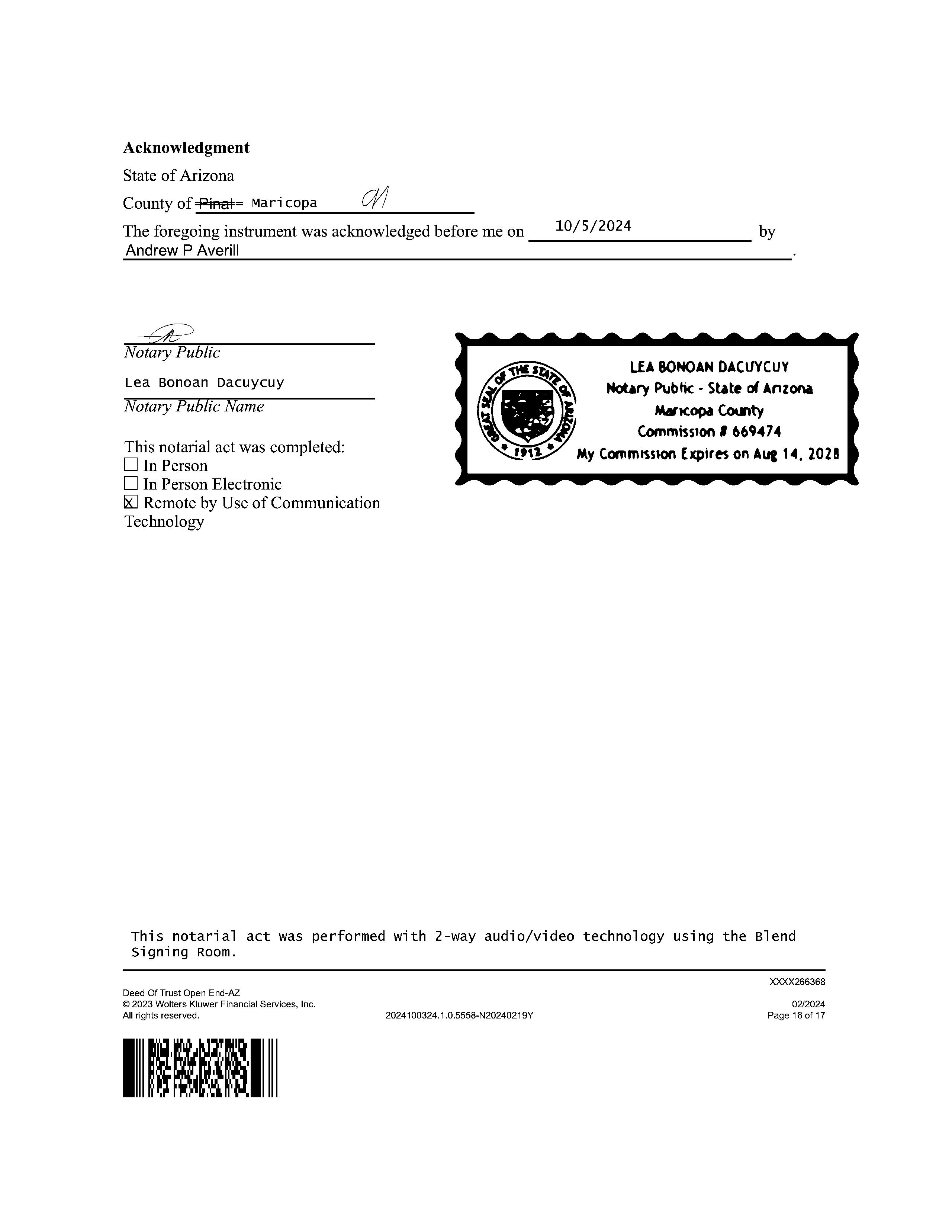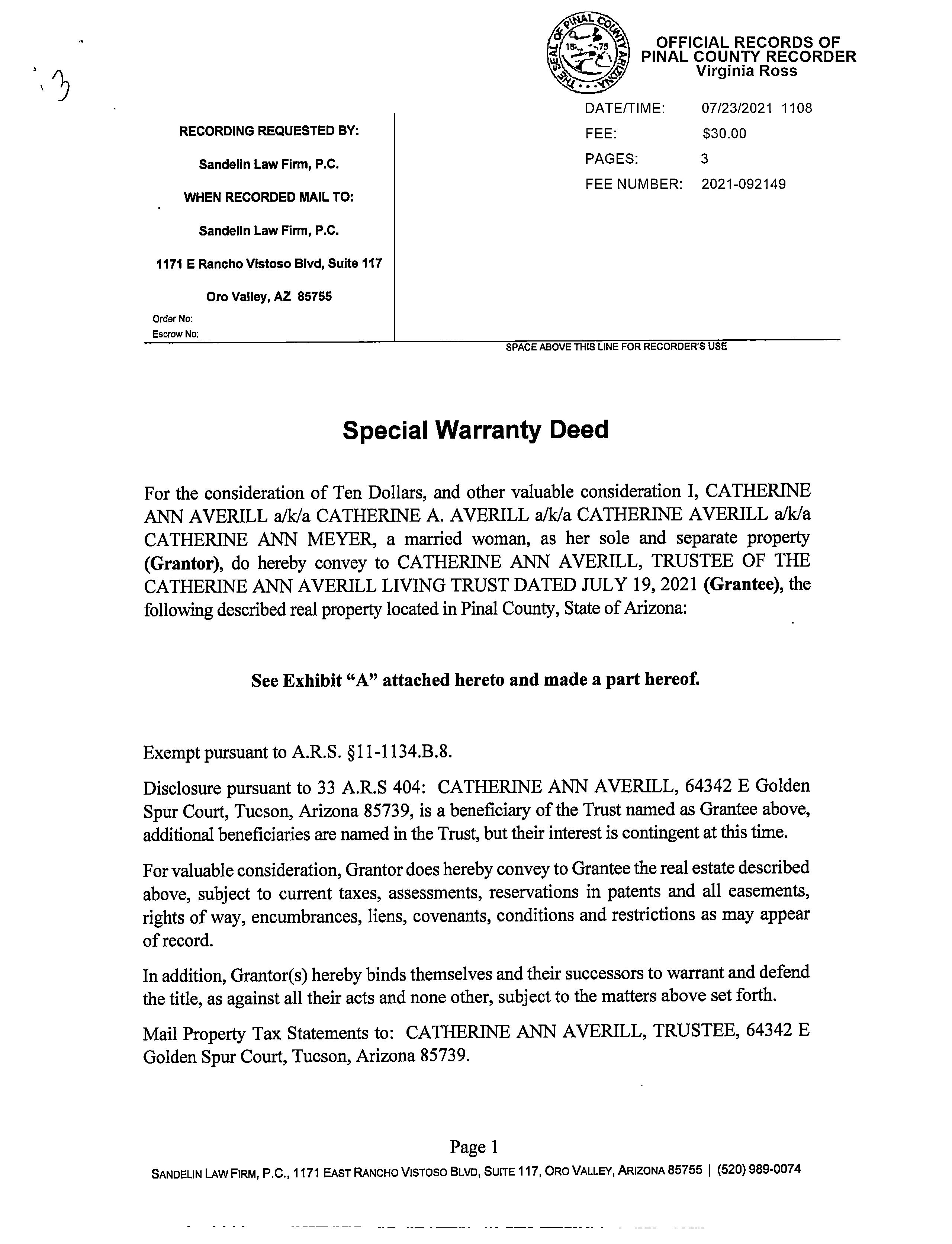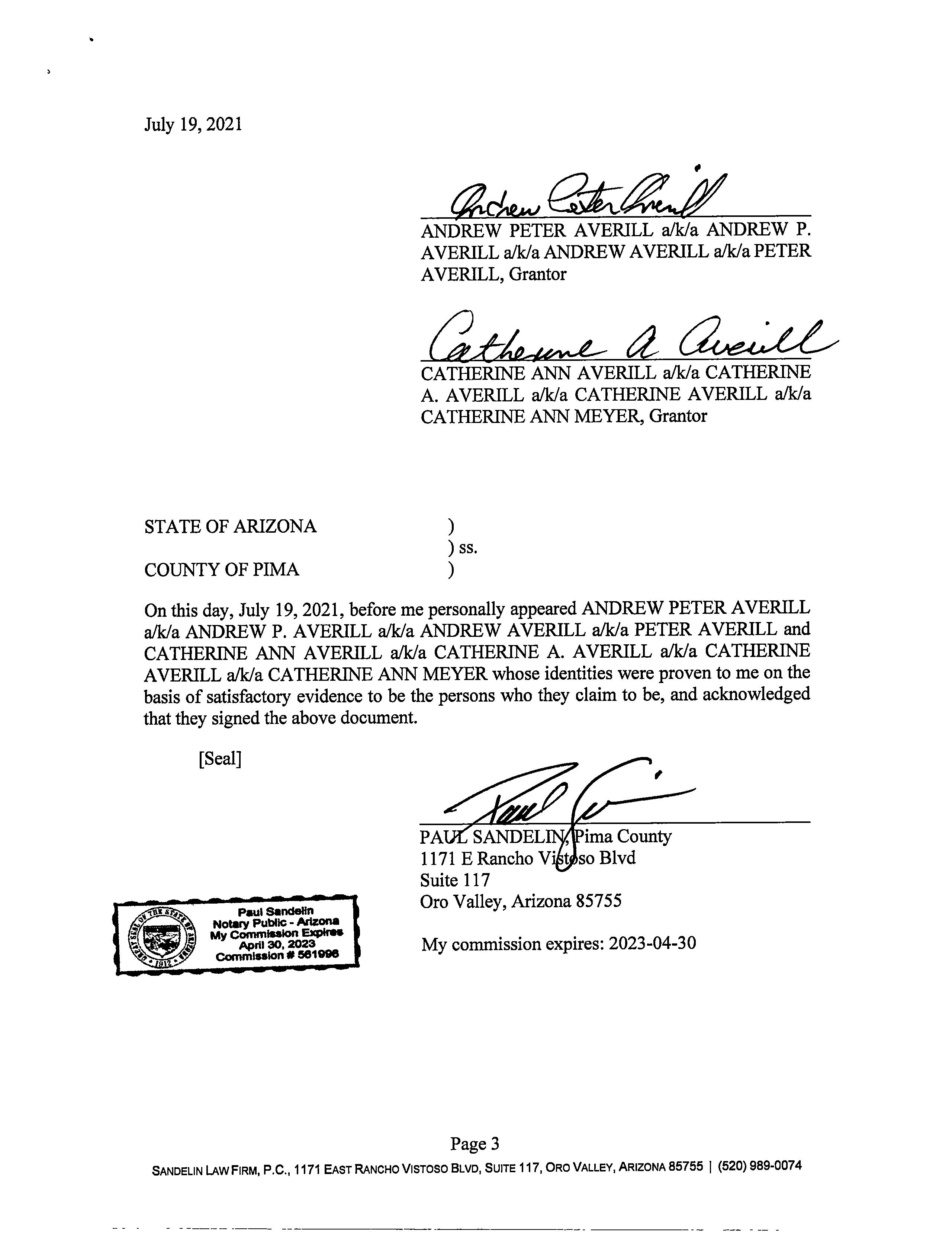 OWNER: AVERILL ANDREW P & CATHERIN AFFIDAVIT 2020 115924 11/10/2020