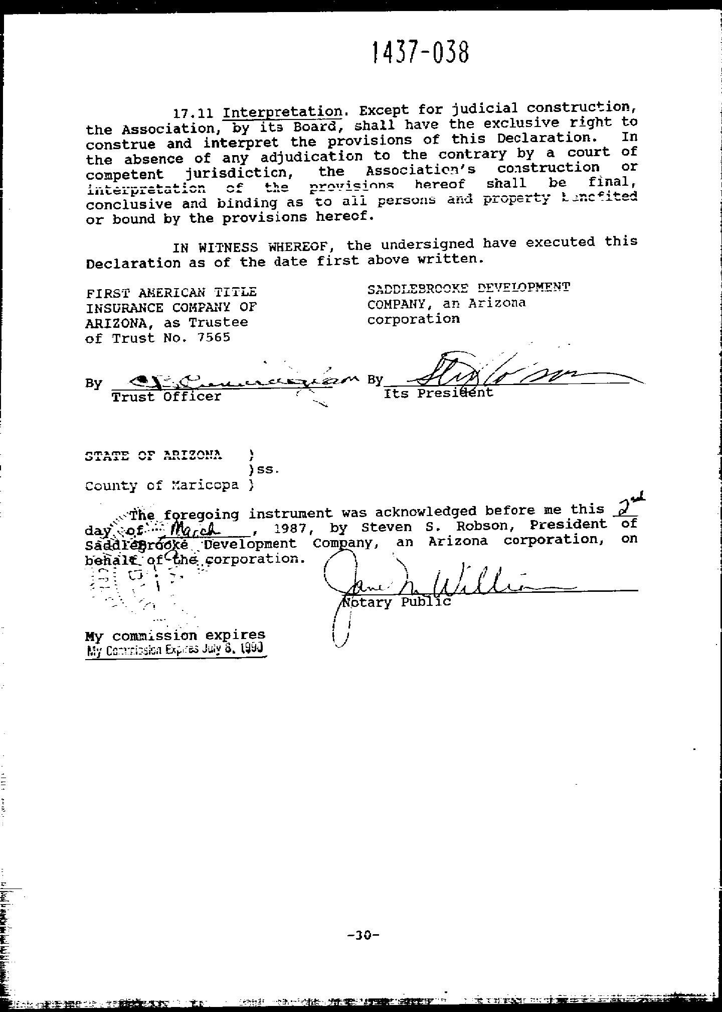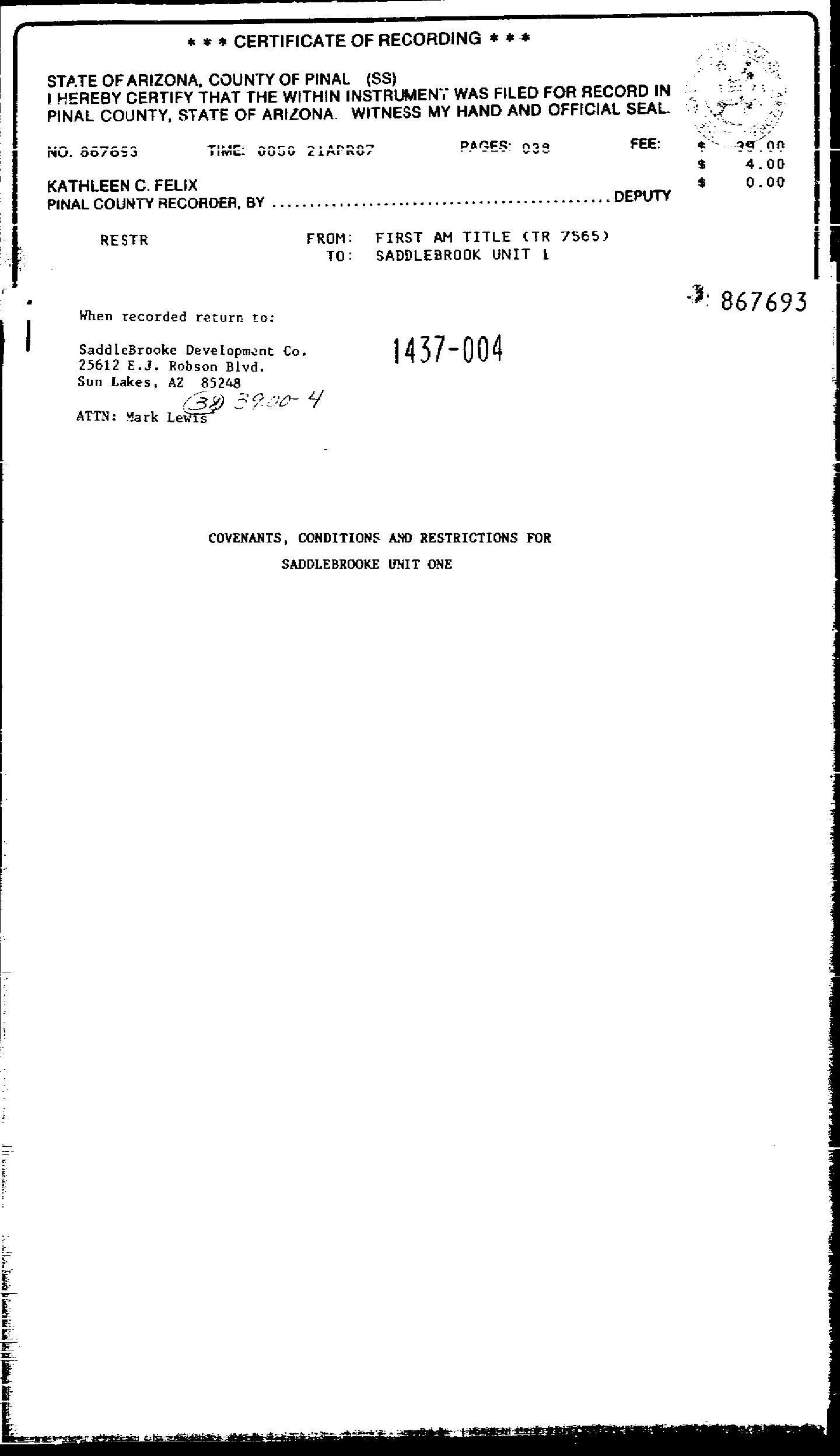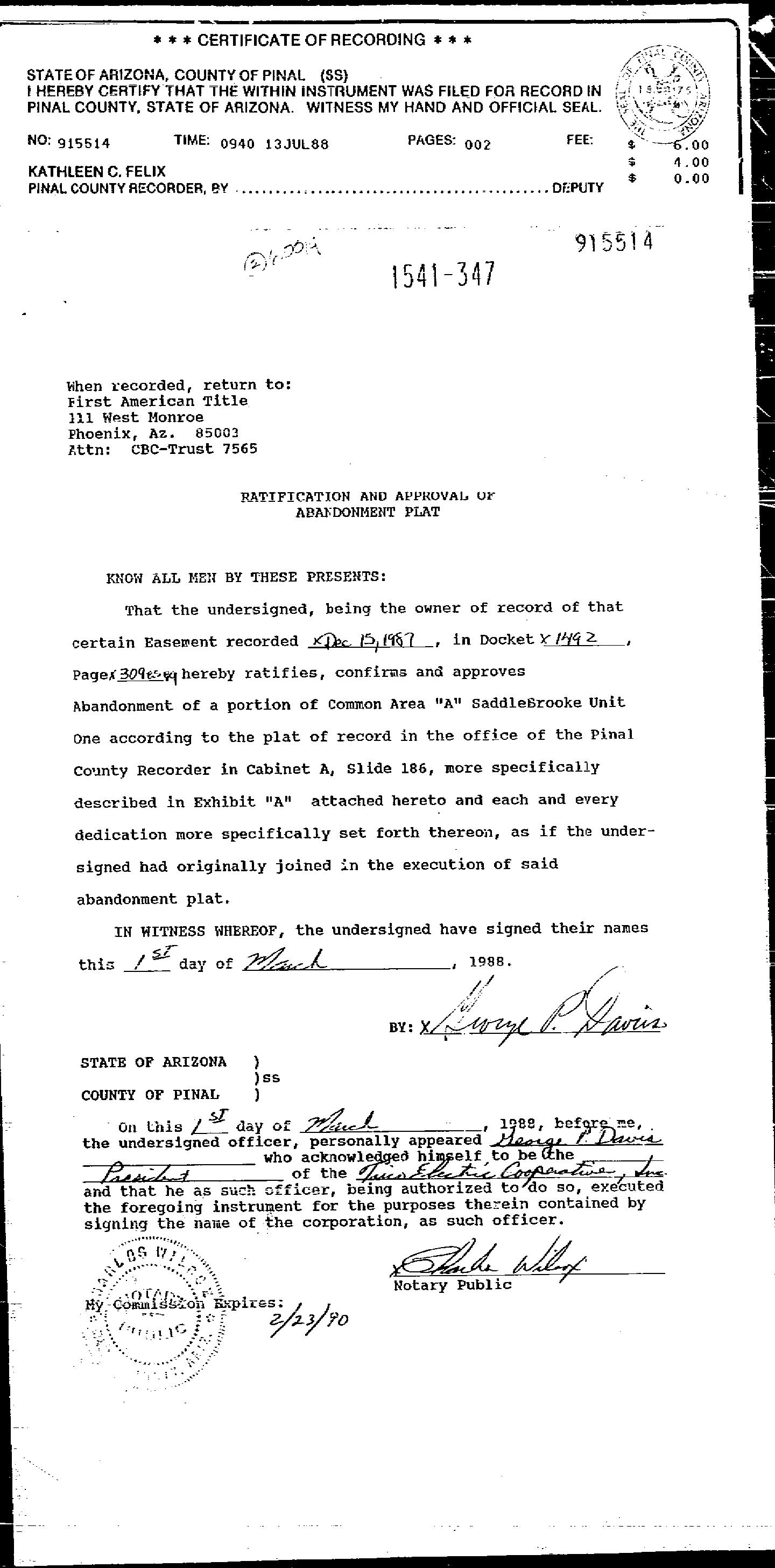 1567 859 WD SADDLEBROOKE DEVELOPMENT C 11/14/1988 1566 825 WD EDWARD C CALIGURI TRUST 09/27/1988 27,075 1556 940 AG FIRST AMERICAN TITLE INSUR