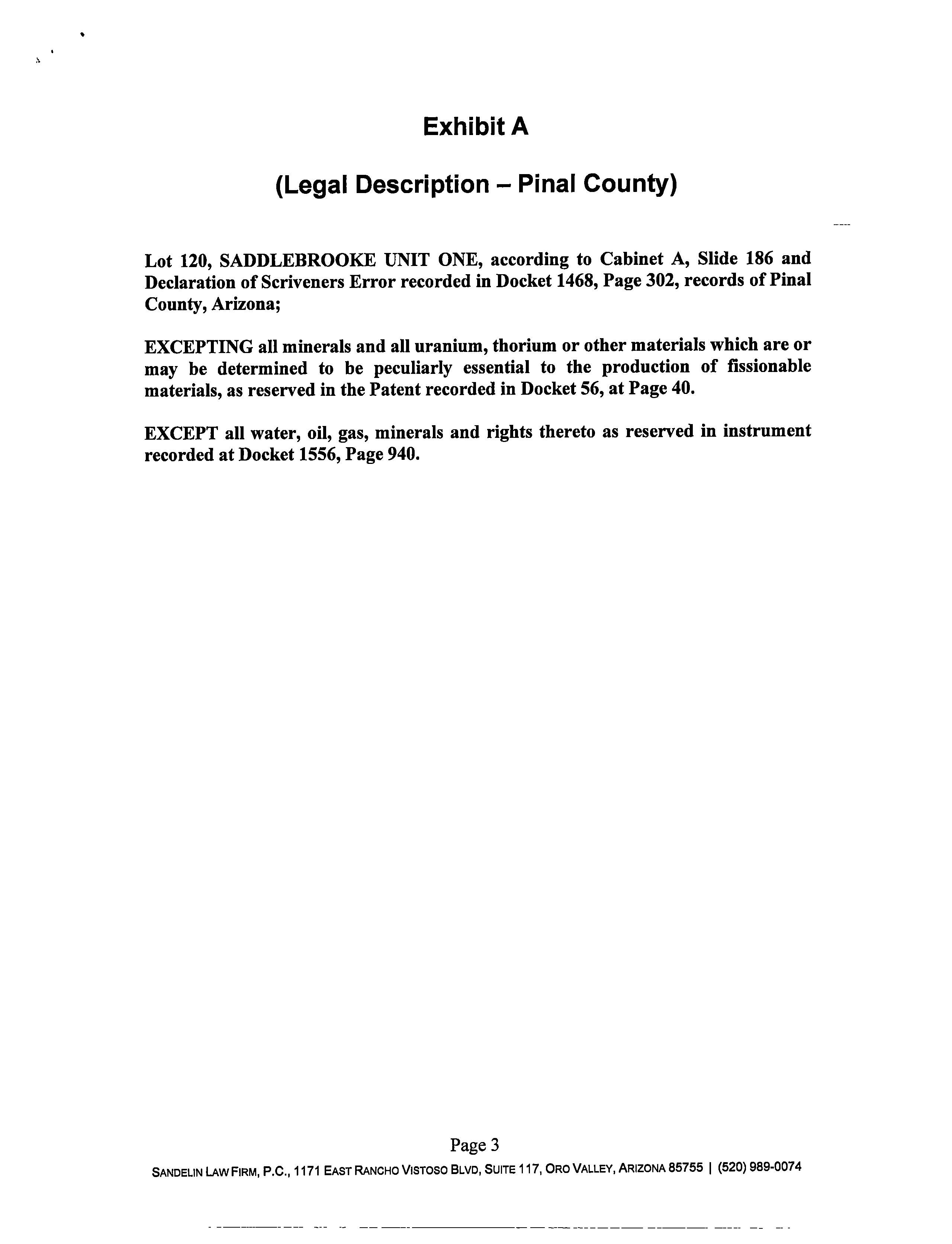 Legal Description : Lot 120 Saddlebrooke Unit 1 Cab A Sld 186 Sec 26 & 27-10s-14e 12,500 Sq Ft A-186