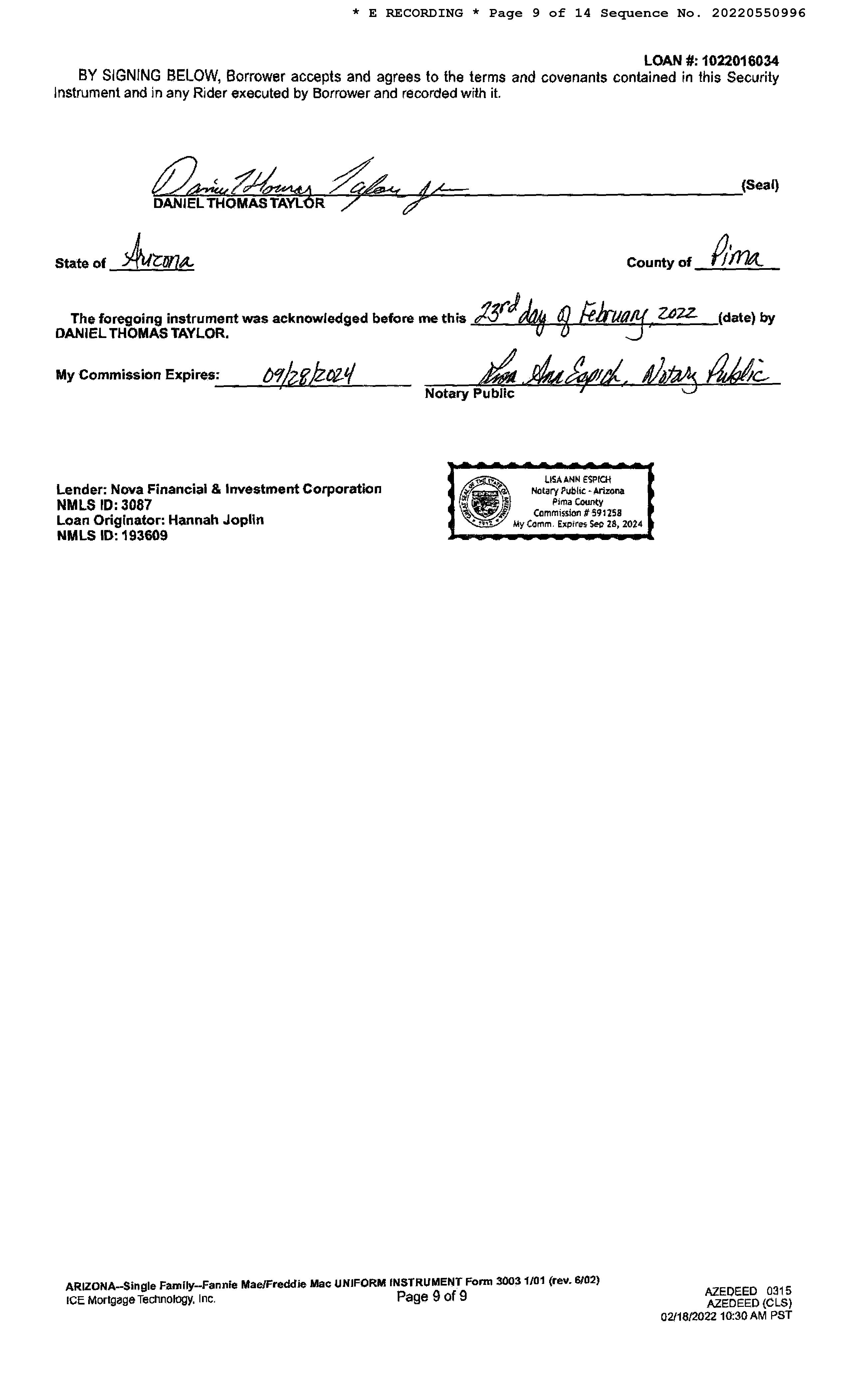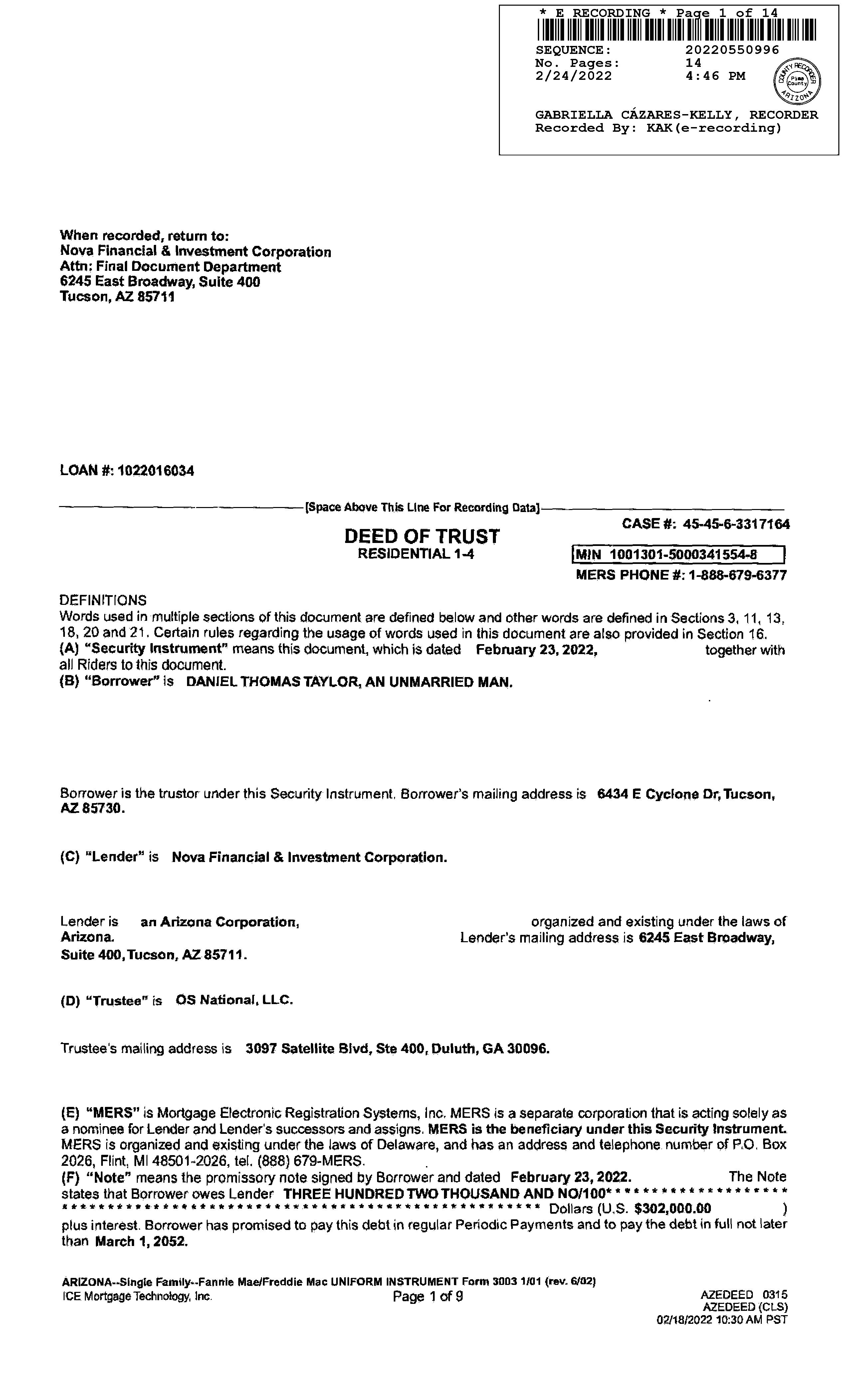 OWNER: TAYLOR DANIEL  AFFIDAVIT    2022 550995 02/24/2022