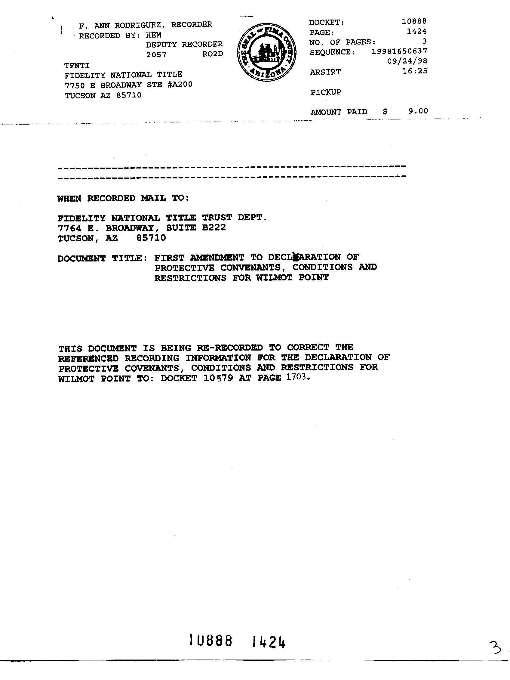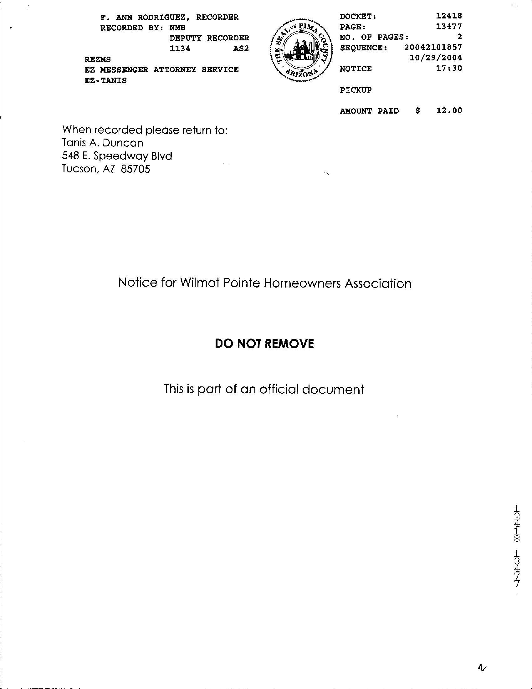 Legal Description : Wilmot Vista Ii Lot 125 County : Pima, Az