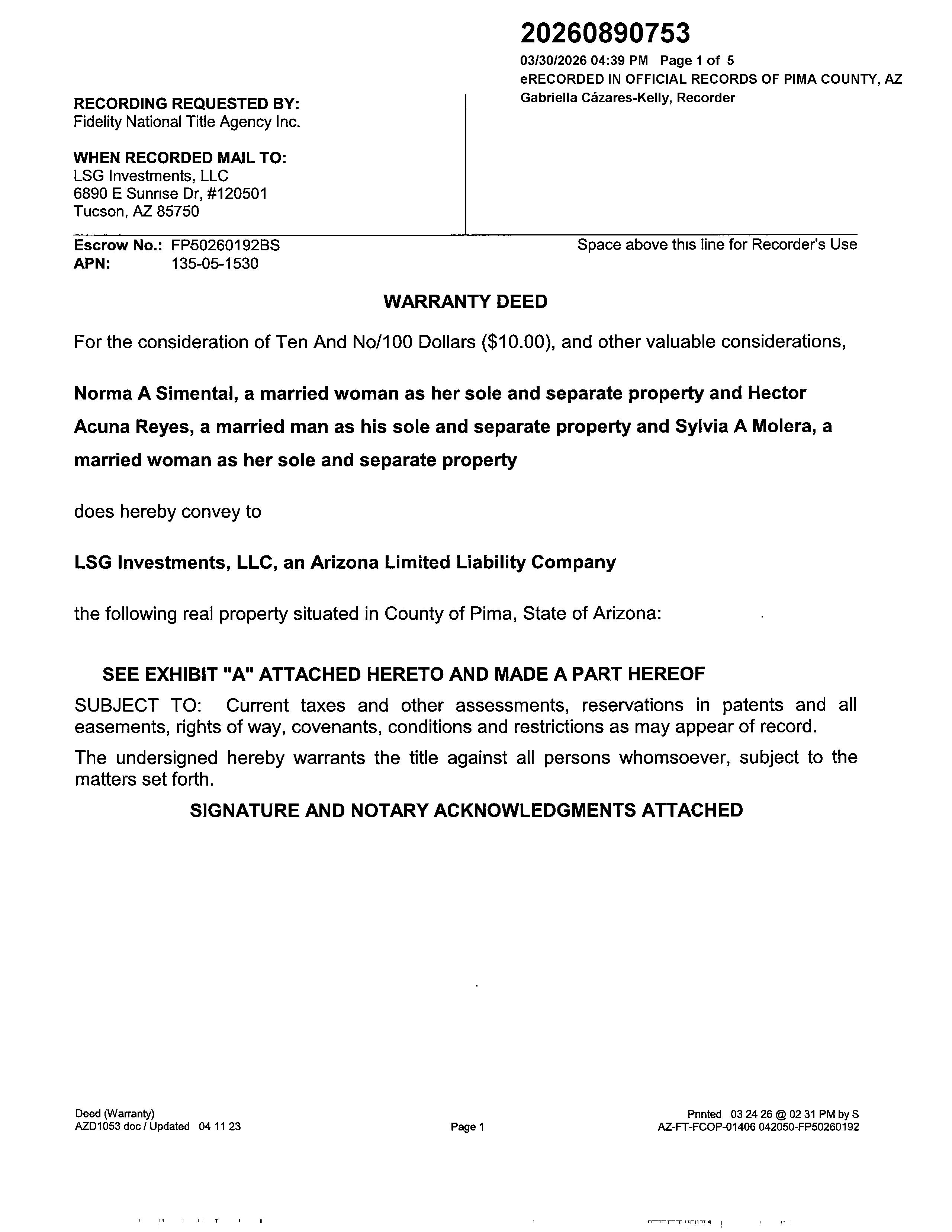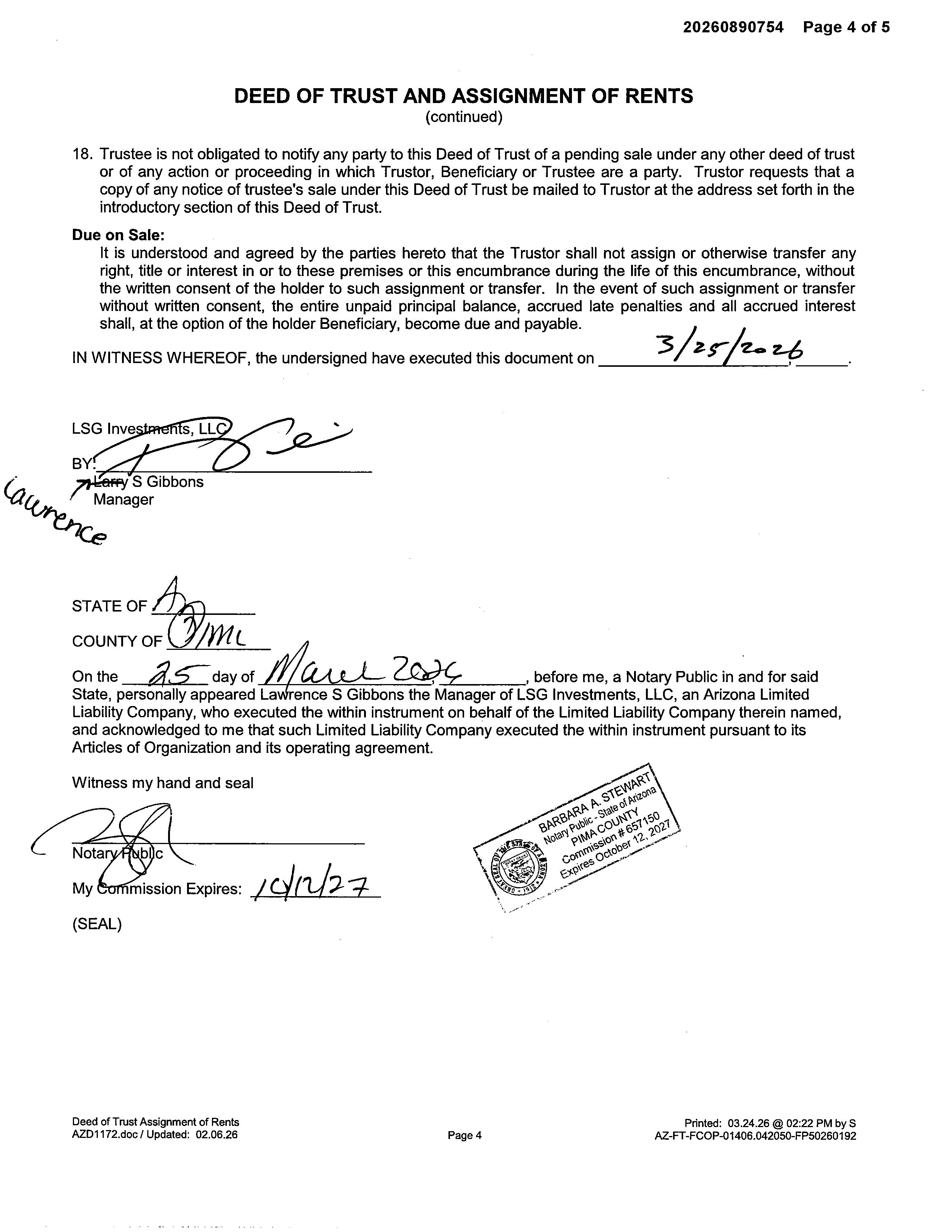 OWNER: LSG INVESTMENTS LLC  AFFIDAVIT    2026 890753 03/30/2026
