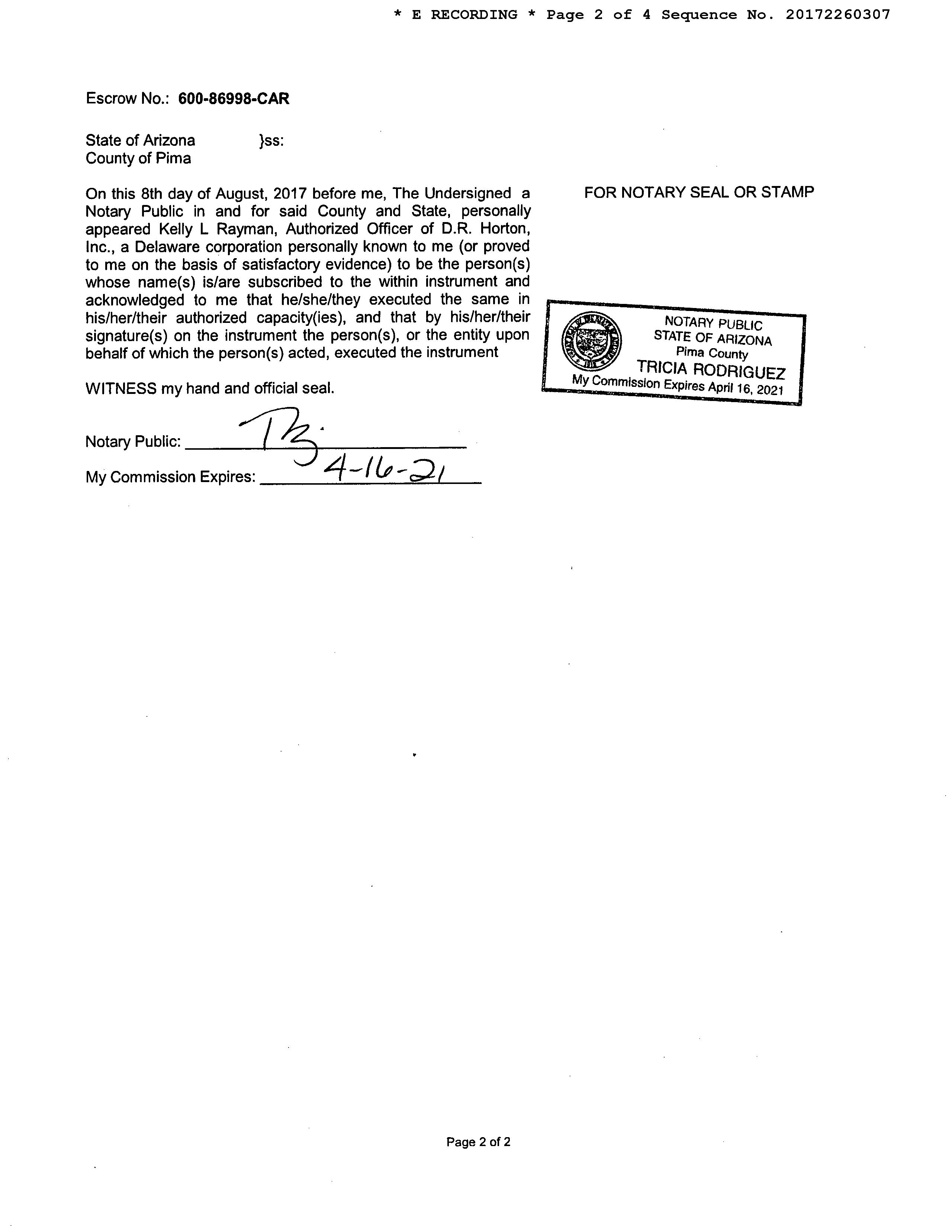 FIRST AMERICAN - SOUTHERN ARIZONA ADMIN OFFICE 520.885.1600 tsa-administration@firstam.com First American Title Insurance Company, and the operating divisions thereof, make no express or implied warranty respecting the information presented and assume no responsibility for errors or omissions. First American, the eagle logo, First American Title, and firstam.com are registered trademarks or trademarks of First American Financial Corporation and/or its affiliates. ©2024 First American Financial Corporation and/or its affiliates. All rights reserved. NYSE: FAF