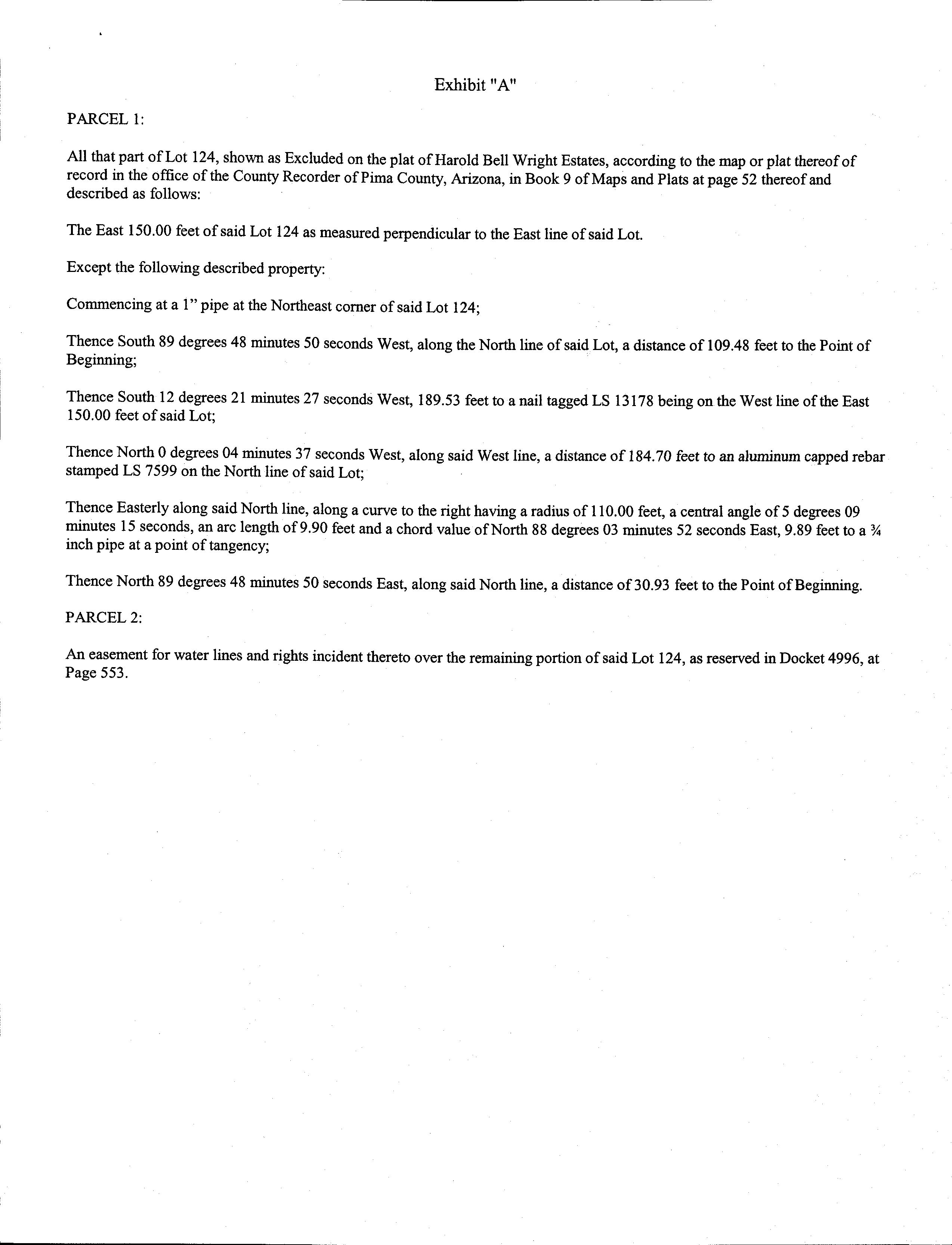 Legal Description : E150' Lot 124 Excld Ptn Harold Bell Wright Est Exc Nwly Tri Ptn 1.15 Ac Sec 7-14-15