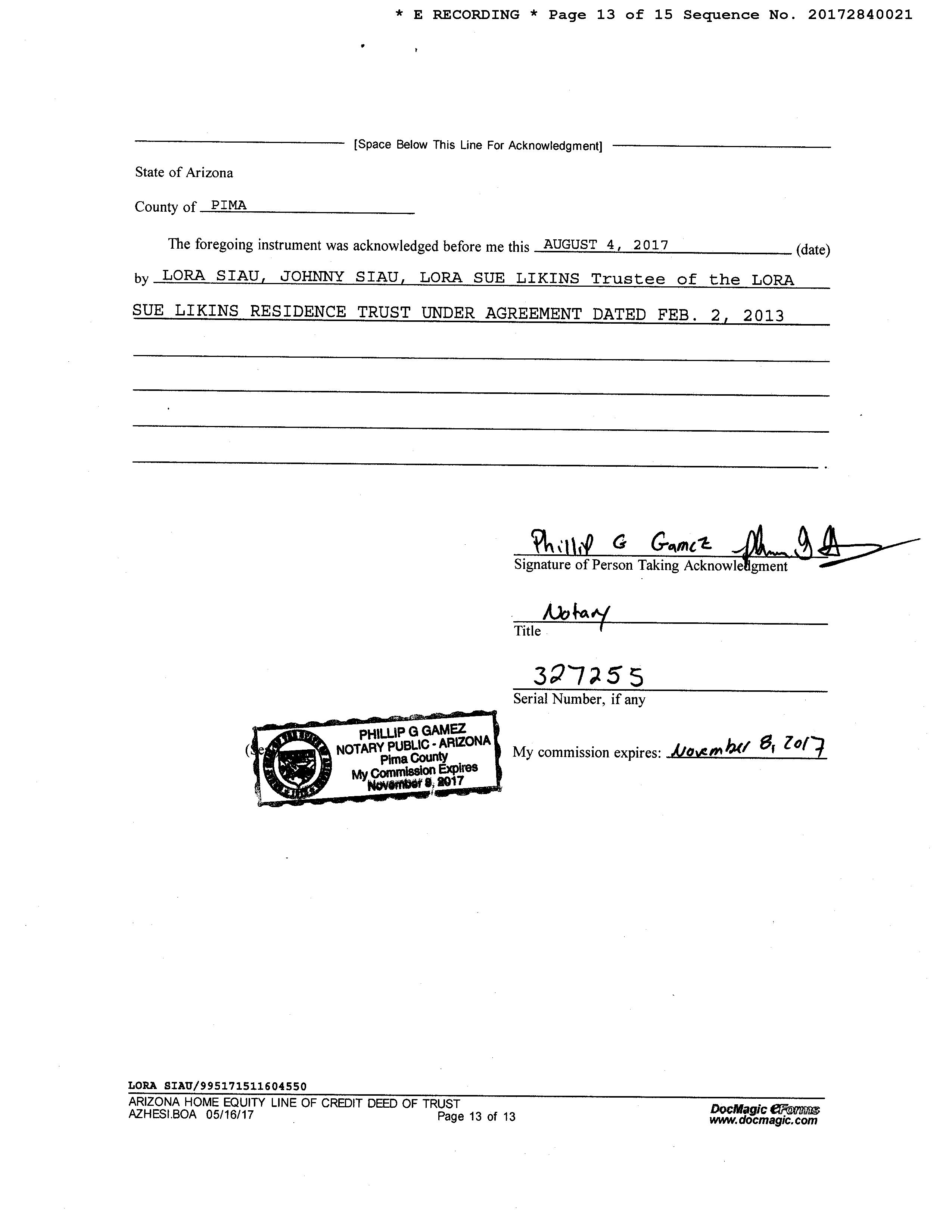 Mailing Address : 6510 E Marta Hillgrove, Tucson AZ 85710-1117 C007