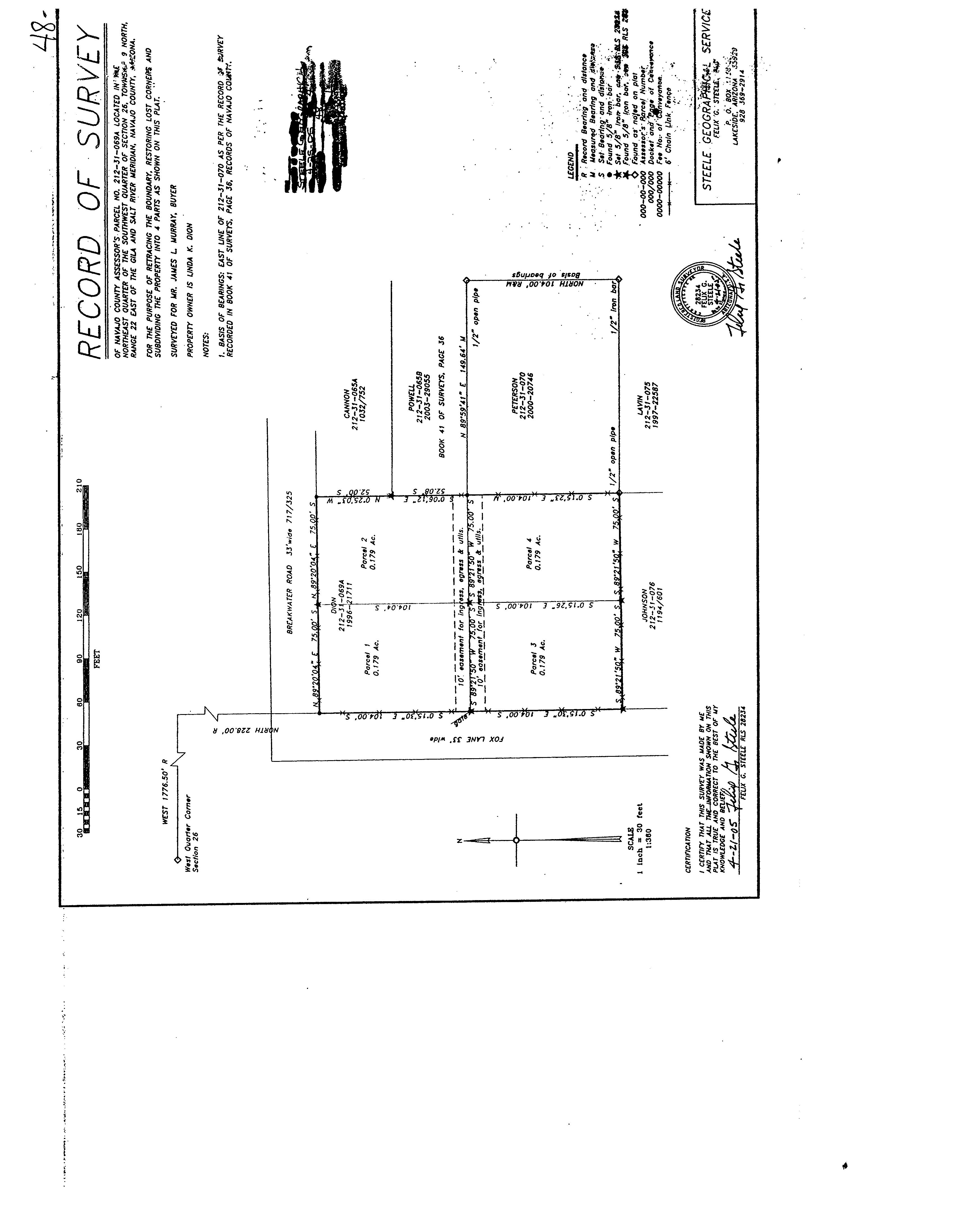 Legal Description : Section 26, T9n, R22e: Parcel 4 Of Survey 48-19. Aka: Comm W4 Cor Sec 26; Th E 1776.50';th S 228'; Th S0*15'30 E 104'; Th N89*21'5 0 E 75' Tpob; Th N89*21'50 E 75'; Th S0*15'23 E 104'; Th S89*21'5 0 W 75'; Th N0*15'26 W 104' Tpob. Out Of 212-31-069a For2006roll