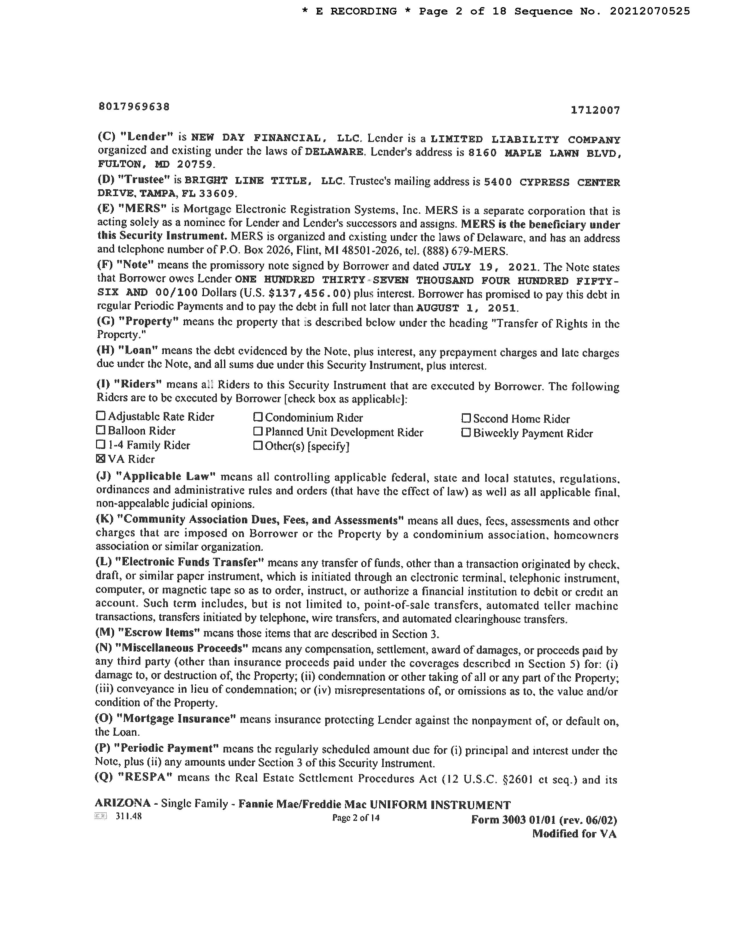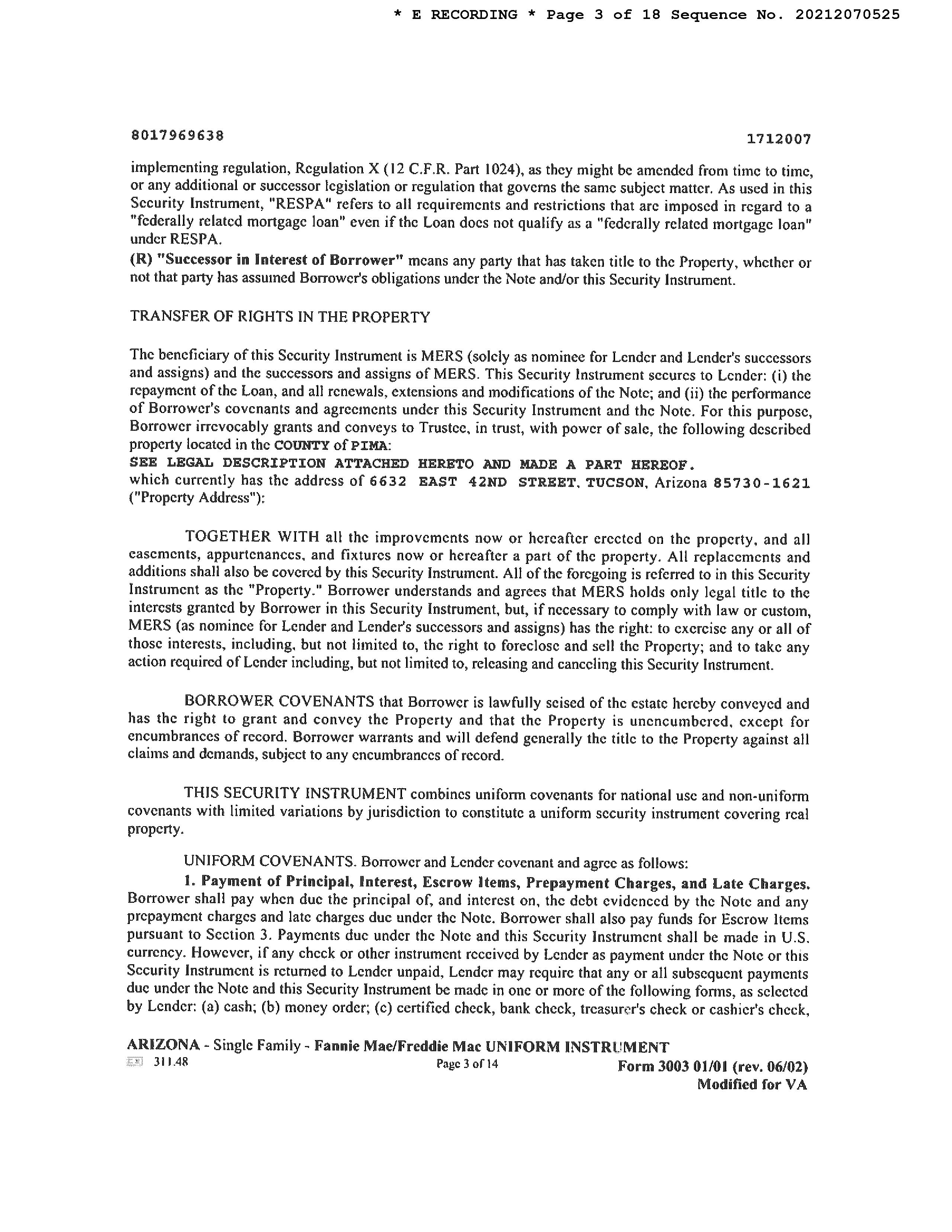 Sale Date : 11/13/2020 Recording Date : 12/11/2020 Total