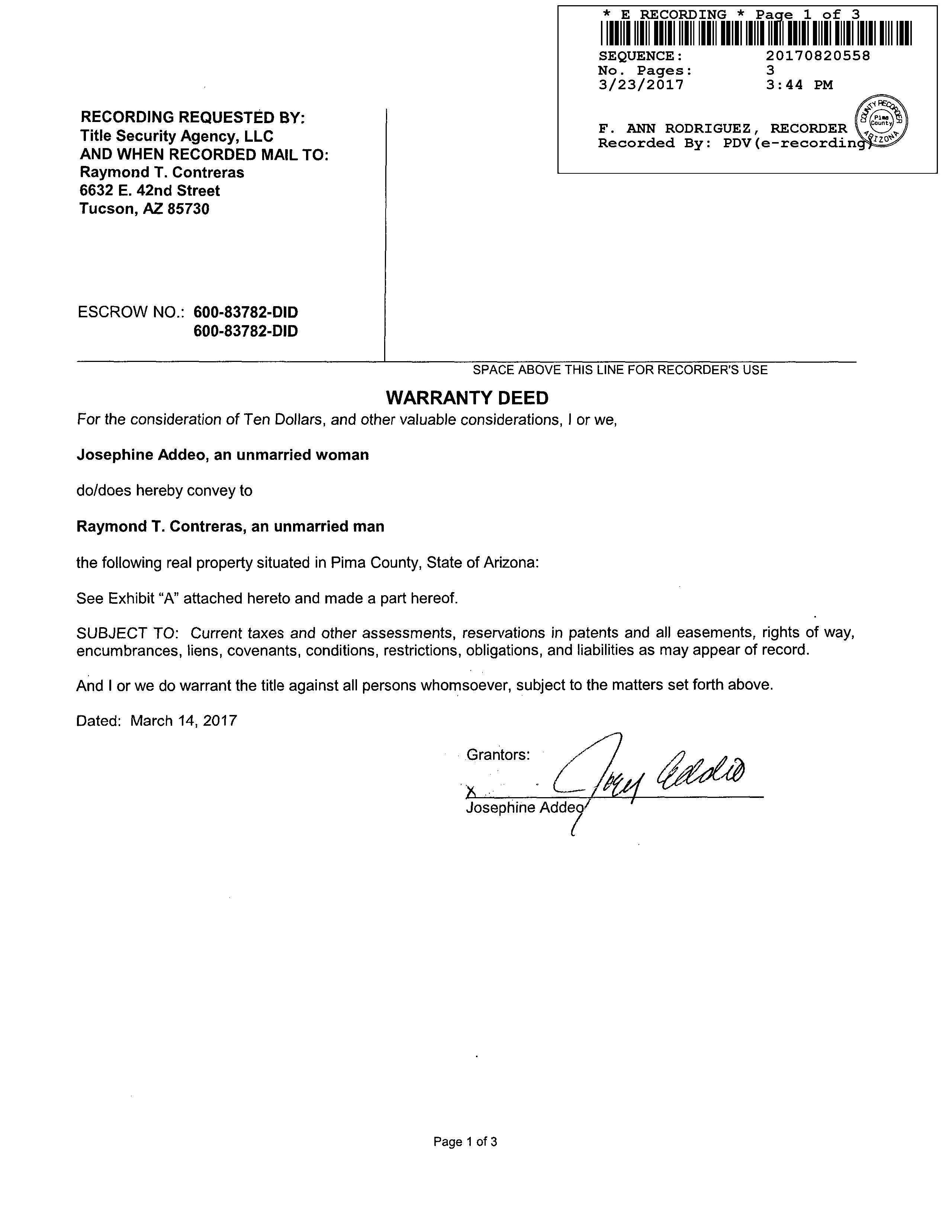 FIRST AMERICAN - SOUTHERN ARIZONA ADMIN OFFICE 520.885.1600 tsa-administration@firstam.com First American Title Insurance Company, and the operating divisions thereof, make no express or implied warranty respecting the information presented and assume no responsibility for errors or omissions. First American, the eagle logo, First American Title, and firstam.com are registered trademarks or trademarks of First American Financial Corporation and/or its affiliates. ©2024 First American Financial Corporation and/or its affiliates. All rights reserved. NYSE: FAF