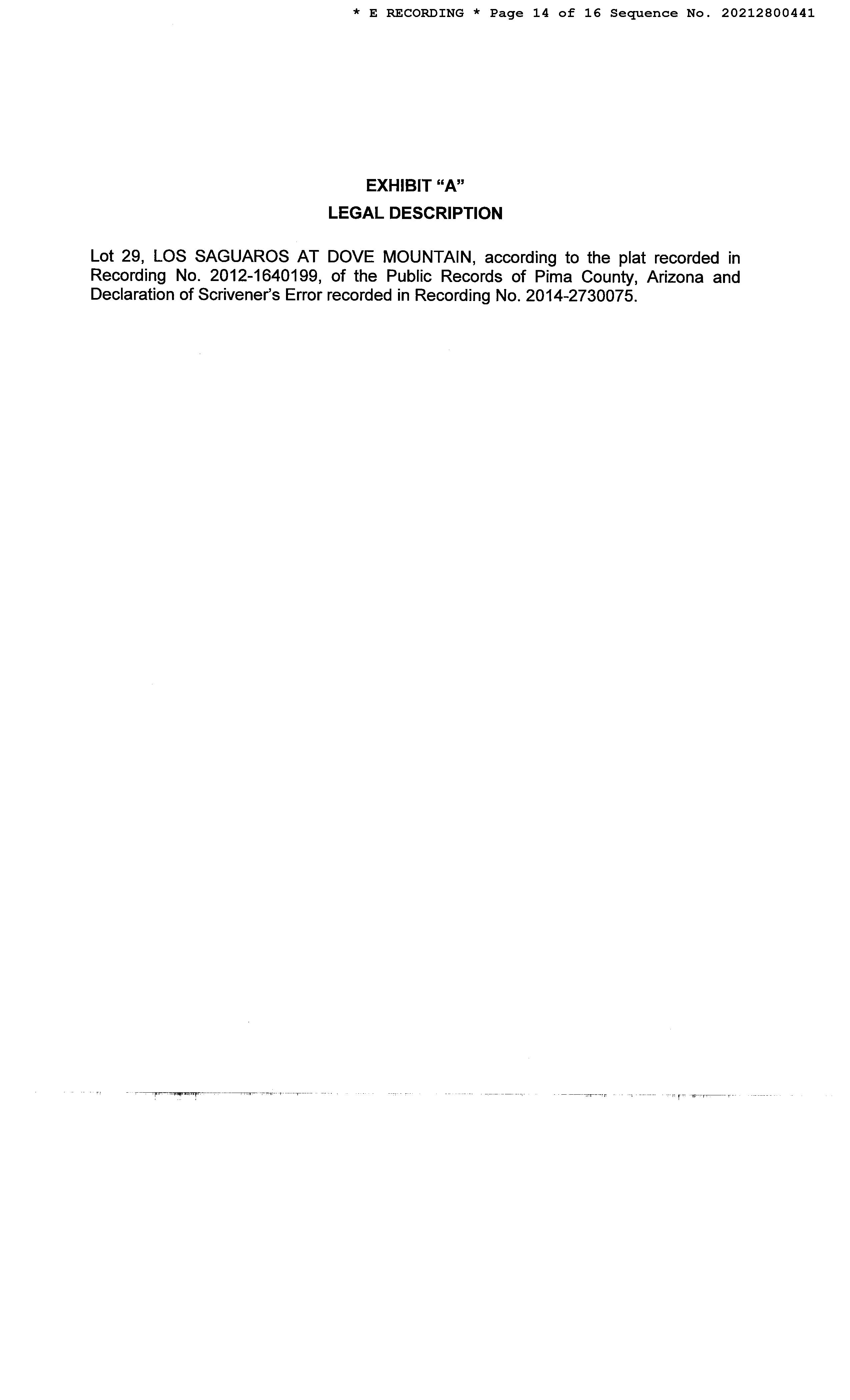 Legal Description : Los Saguaros At Dove Mountain Sq20121640199 Lot 29