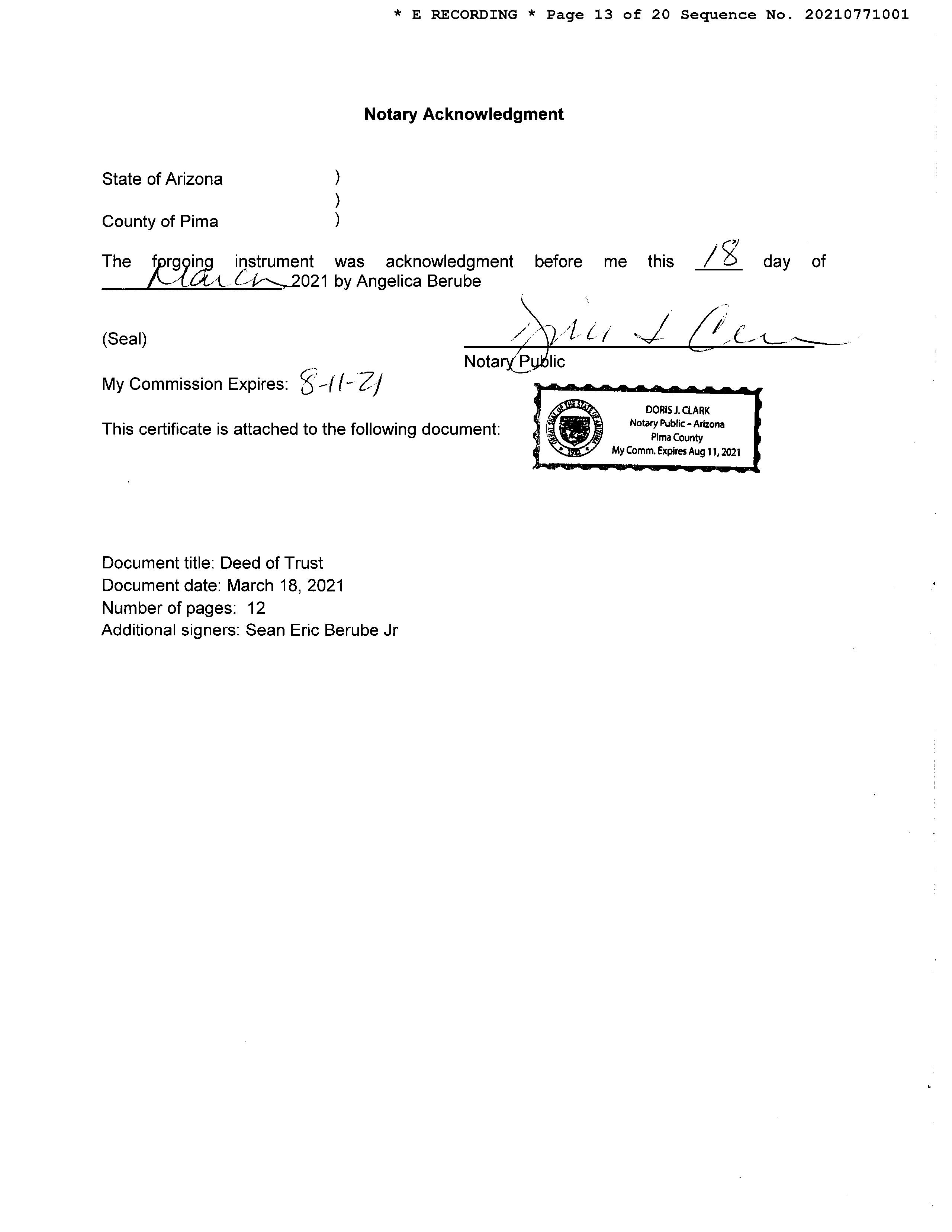 OWNER: BERUBE SEAN ERIC & ANGELICA AFFIDAVIT 2021 771000 03/18/2021