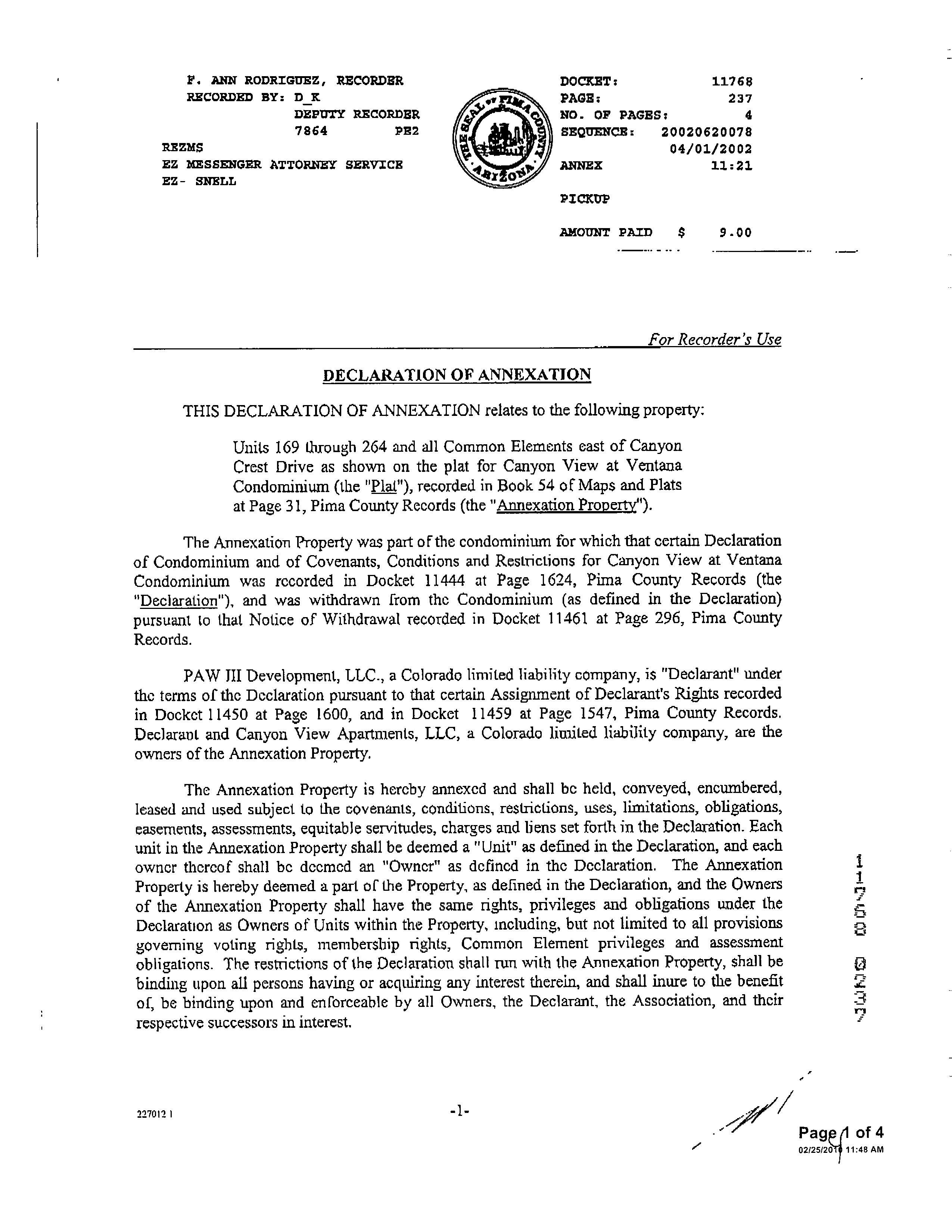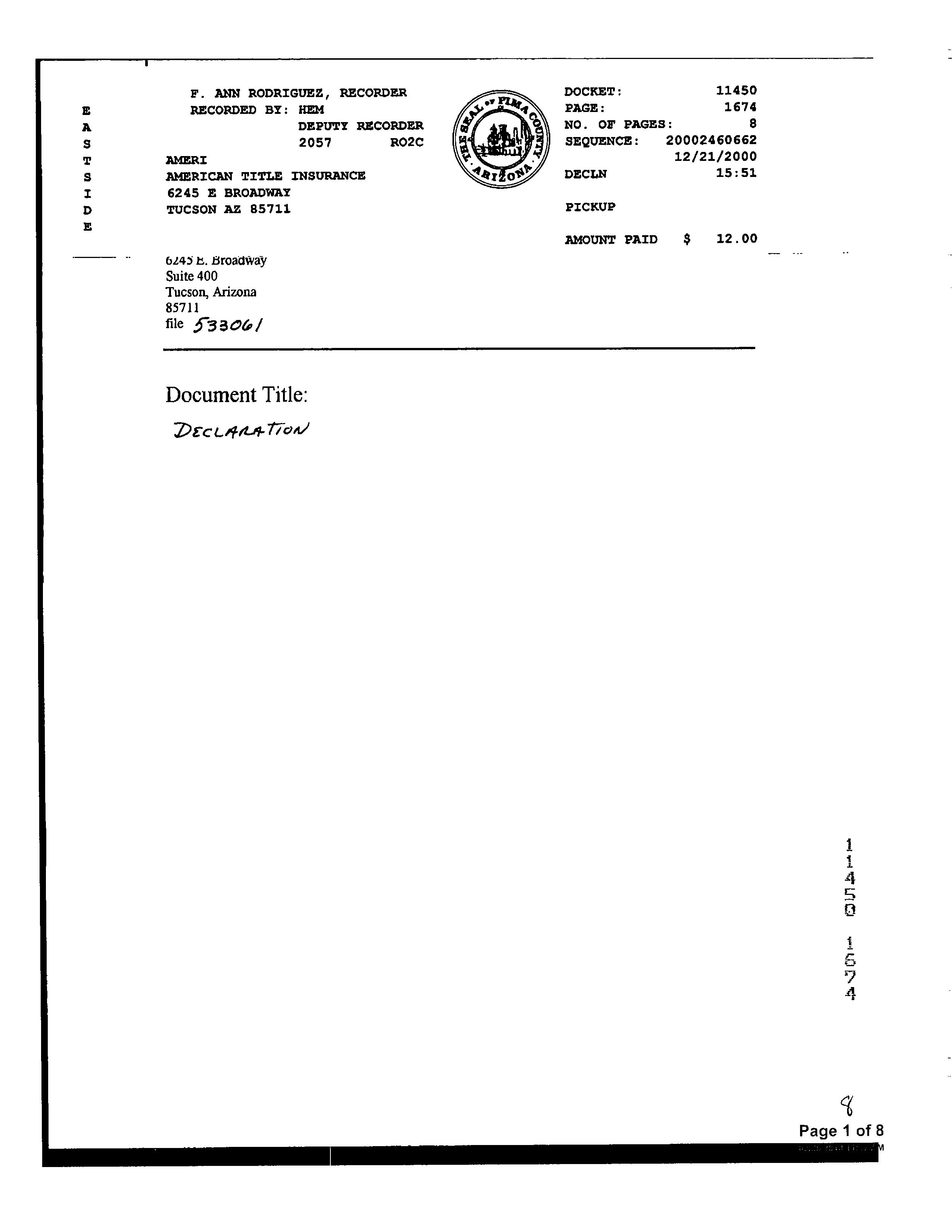 This report is not an insured product or service or a representation of the condition of title to real property. It is not an abstract, legal opinion, opinion of title, title insurance commitment or preliminary report, or any form of Title Insurance or Guaranty. This report is issued exclusively for the benefit of the Applicant therefor and may not be used or relied upon by any other person. This report may not be reproduced in any manner without First Americans prior written consent. First American does not represent or warrant that the information herein is complete or free from error, and the information herein is provided without any warranties of any kind, as-is, and with all faults. As a material part of the consideration given in exchange for the issuance of this report, recipient agrees that First Americans sole liability for any loss or damage caused by an error or omission due to inaccurate information or negligence in preparing this report shall be limited to the fee charged for the report. Recipient accepts this report with this limitation and agrees that First American would not have issued this report but for the limitation of liability described above. First American makes no representation or warranty as to the legality or propriety of recipient's use of the information herein.