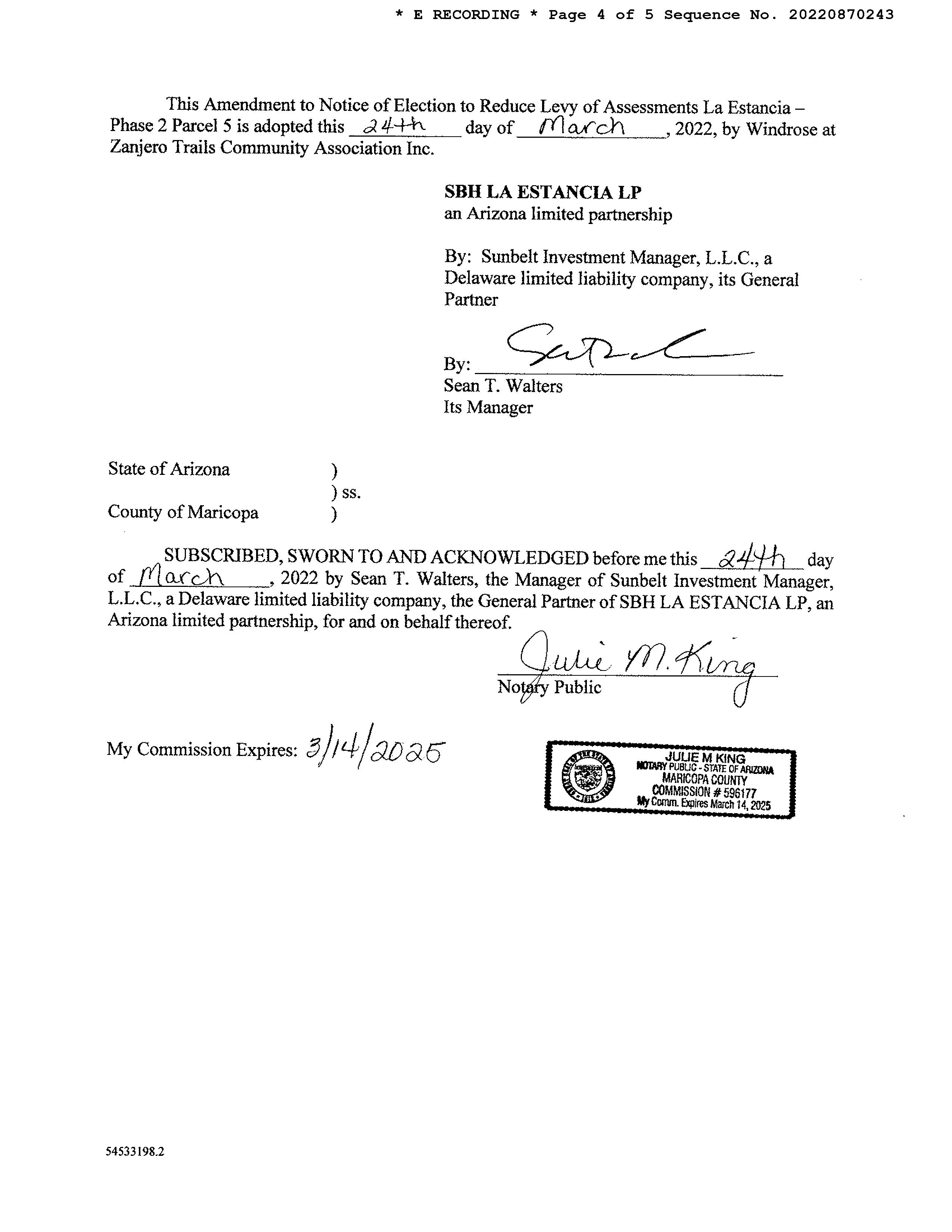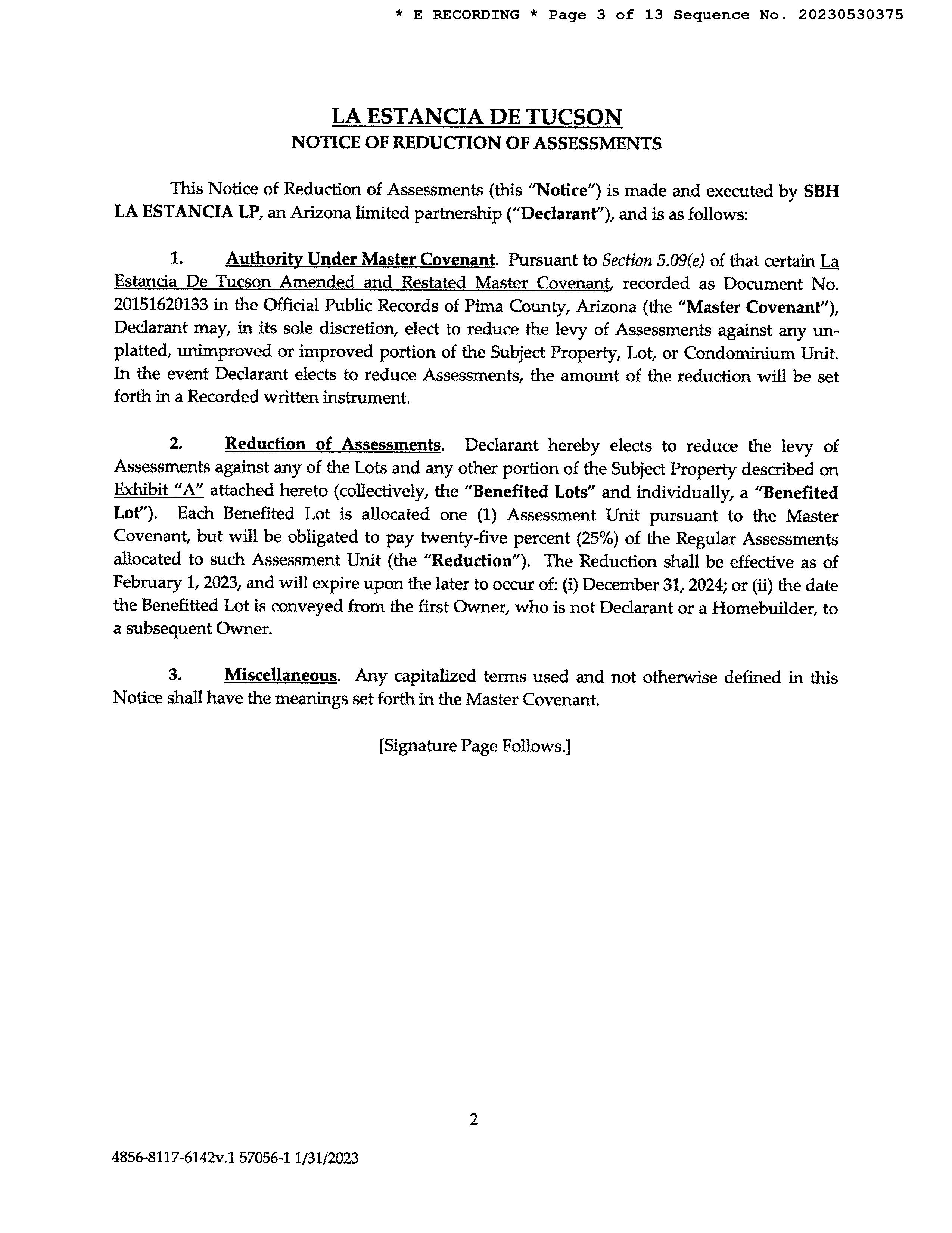 LEGAL: LA ESTANCIA DE TUCSON PHASE 2 PARCEL 5 LOT 76 SQ20203460788