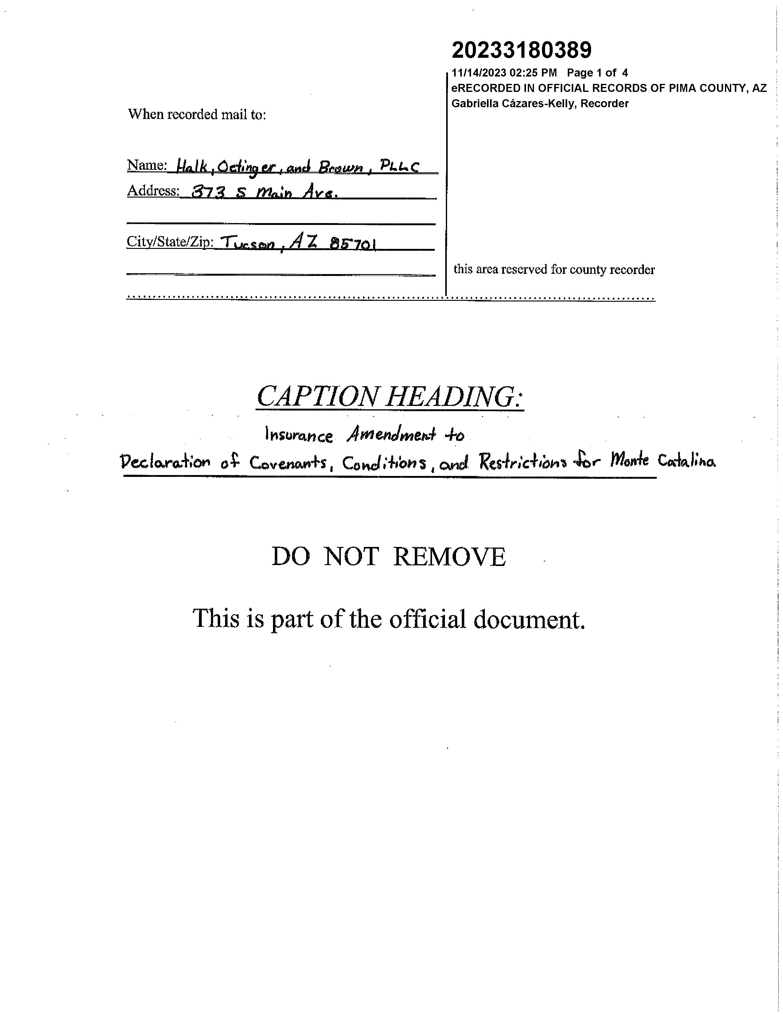 Subdivision : Monte Catalina Estates
