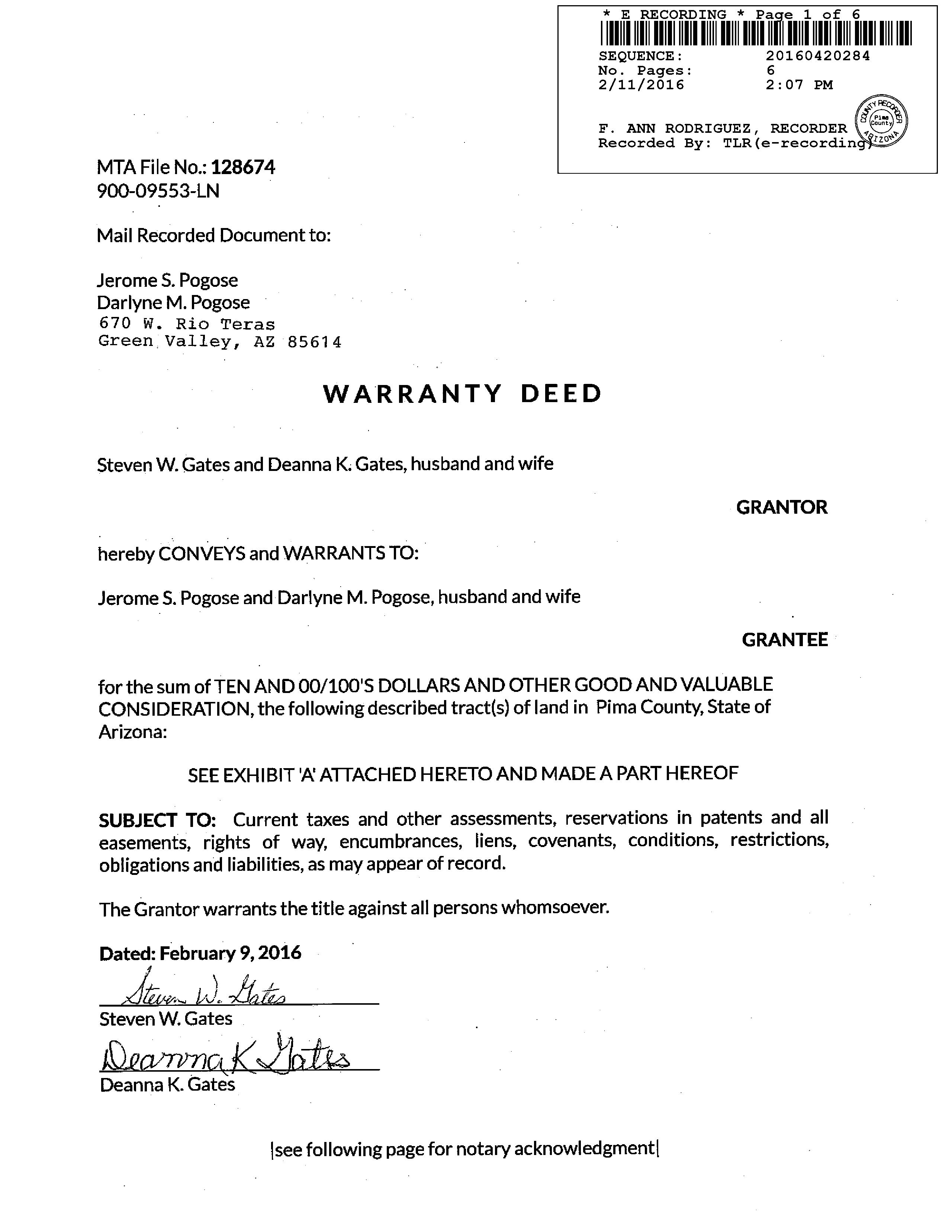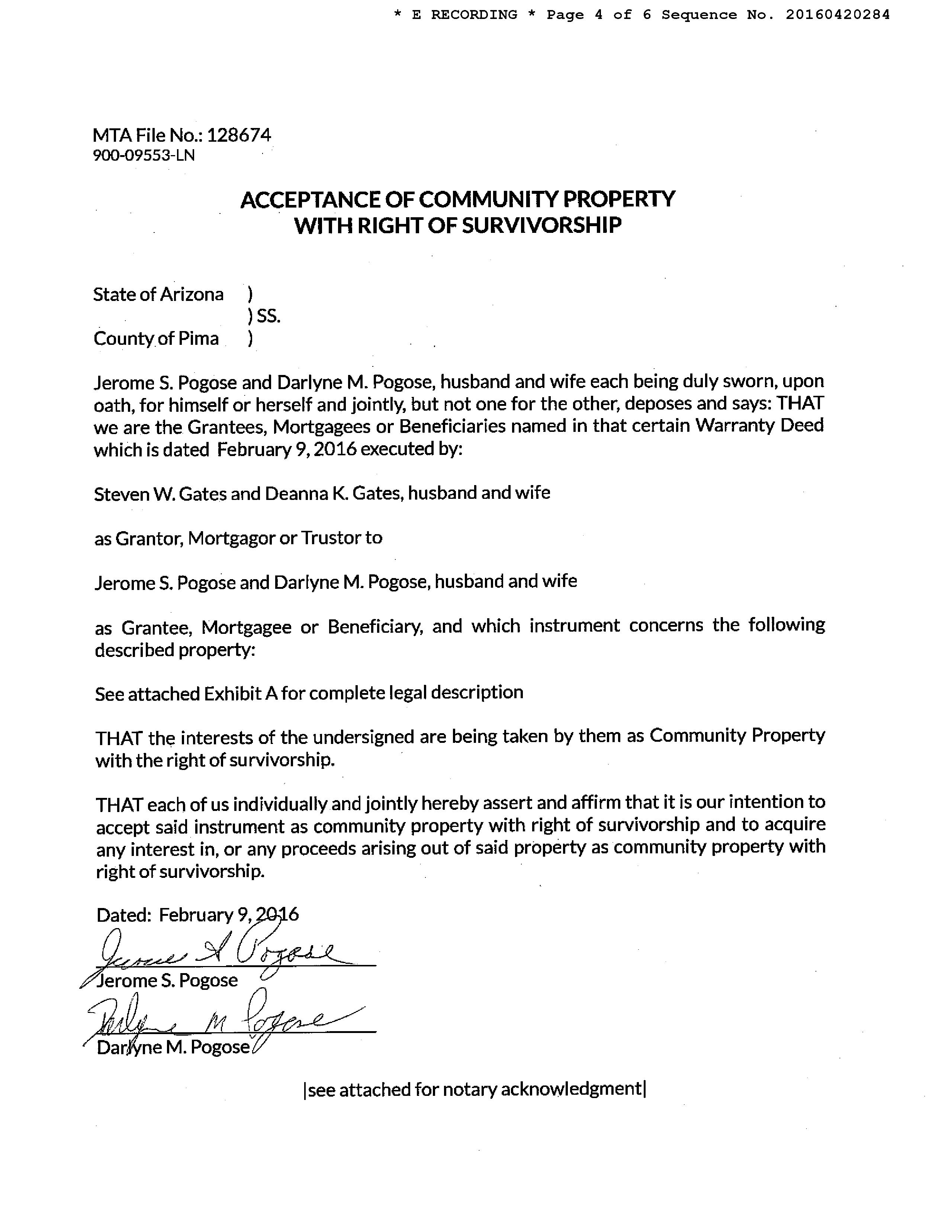 OWNER: POGOSE JEROME S/DARLYNE A AFFIDAVIT 2016 420284 02/11/2016