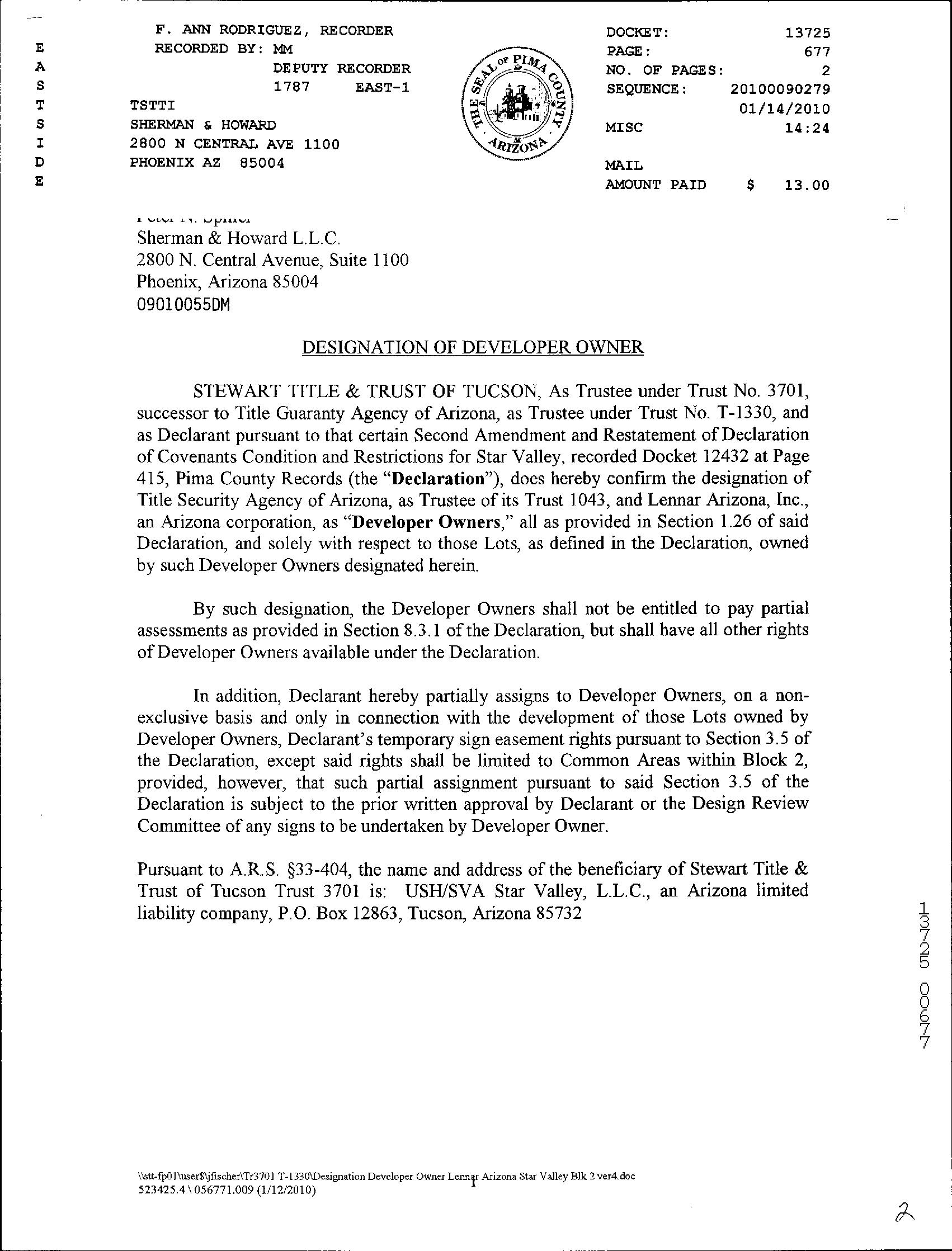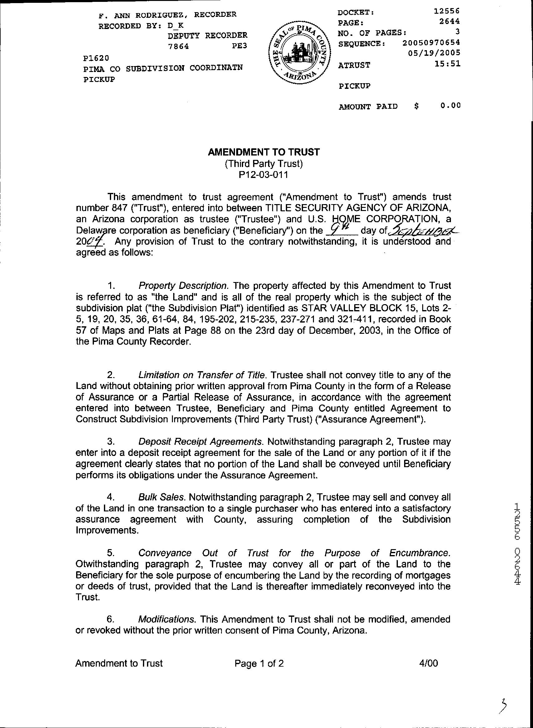 12671 947 SW FIDELITY NATIONAL TITLE AG 03/18/2005 1,448,000 12512 5745 SW TITLE GUARANTY T1330 M ADDITIONAL PROPERTY INFORMATION