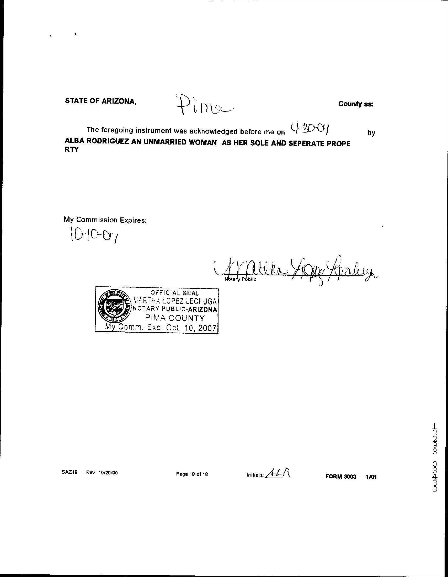 Owner Name: Rodriguez Alba Luz Sol /Sep Prop