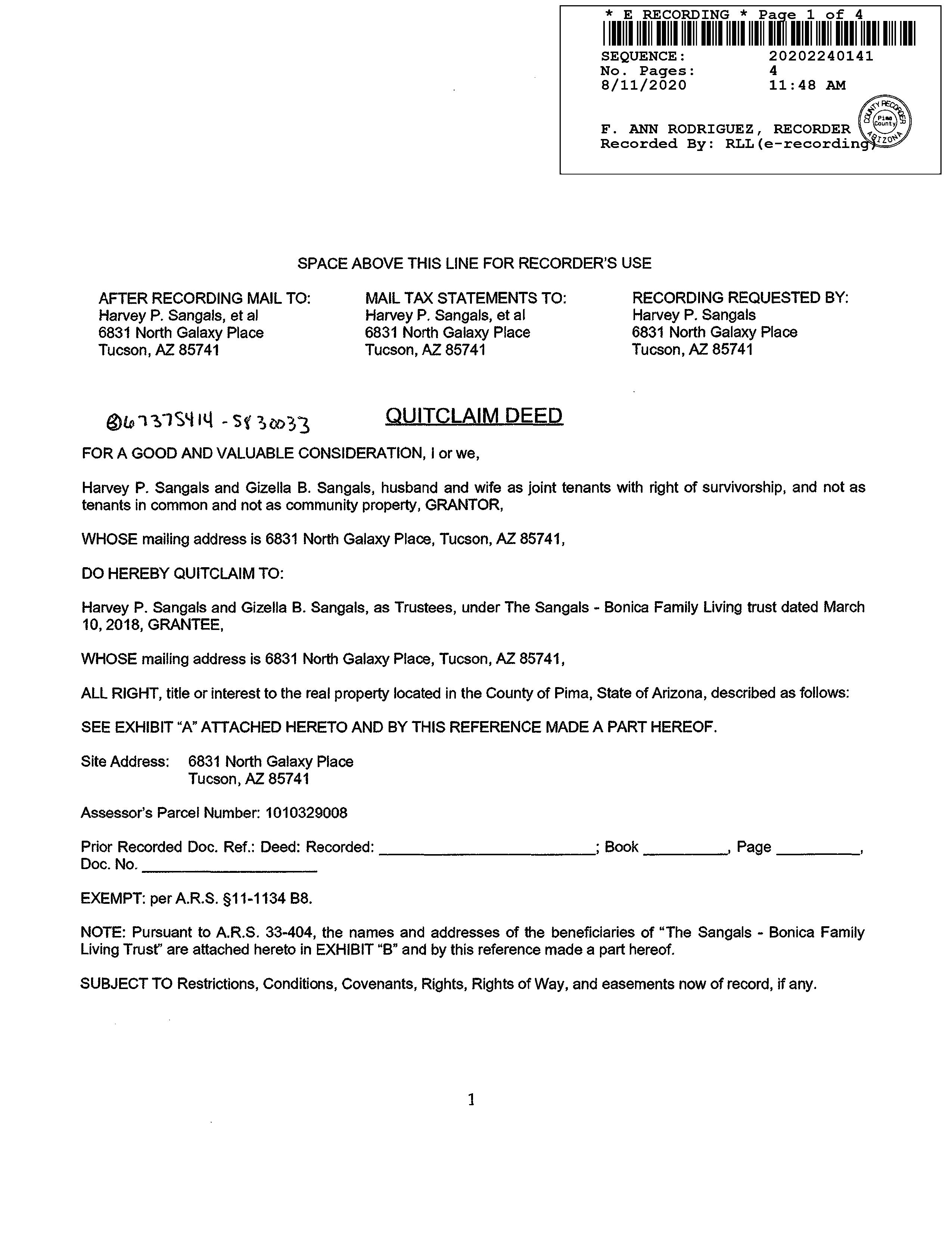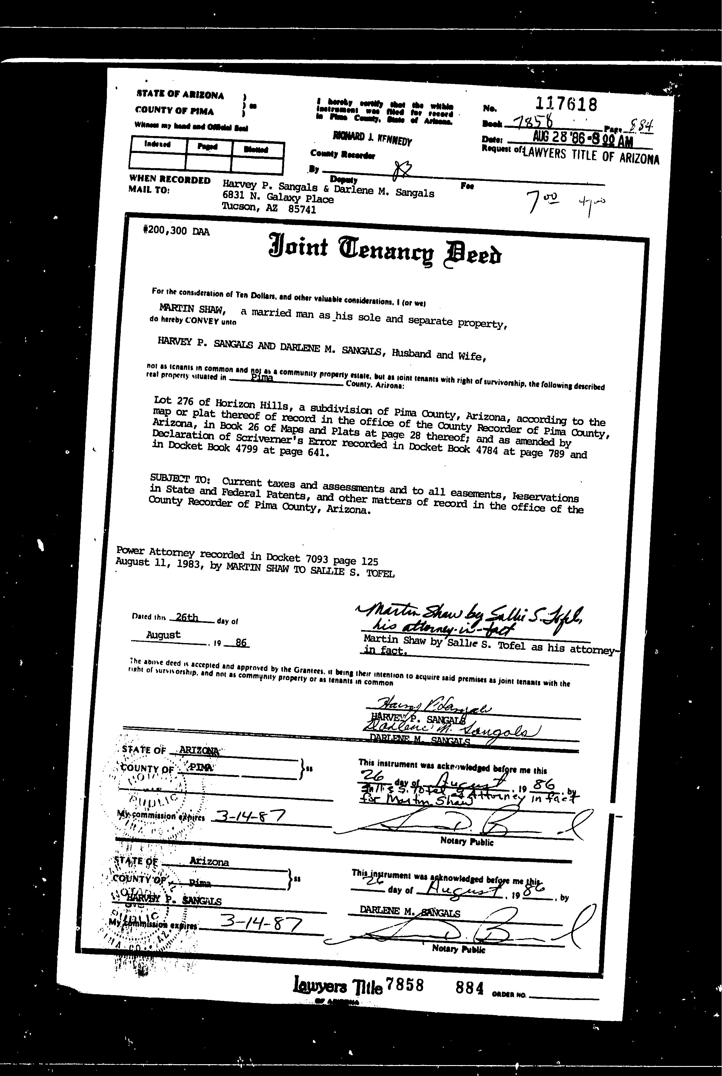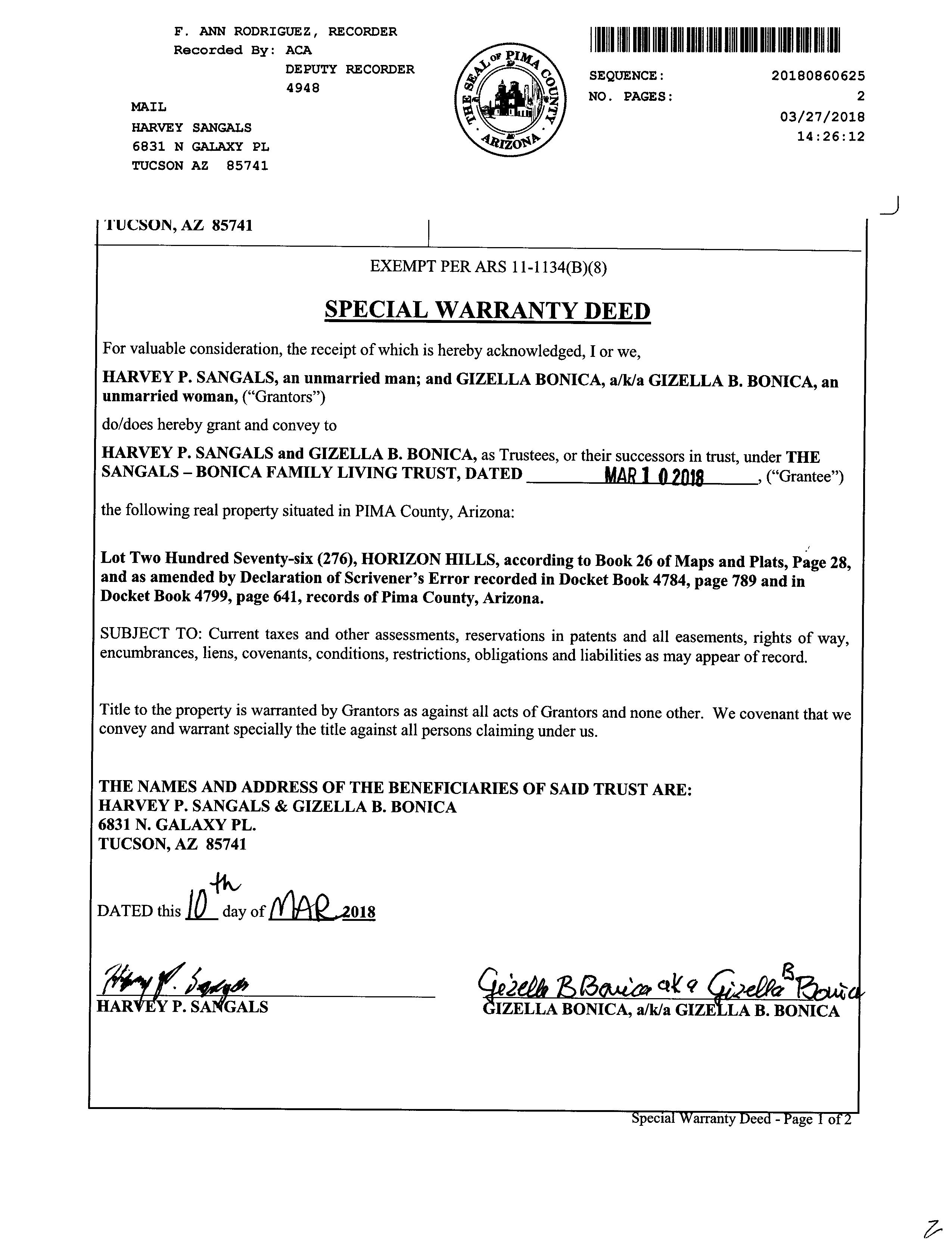 Mailing Address : 6831 N Galaxy Pl, Tucson AZ 85741-2714 C028