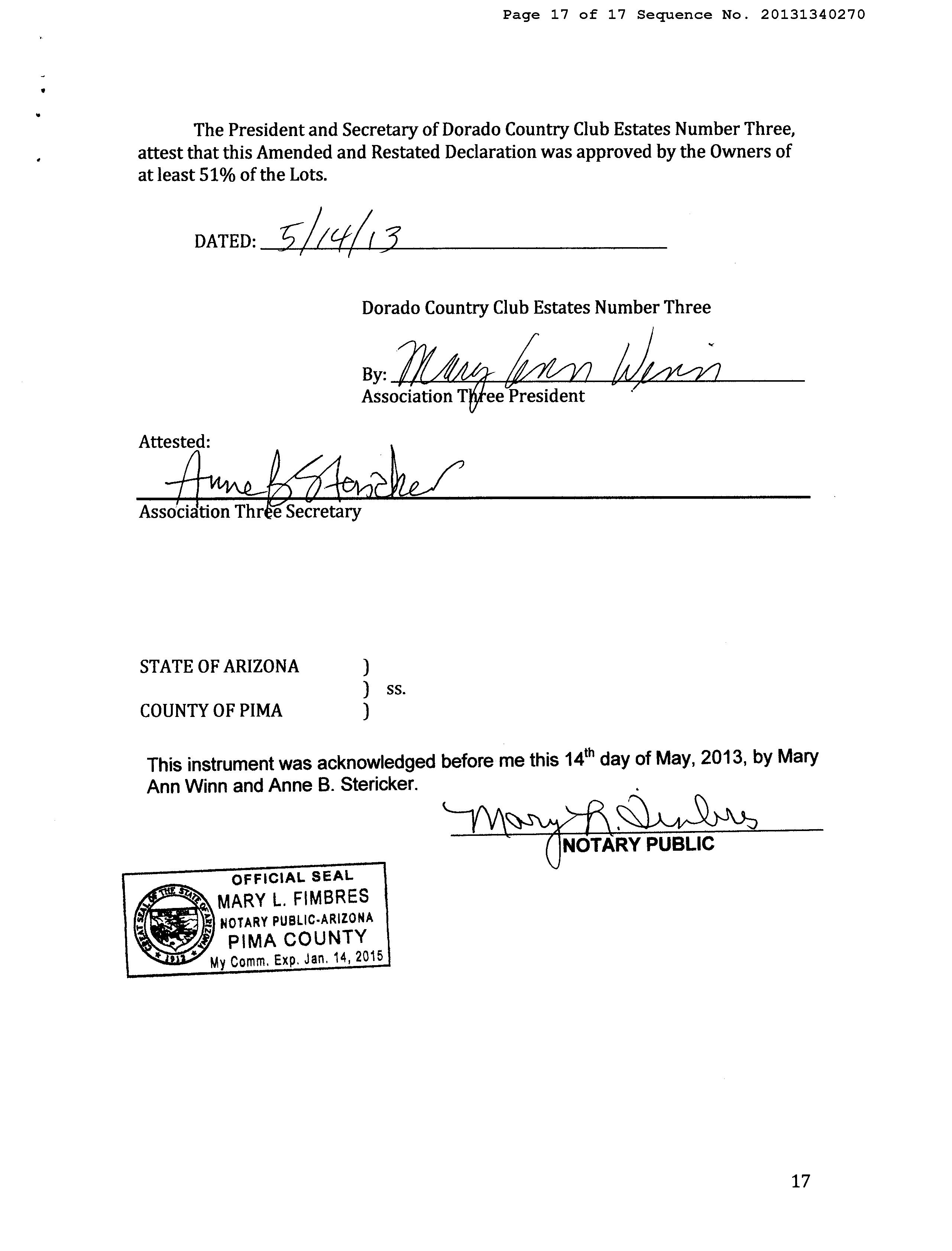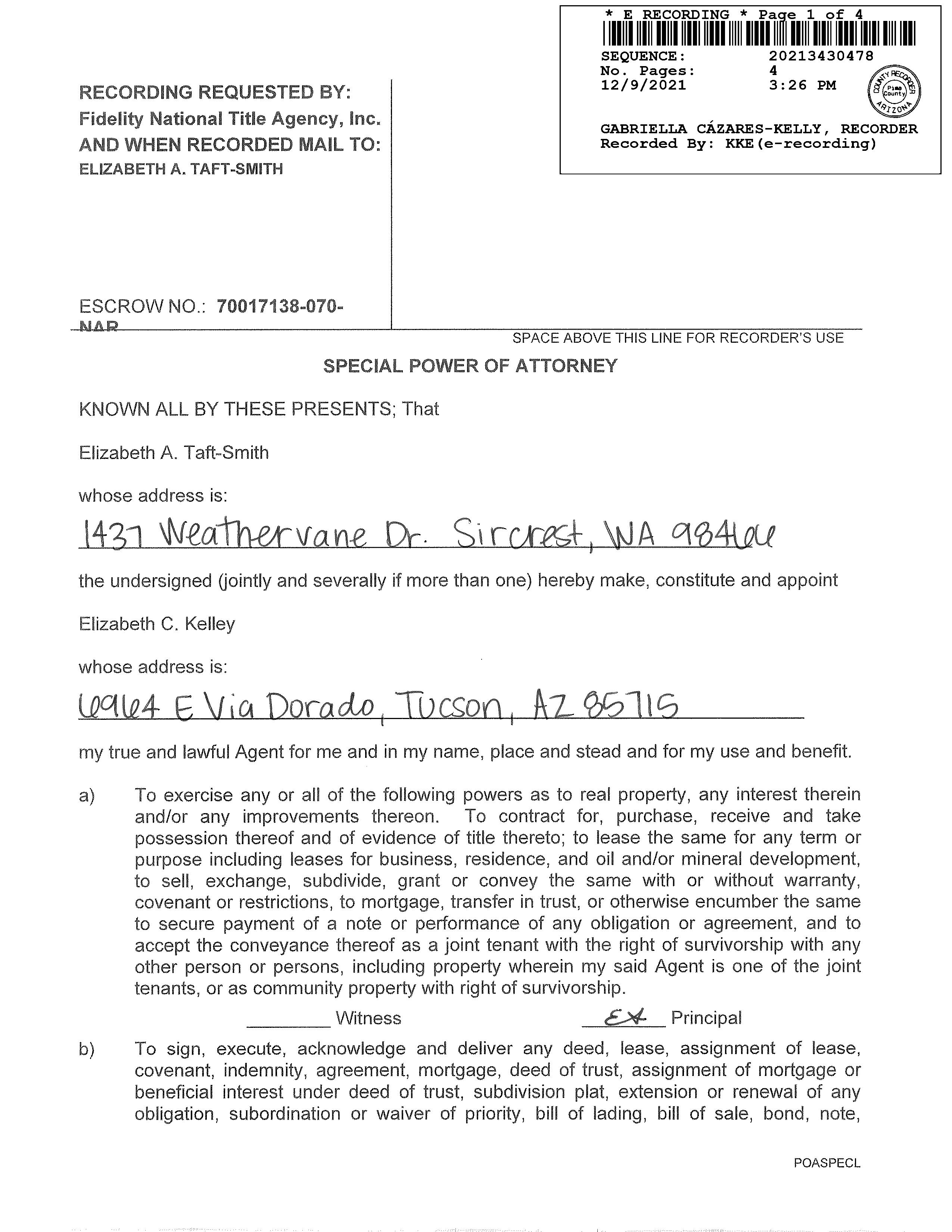 Mailing Address : 6964 E Via Dorado, Tucson AZ 85715-4822 C038