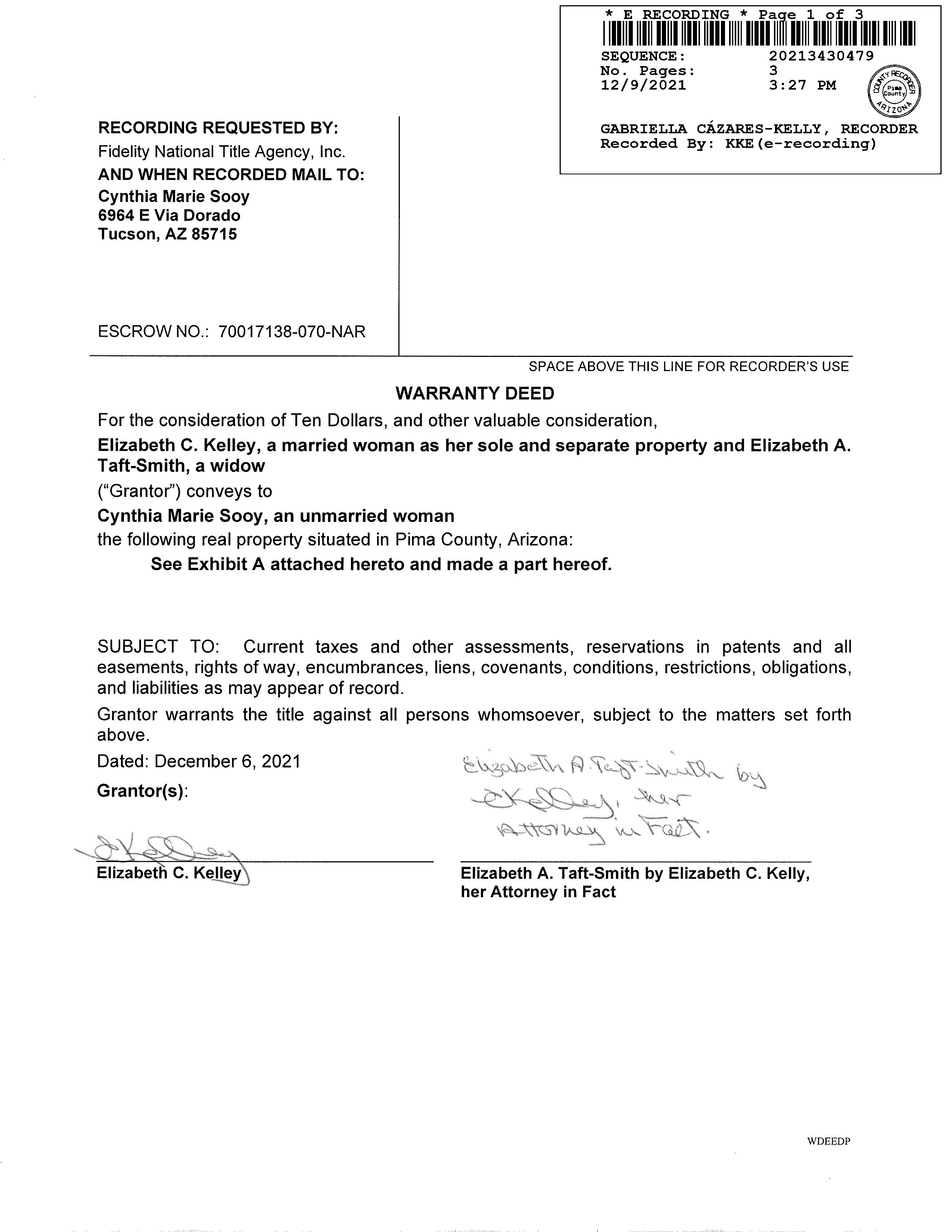 OWNER: SOOY CYNTHIA MARIE AFFIDAVIT 2021 3430479 12/09/2021