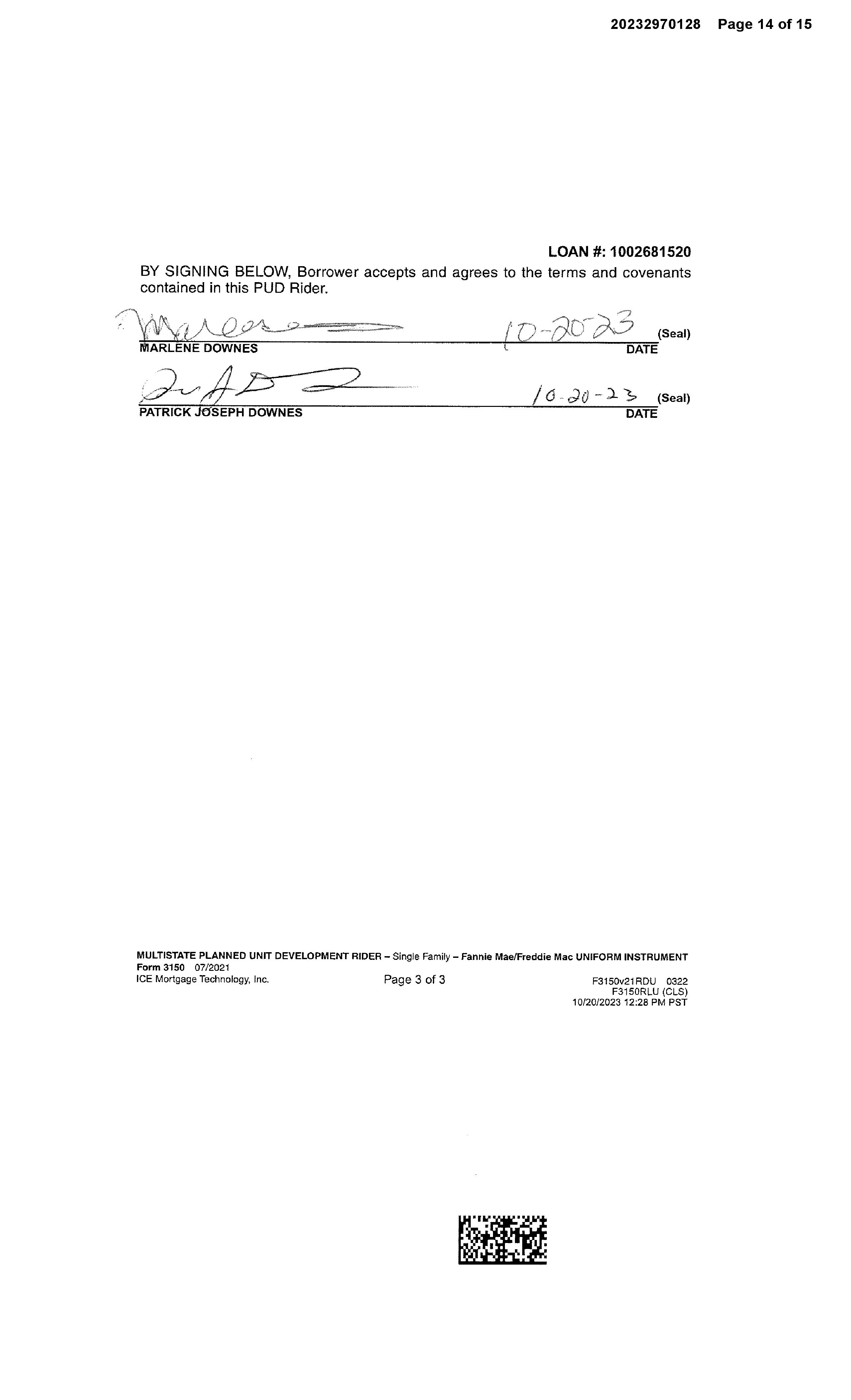 OWNER: DOWNES MARLENE & PATRICK AFFIDAVIT 2023 2970127 10/24/2023