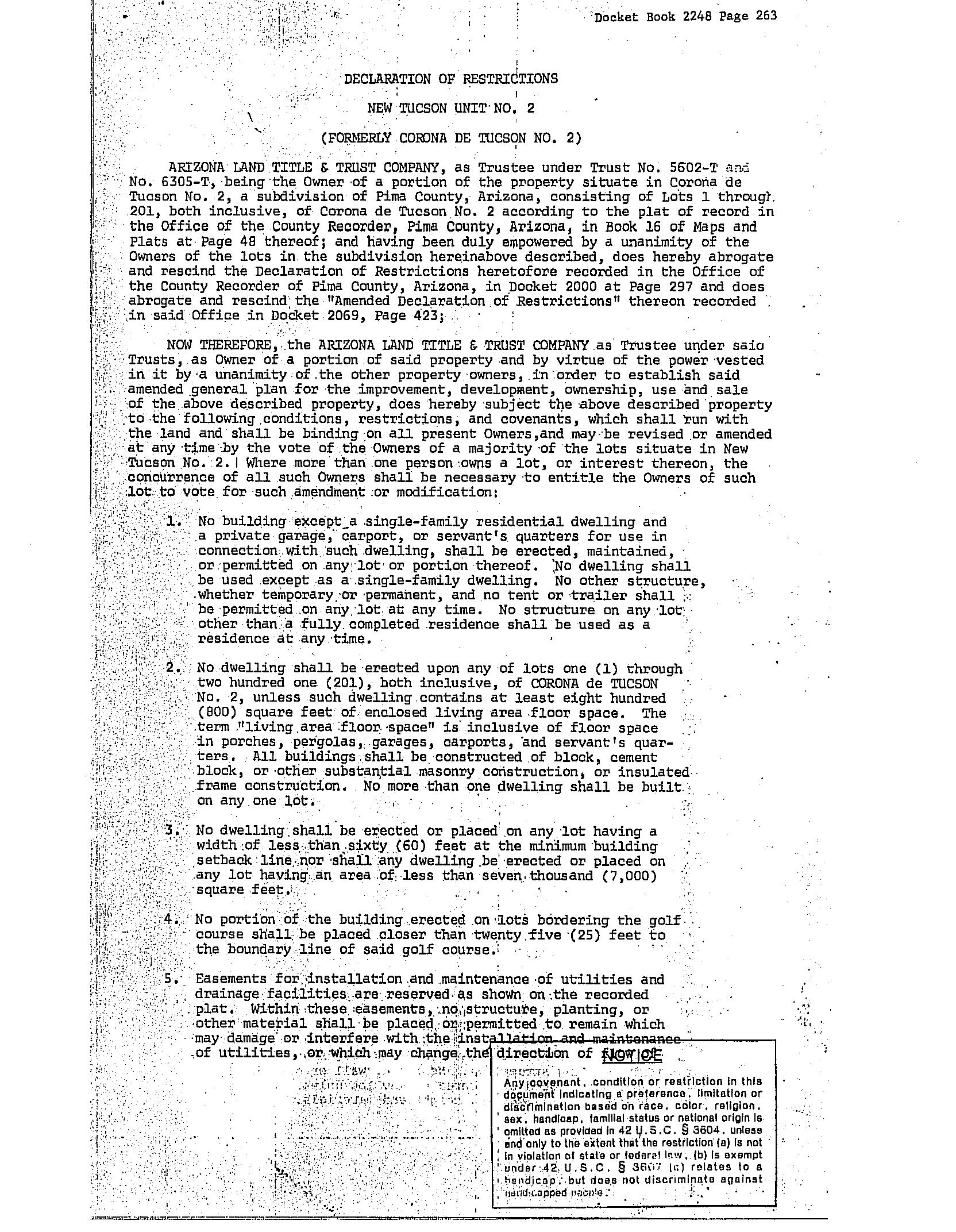 Legal Description : New Tucson Unit No 2 Lot 23 Exc Mineral Rights Below 30-ft