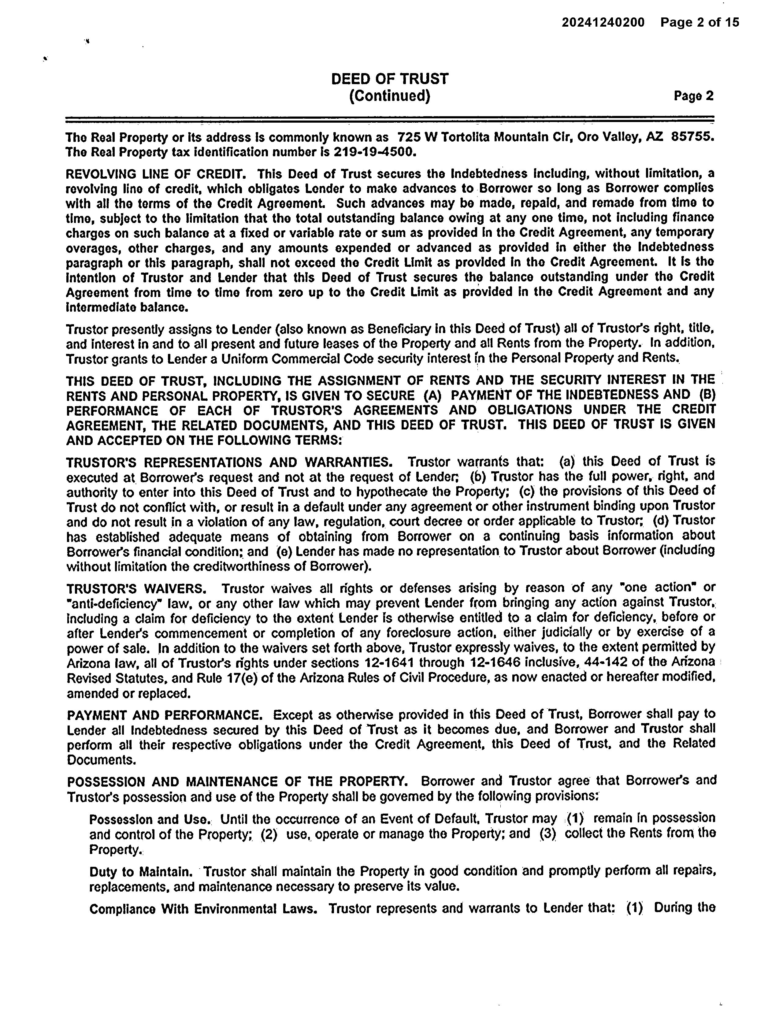 SITUS: 725 W TORTOLITA MOUNTAIN CI OV