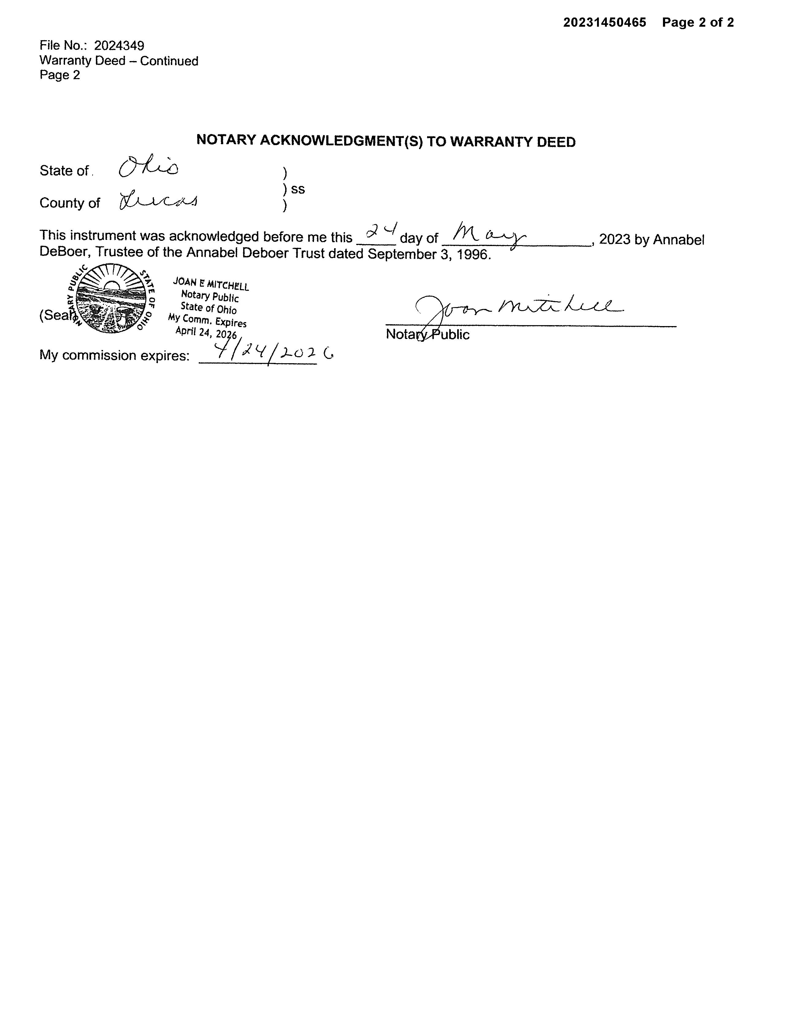 Seller Name : Deboer Annabel Trust