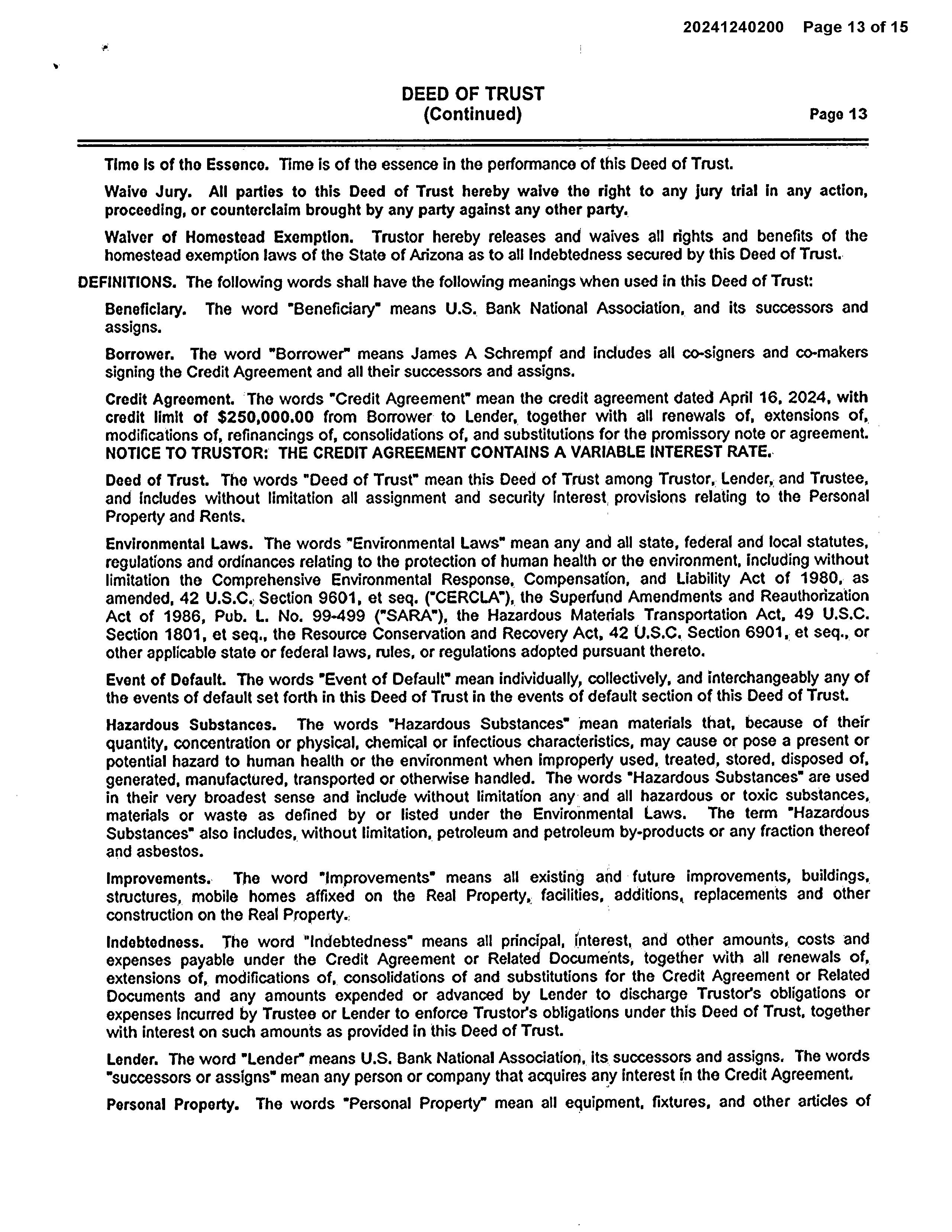 OWNER: JAMES A SCHREMPF TRUST & SC AFFIDAVIT 2023 1450465 05/25/2023